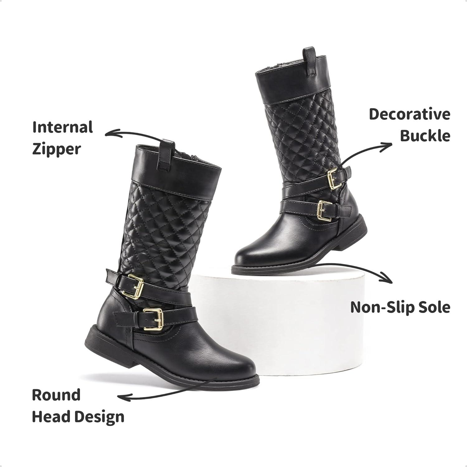 DREAM PAIRS Girls Knee High Fashion Riding Boots for Toddler/Little Kid/Big Kid(Black)