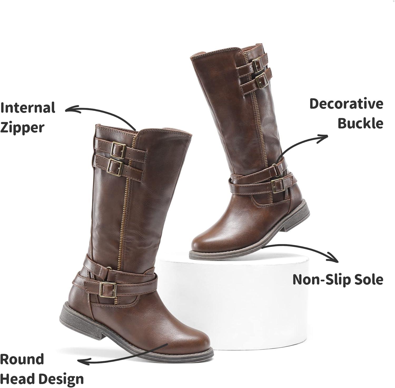 DREAM PAIRS Girls Knee High Fashion Riding Boots for Toddler/Little Kid/Big Kid(Brown 03)