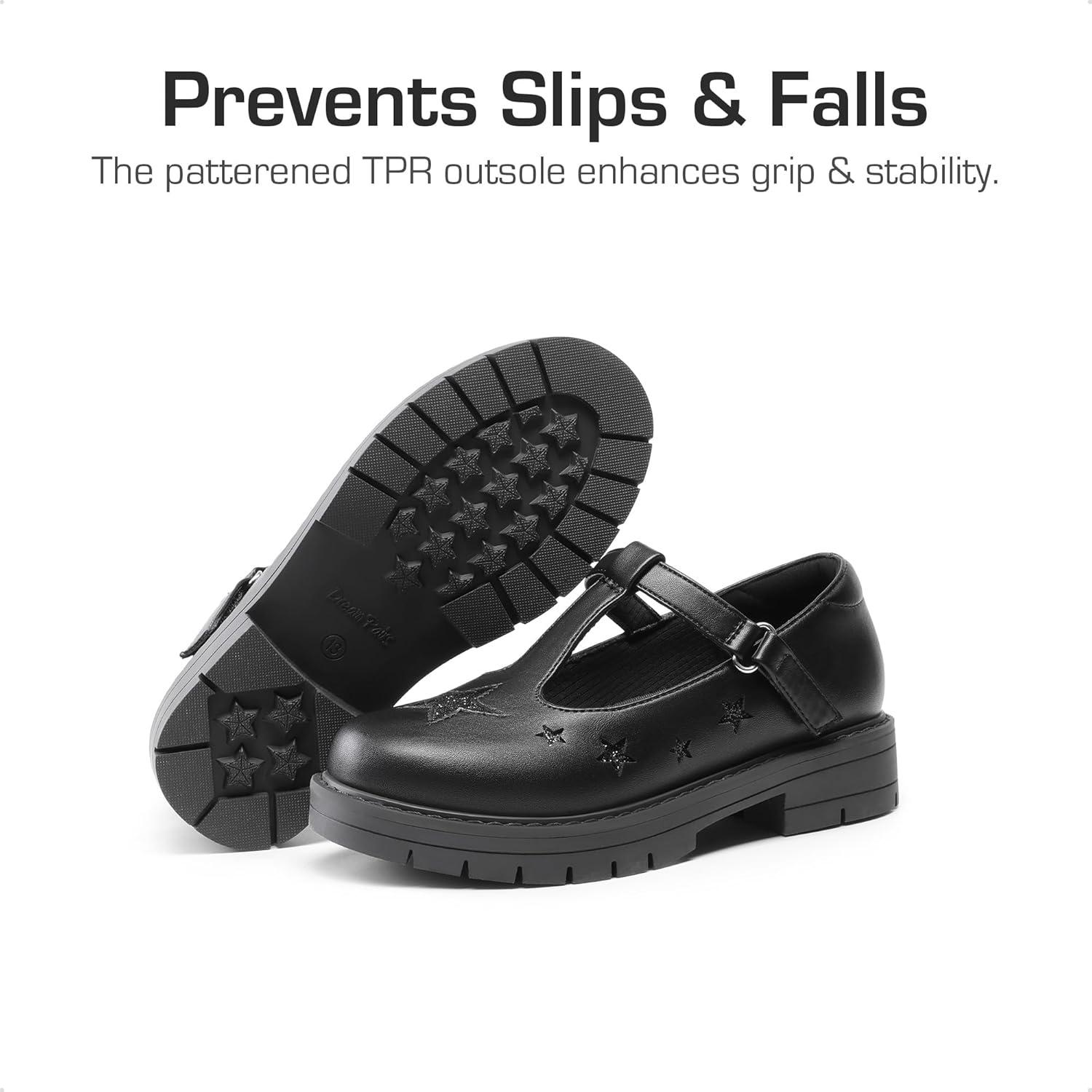 DREAM PAIRS Girls Mary Jane Dress Shoes Chunky Platform School Uniform Shoes T-Strap Oxfords Loafers Star Flats(Black Stars)