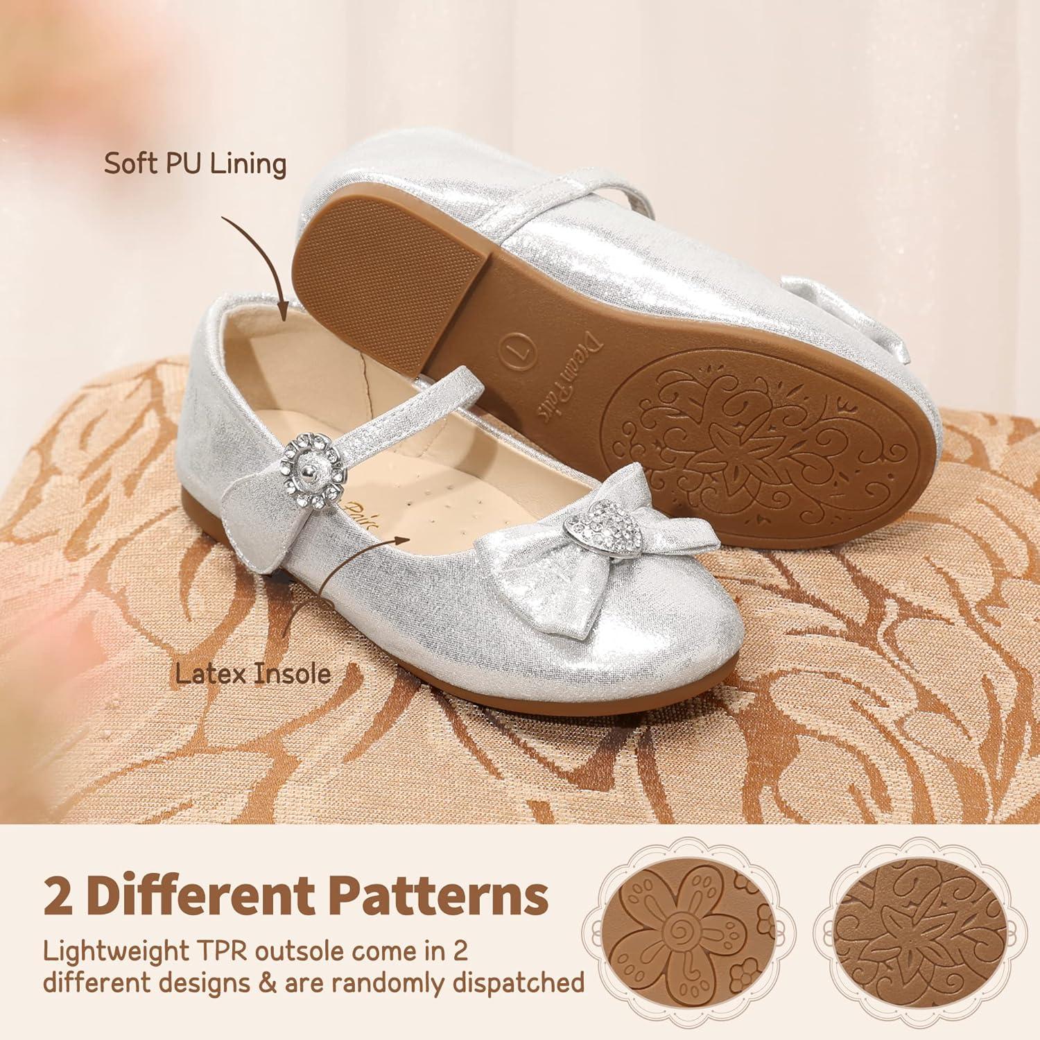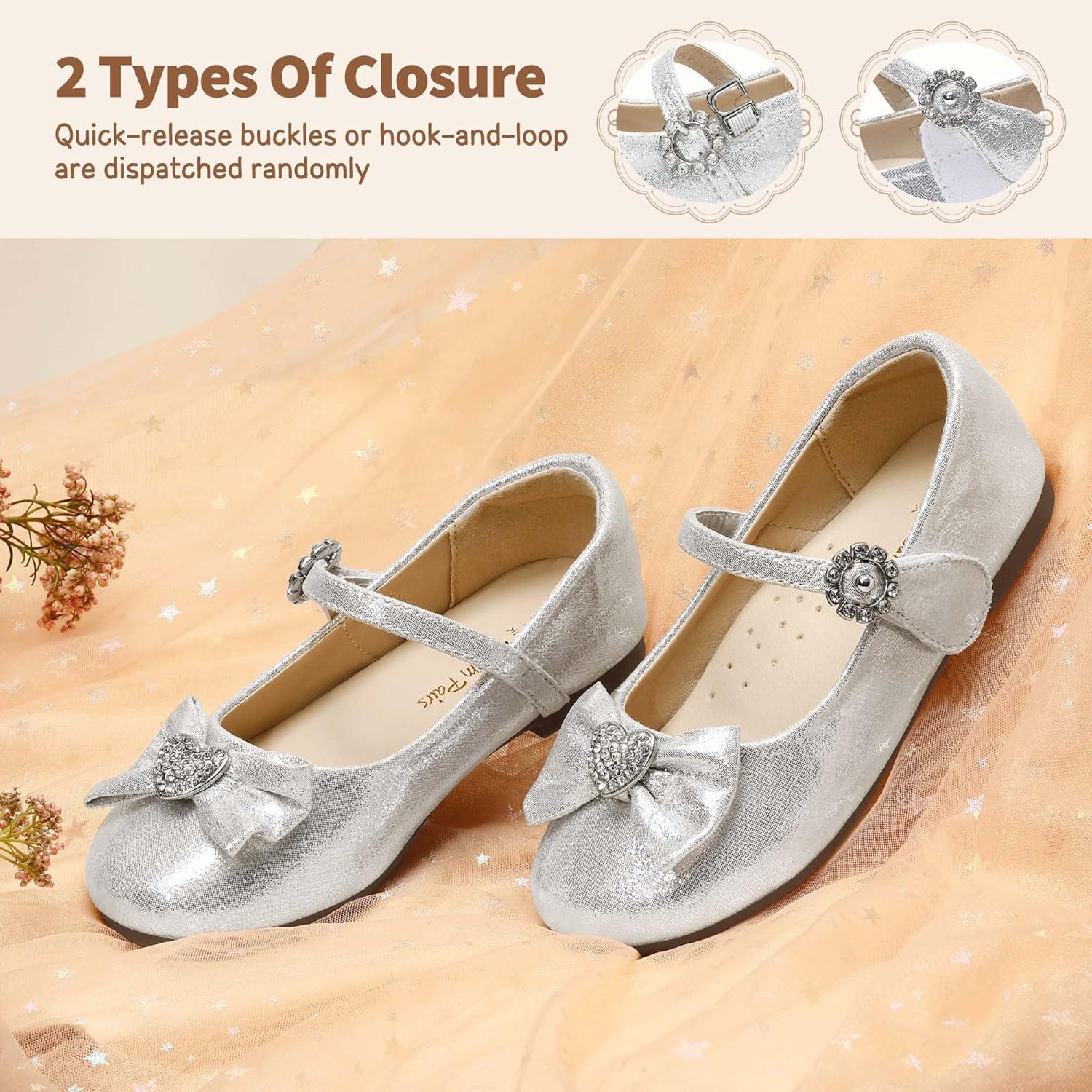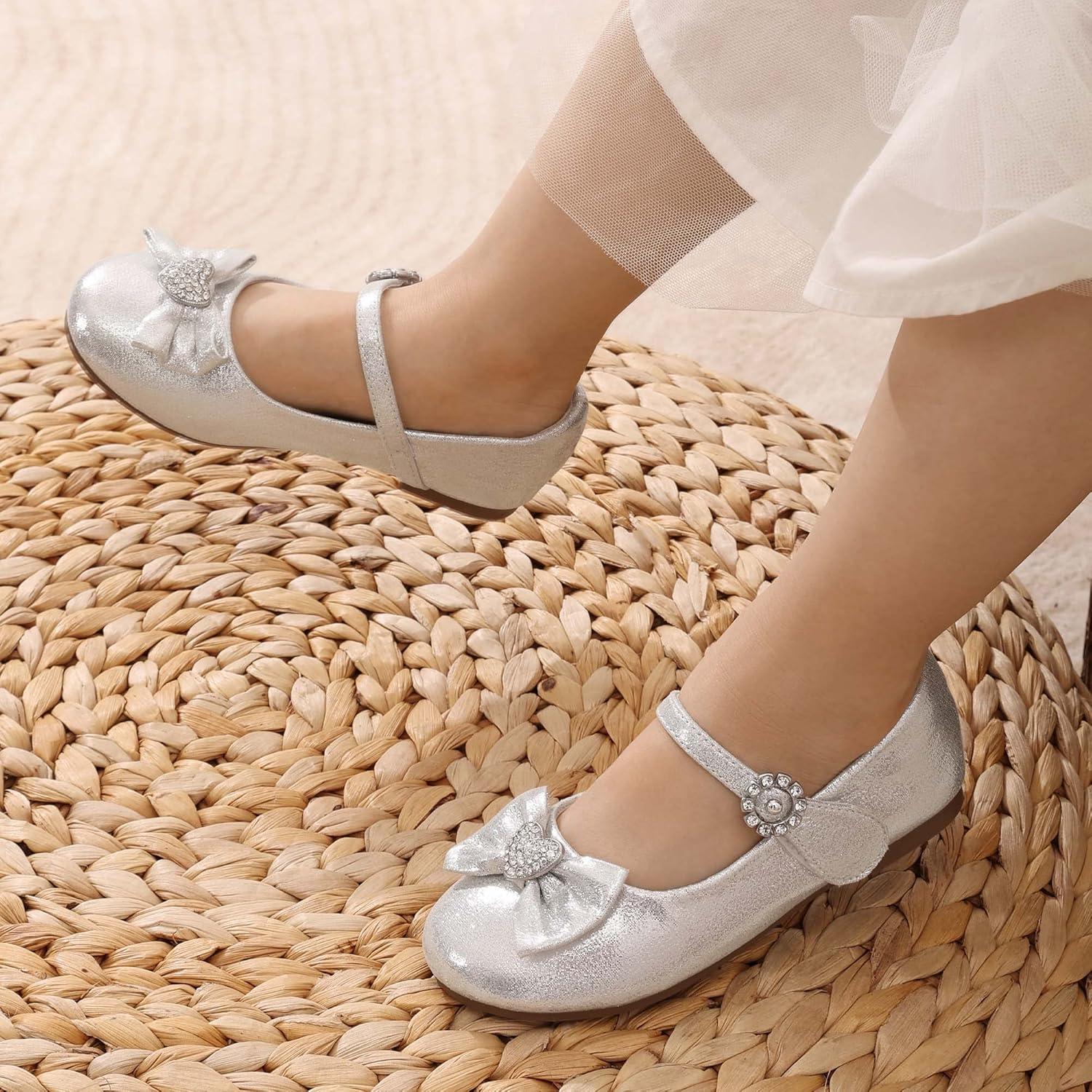 DREAM PAIRS Girls Mary Jane Dress Shoes for Toddler Heart Rhinestone Front Bow Ballerina Flat (Toddler/Little Kid)(Silver)