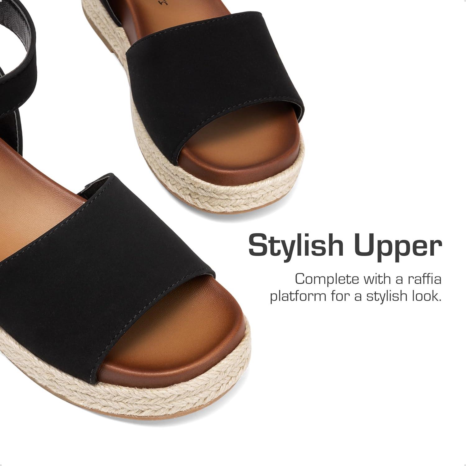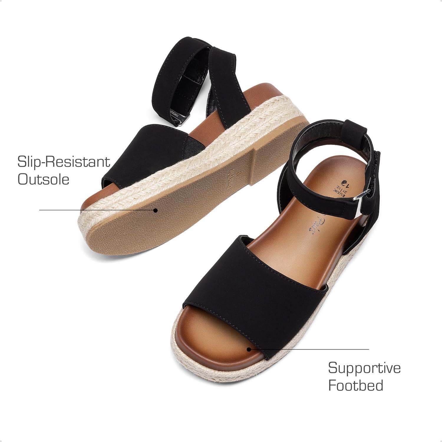 DREAM PAIRS Girls Platform Wedge Open Toe Espadrille Sandals with Buckle Ankle Strap for Little Kid/Big Kid(Black)