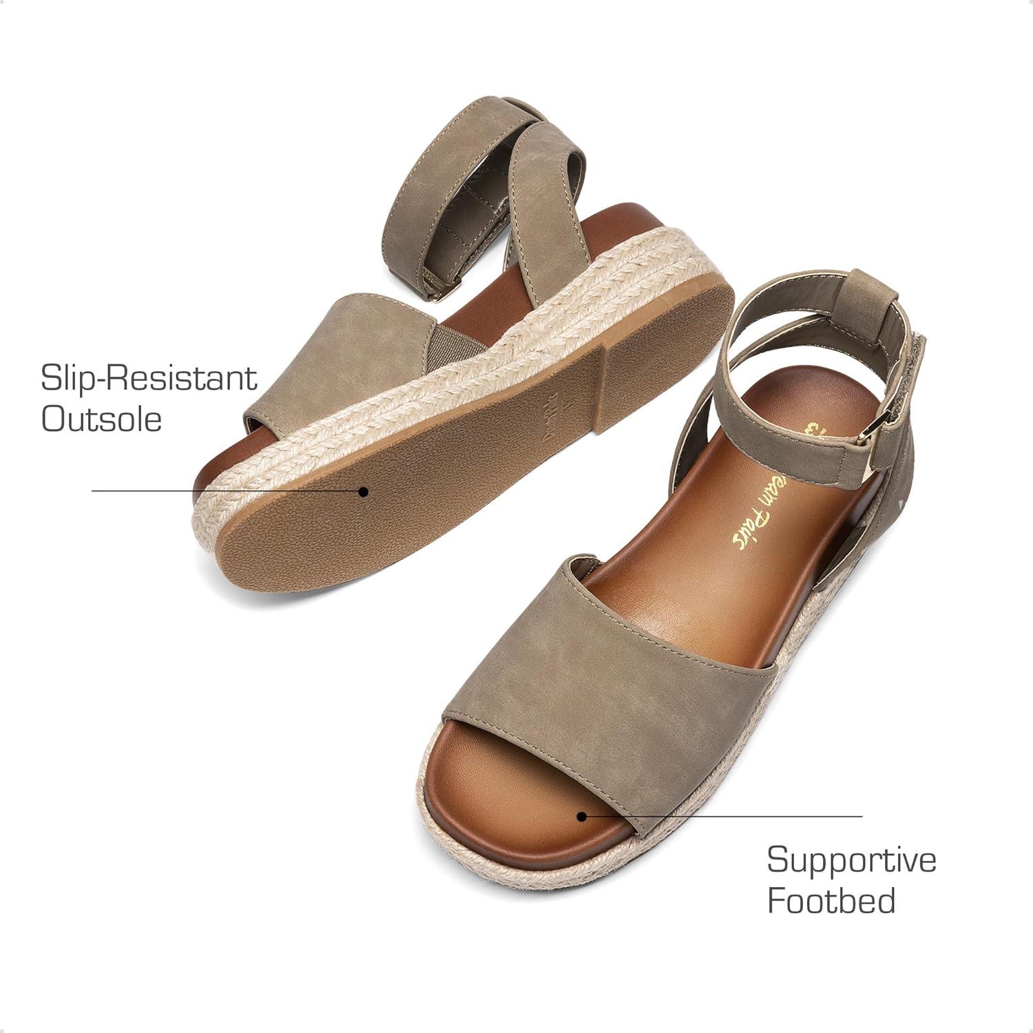 DREAM PAIRS Girls Platform Wedge Open Toe Espadrille Sandals with Buckle Ankle Strap for Little Kid/Big Kid(Taupe)