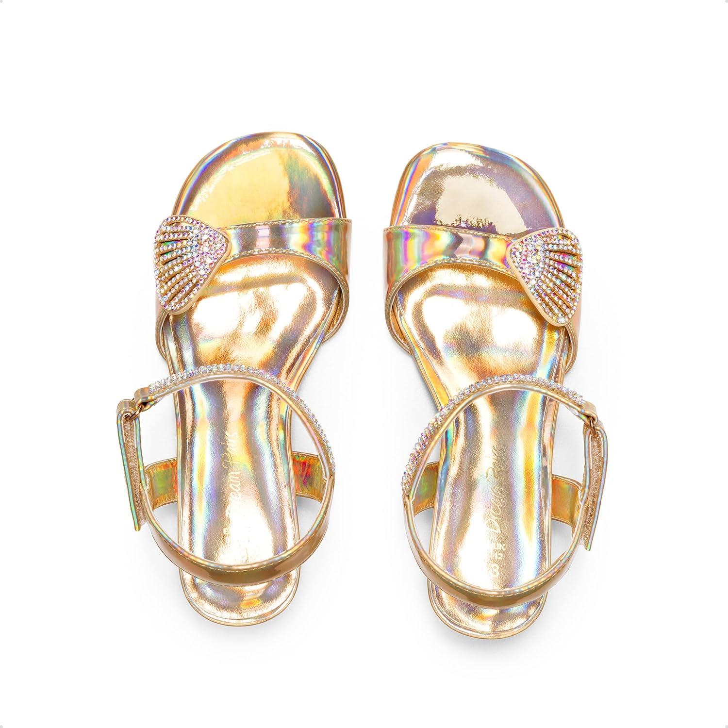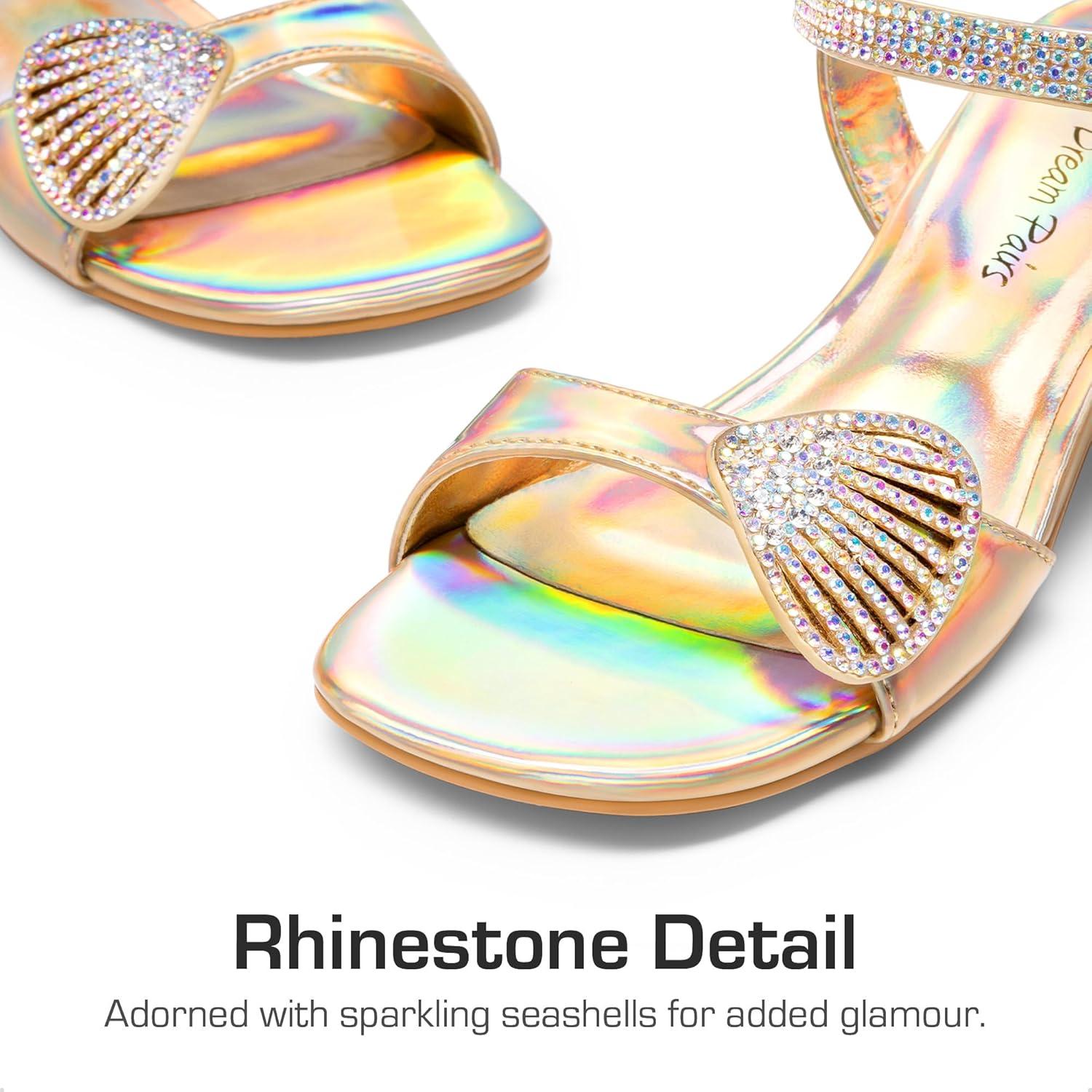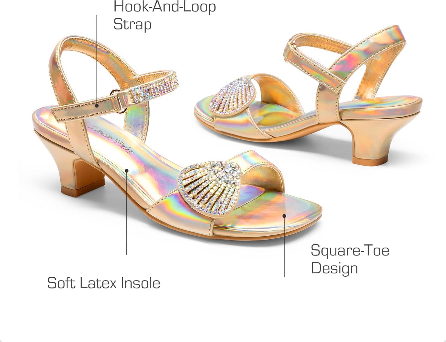 DREAM PAIRS Girls Sandals Ankle Strap Square Toe Low Heel Crystal Shell Wedding Party Flower Dress Shoes for Little Kids/Big Kids(Gold)