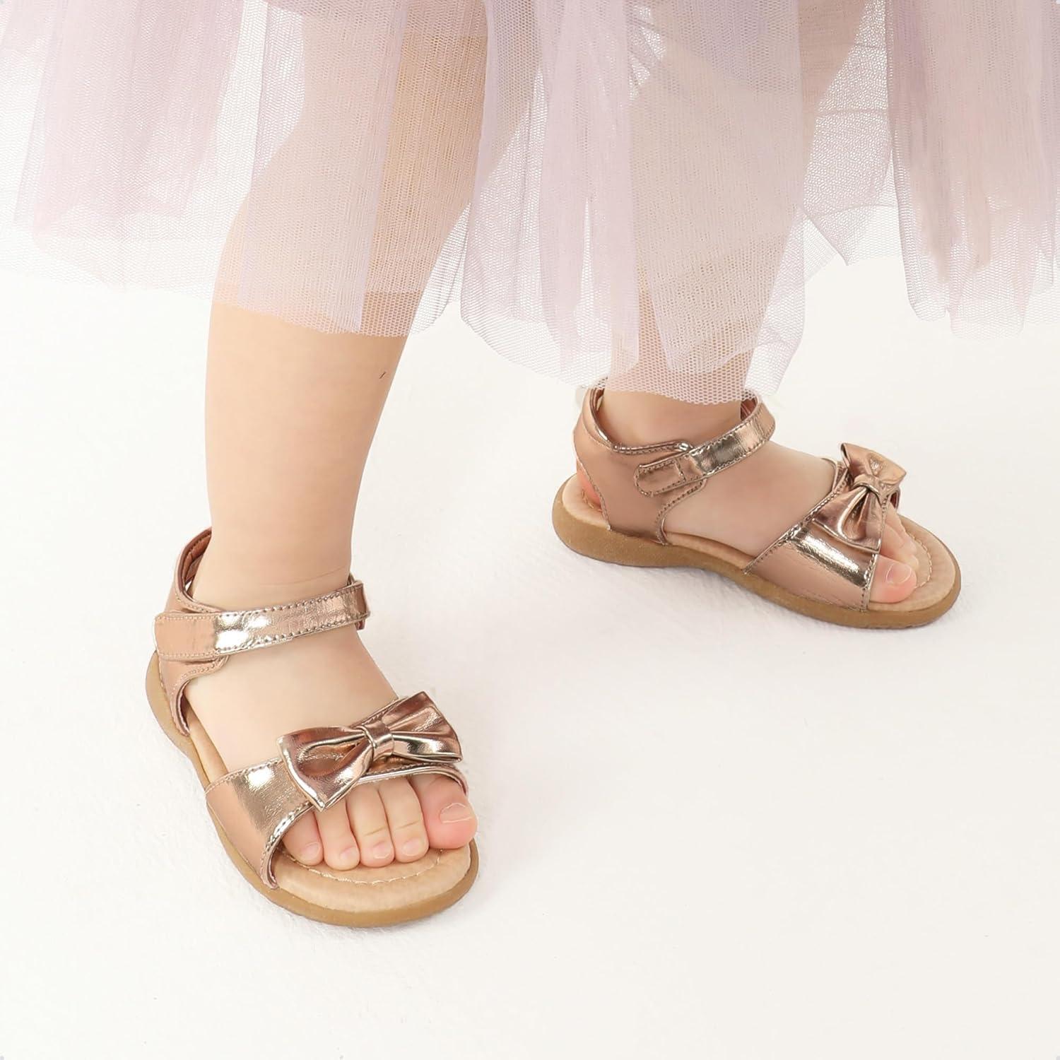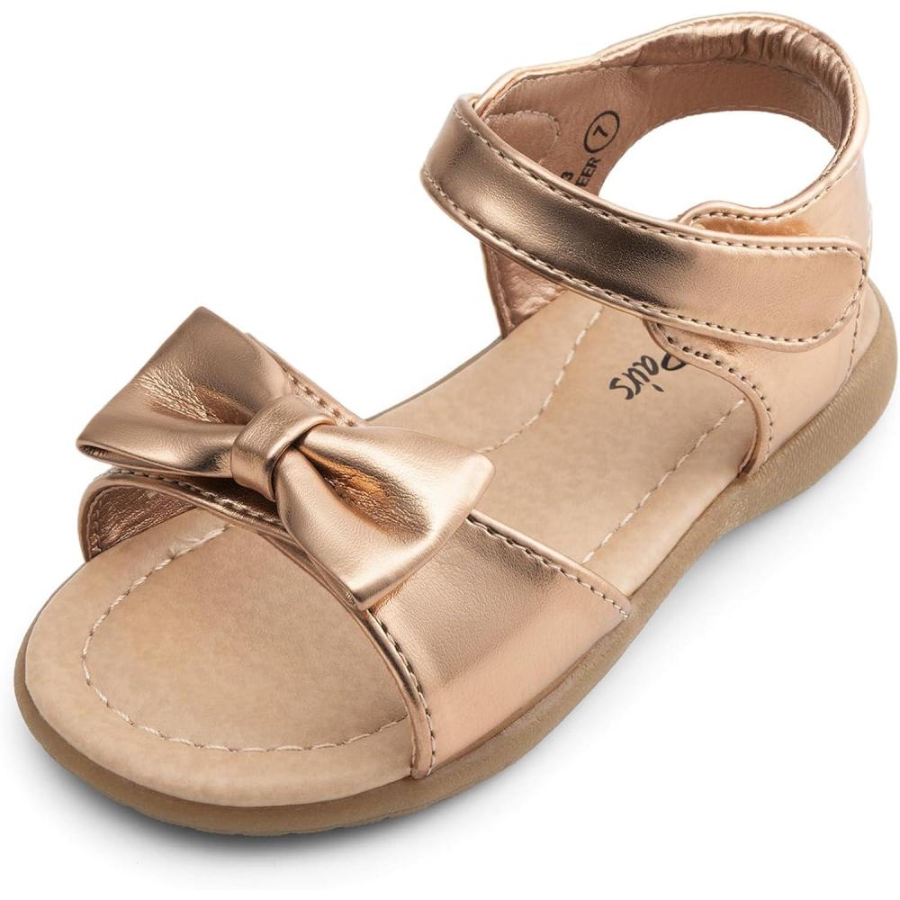 DREAM PAIRS Girls Sandals Fashion Bow Summer Shoes for Toddler/Little Kid(Rose Gold-metallic)