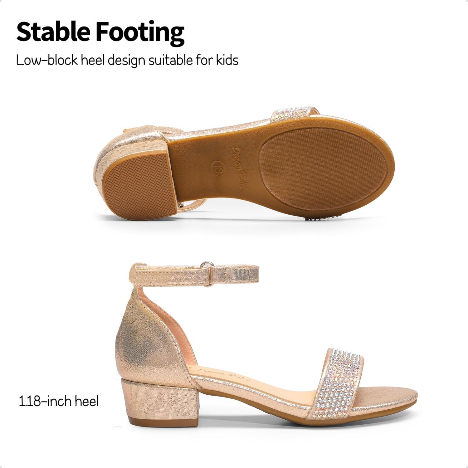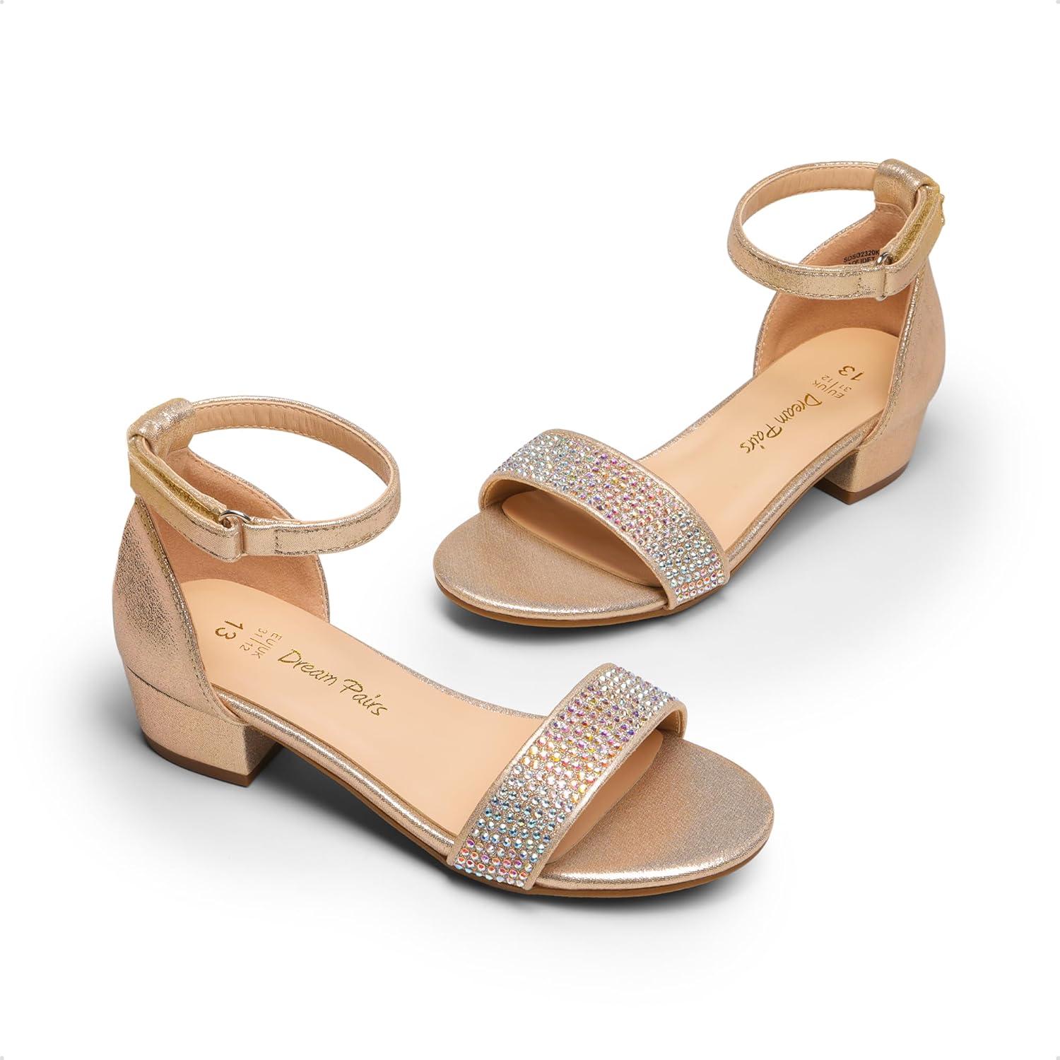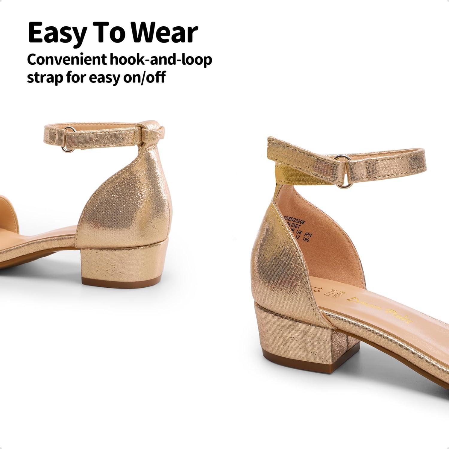 DREAM PAIRS Girls Sandals Low Heel Dress Pump Ankle Strap Interchangeable Bow Flower Wedding Party Shoes for Little Kid/Big Kid(Gold)