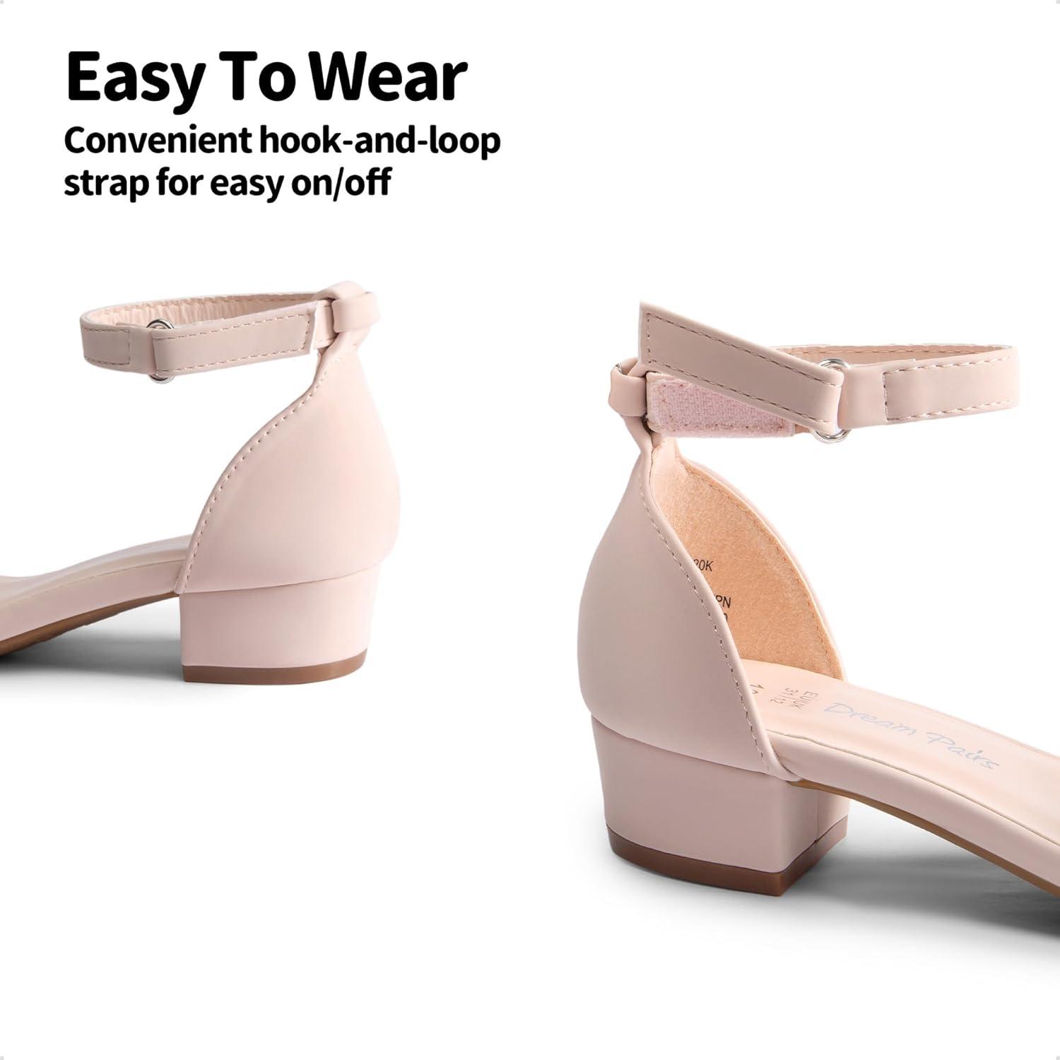 DREAM PAIRS Girls Sandals Low Heel Dress Pump Ankle Strap Interchangeable Bow Flower Wedding Party Shoes for Little Kid/Big Kid(Nude)