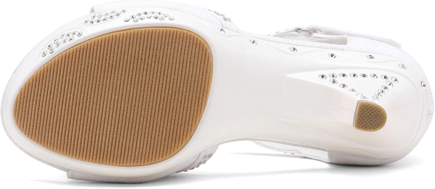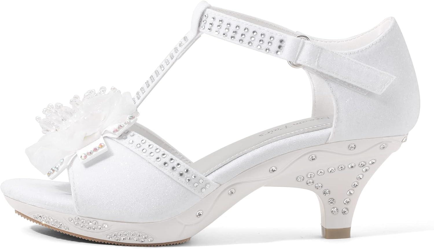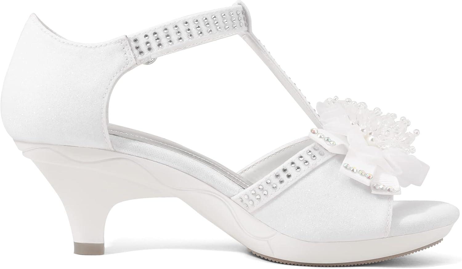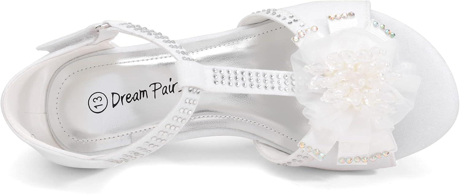 DREAM PAIRS Girls Sandals Low Heel Dress Pump Ankle T Strap Flower Shoes Toddler/Little Kid/Big Kid(White)