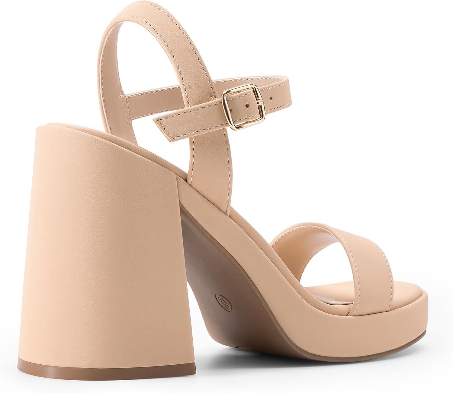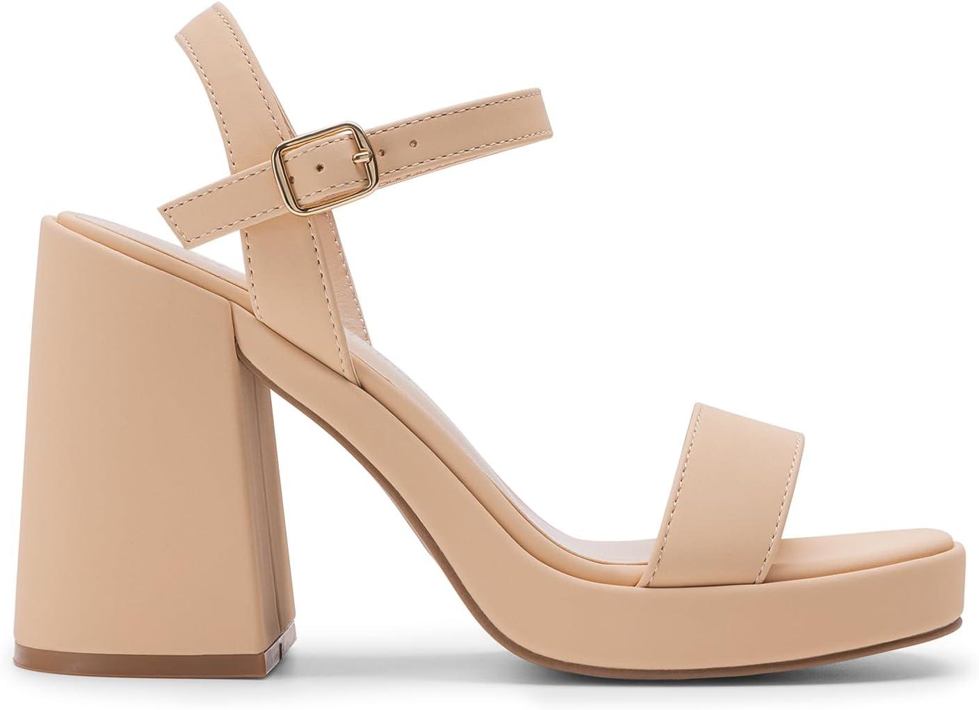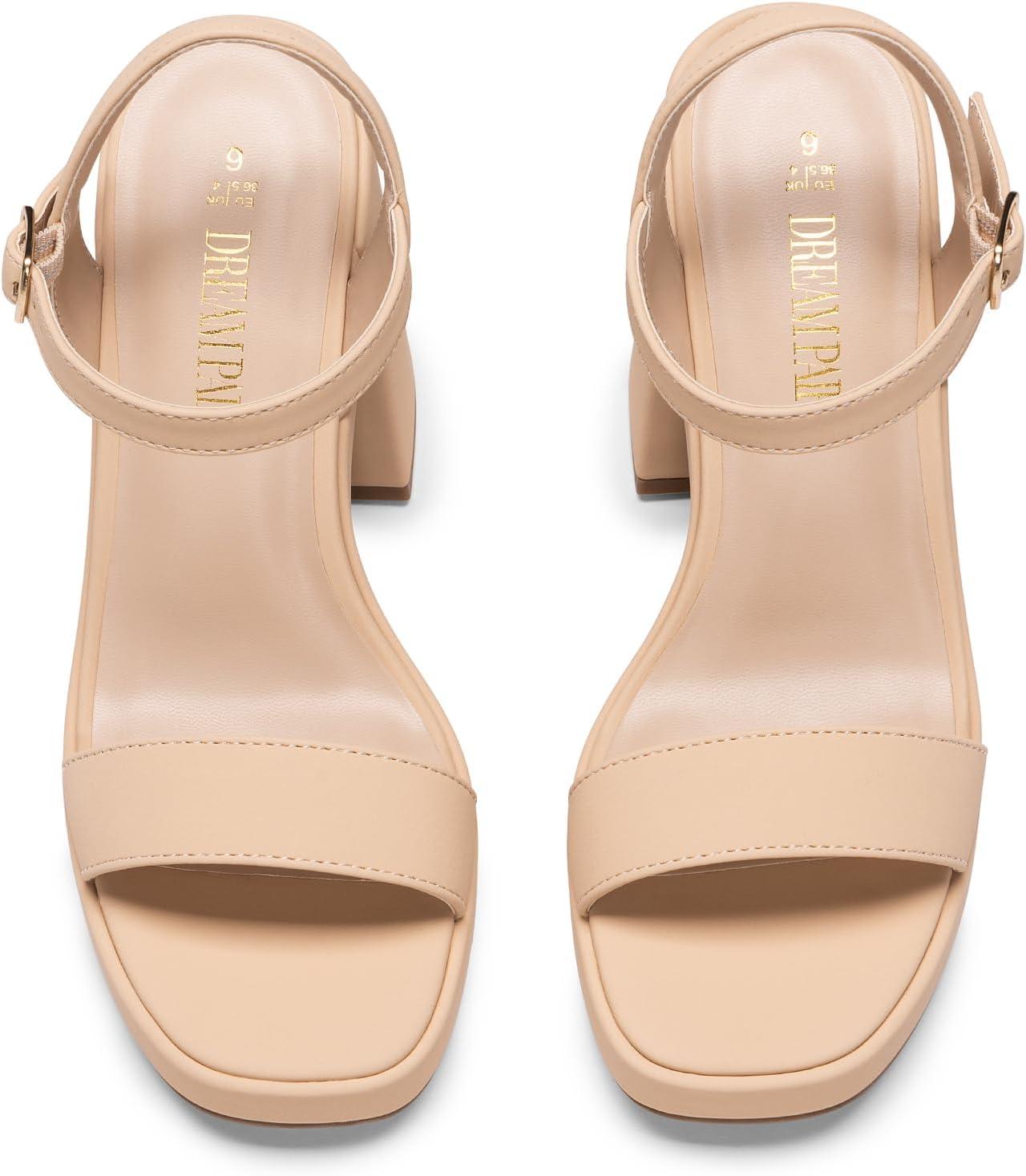 DREAM PAIRS Heels for Women Block Chunky Platform High Heels Open Toe GISELLE Fashion Wedding Party Evening Prom Dance Ankle Strap Dress Pump Sandals Shoes(Nude-nubuck)