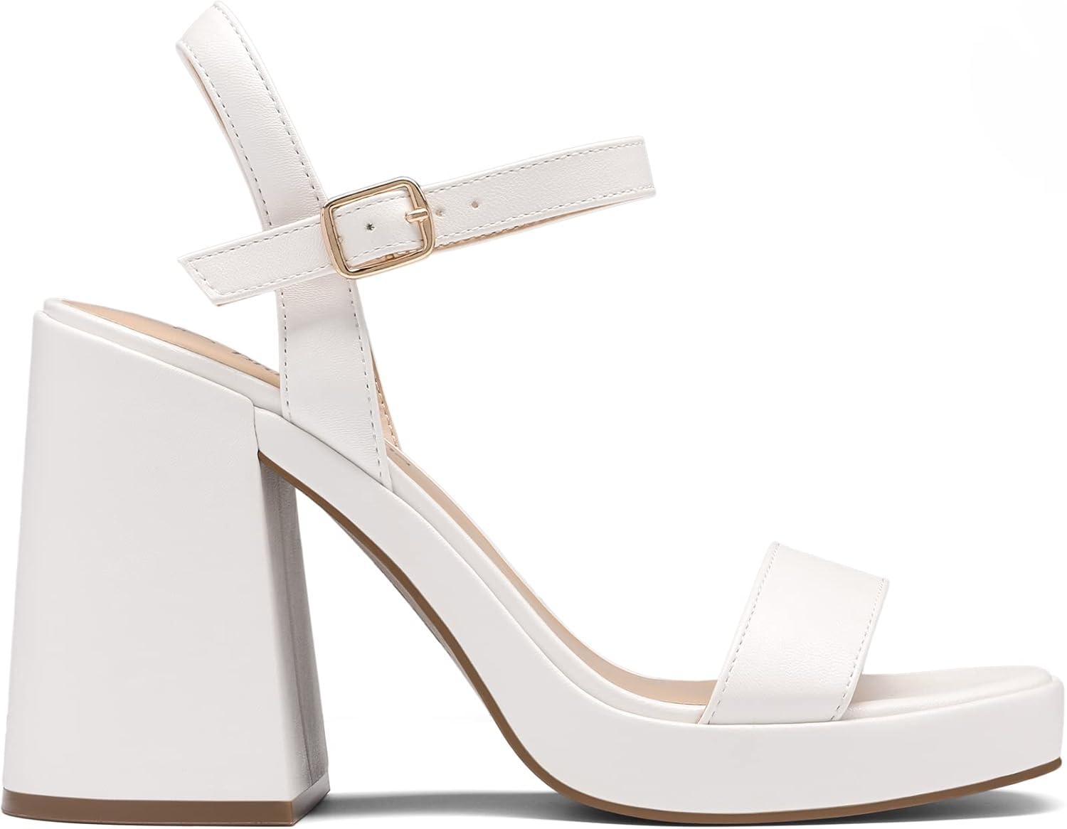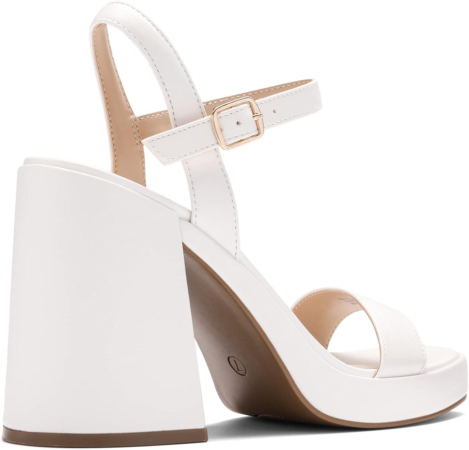 DREAM PAIRS Heels for Women Block Chunky Platform High Heels Open Toe GISELLE Fashion Wedding Party Evening Prom Dance Ankle Strap Dress Pump Sandals Shoes(White)