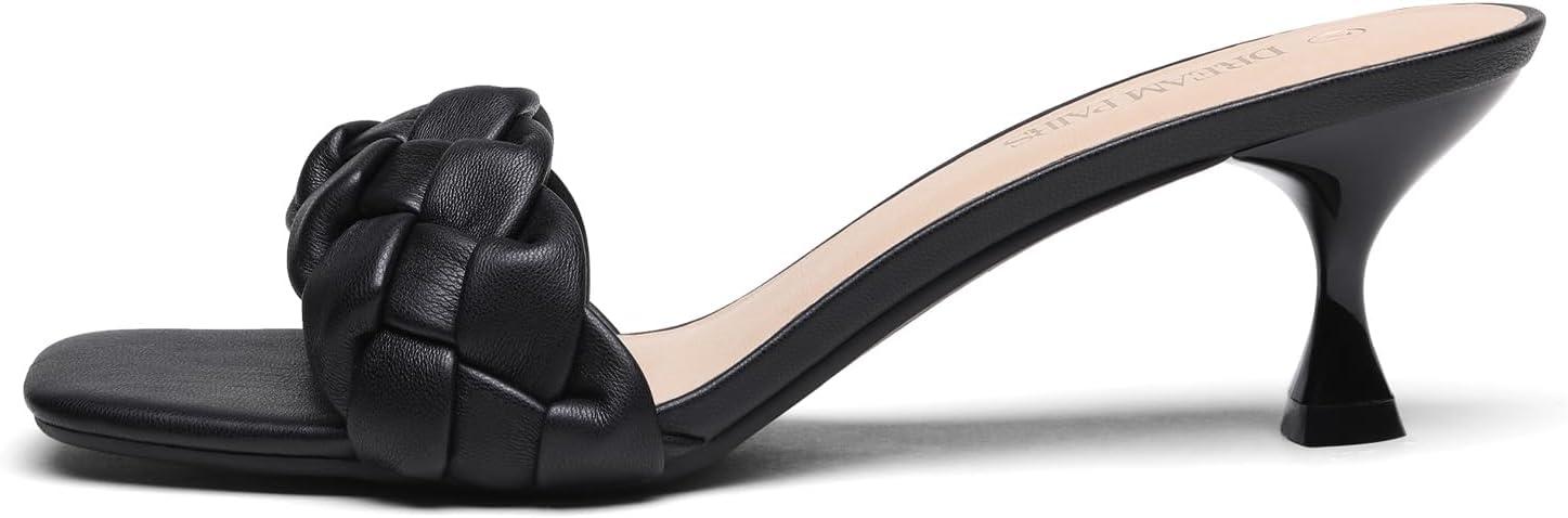 DREAM PAIRS Heels for Women Rhinestone Open Toe Low Kitten Heels Sexy Stilettos Heels Pump Sandals Party Evening Prom Dance Dress Shoes(Black/Pu)