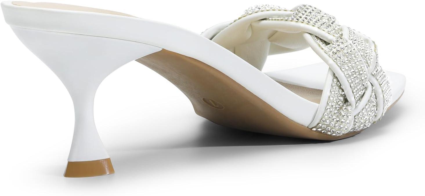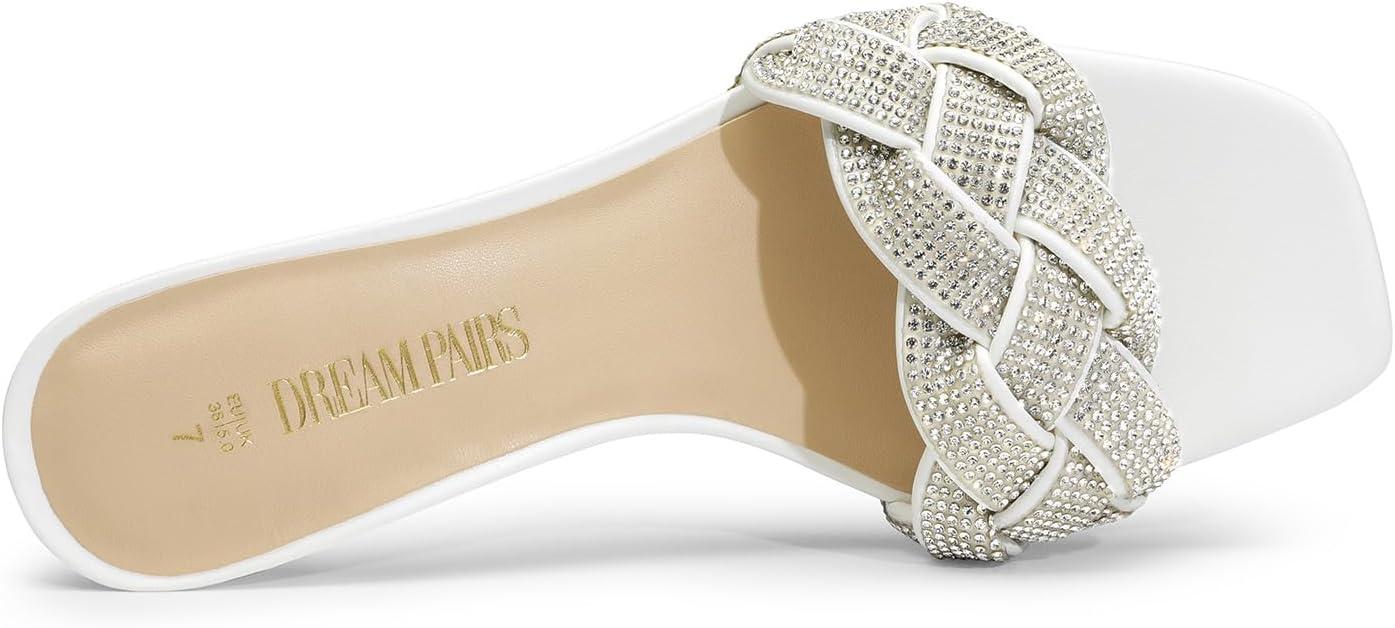 DREAM PAIRS Heels for Women Rhinestone Open Toe Low Kitten Heels Sexy Stilettos Heels Pump Sandals Party Evening Prom Dance Dress Shoes(White-rhinestone)