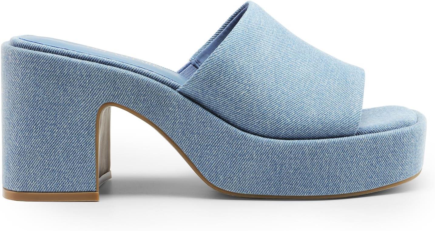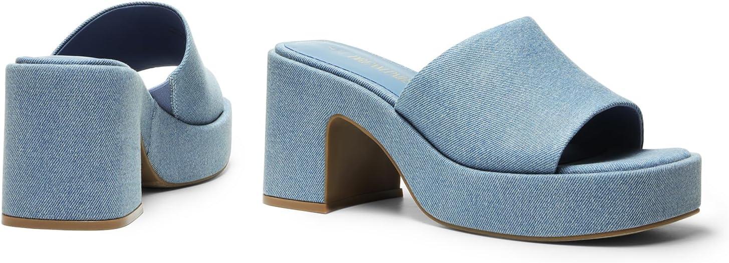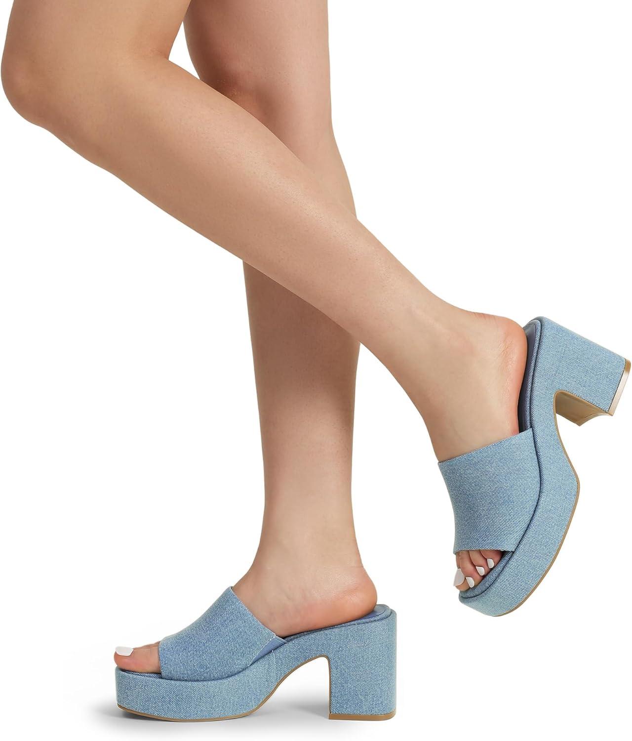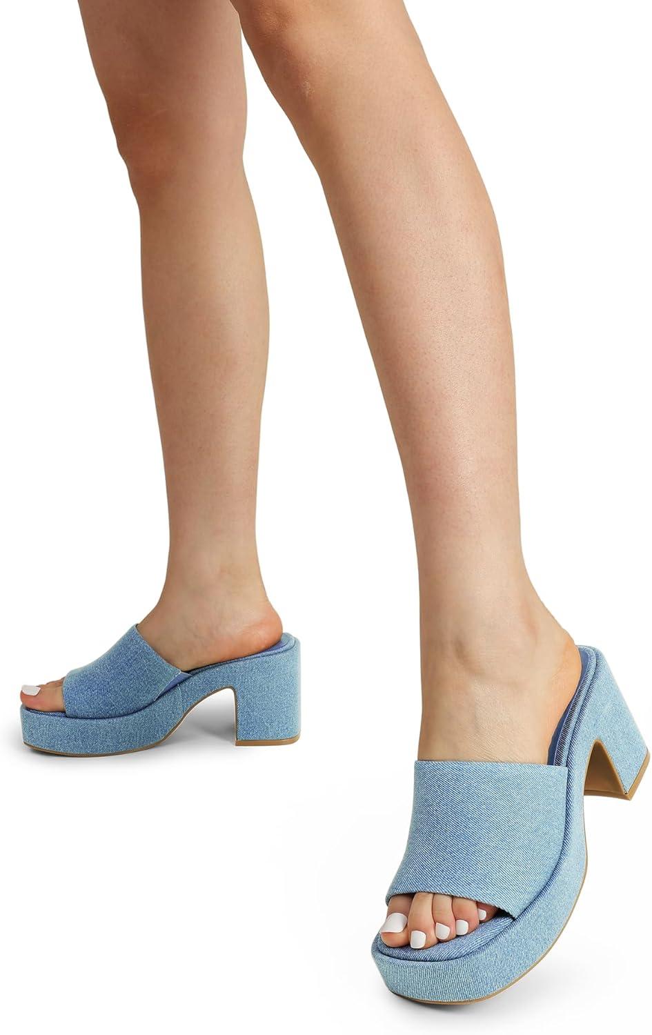 DREAM PAIRS High Chunky Platform Heels for Women Fashion Comfort Slip on Square Open Toe Block Heel Sandals(Denim Blue)