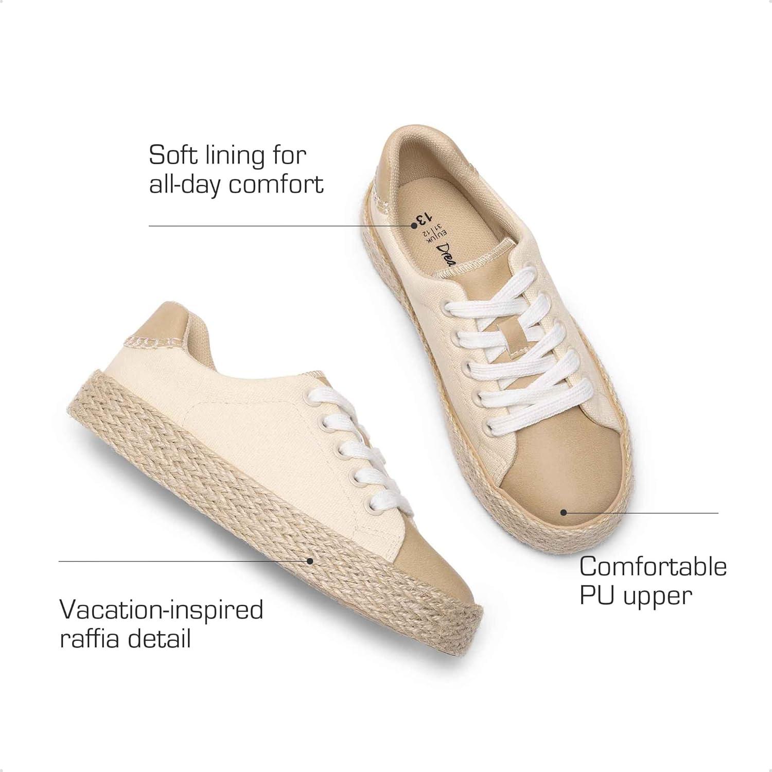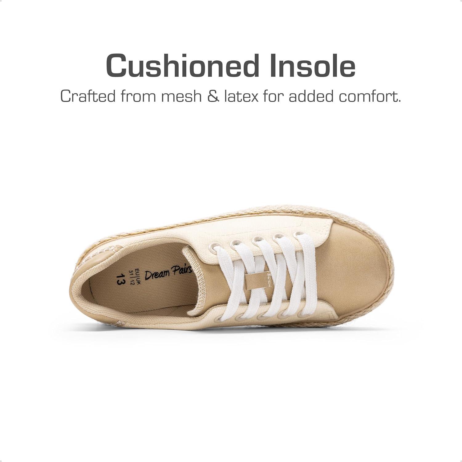 DREAM PAIRS Kid Boys Girls Sneakers Canvas Espadrille Lace Up Walking Casual Shoes(Beige)