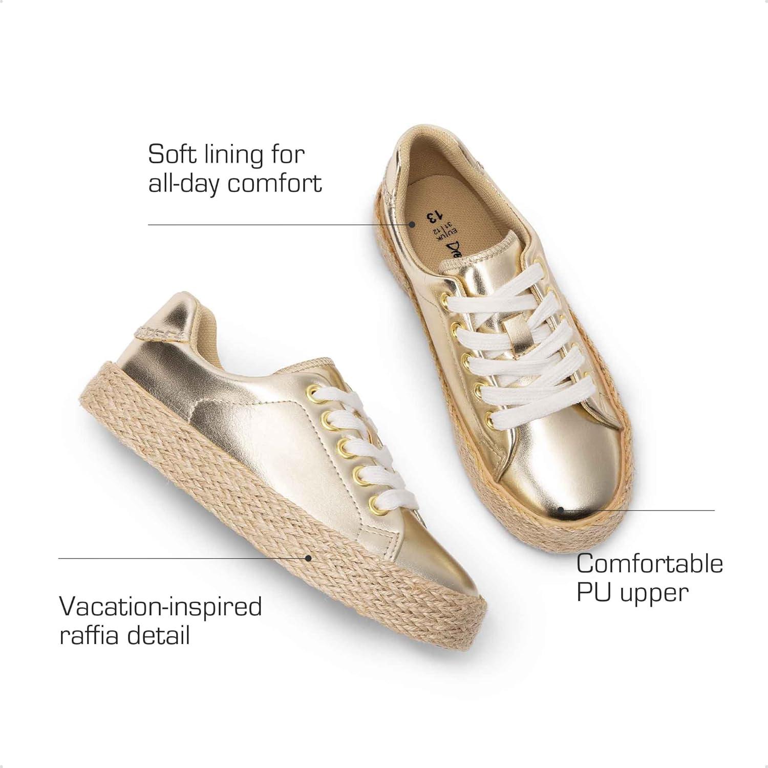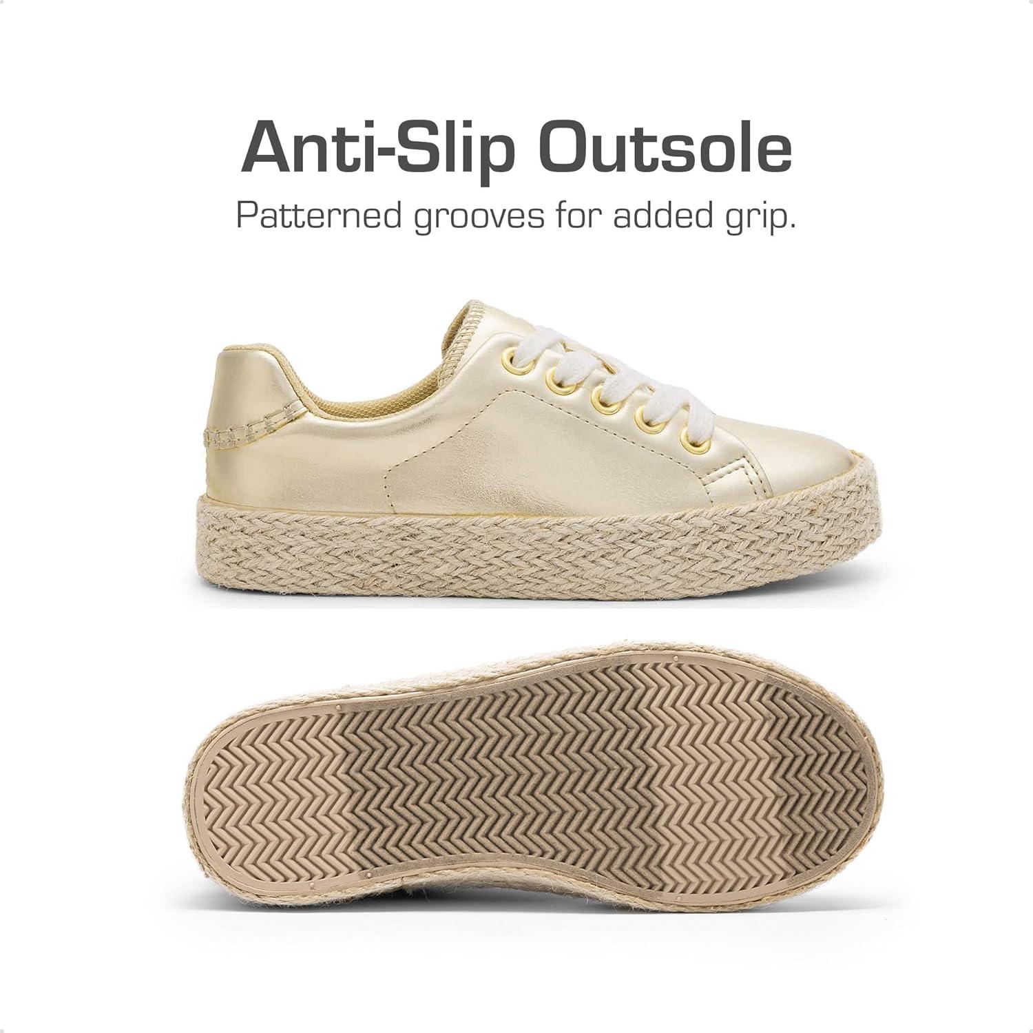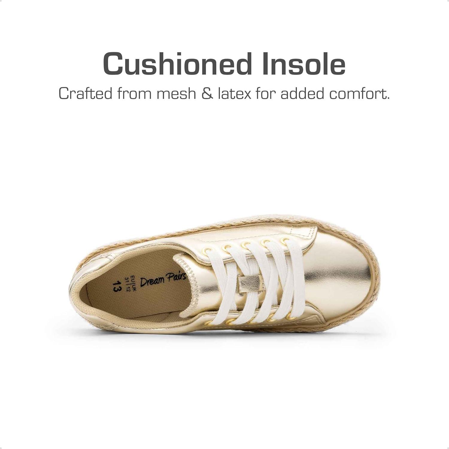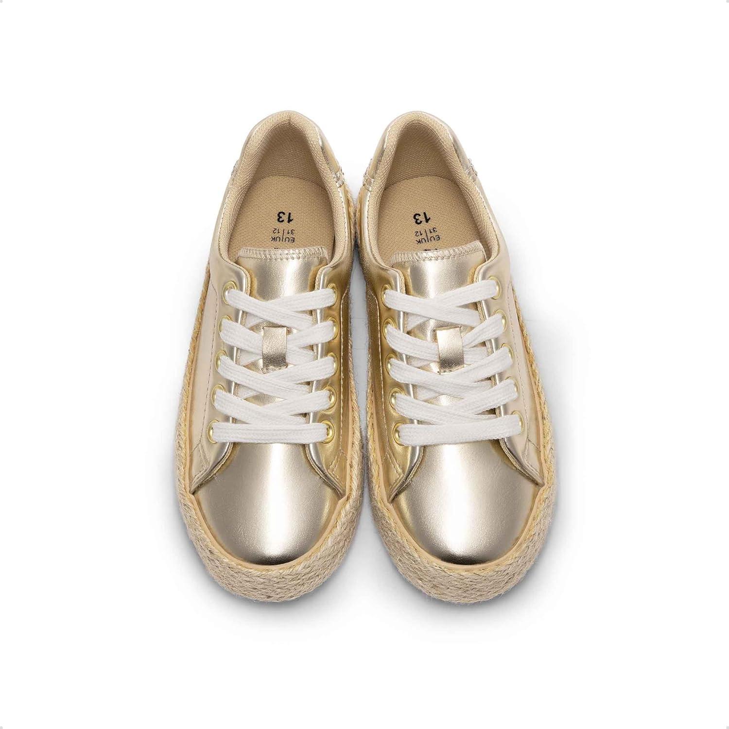 DREAM PAIRS Kid Boys Girls Sneakers Canvas Espadrille Lace Up Walking Casual Shoes(Gold)