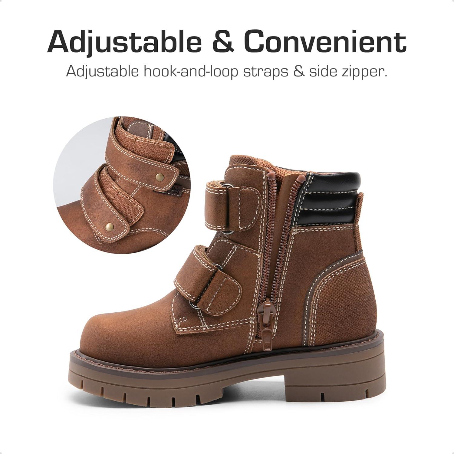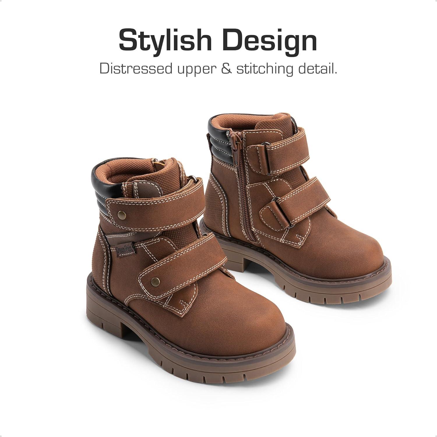 DREAM PAIRS Kids Ankle Boots Boys Girls Fashion Booties with Hook and Loop (Toddler/Little Kid)(Brown)