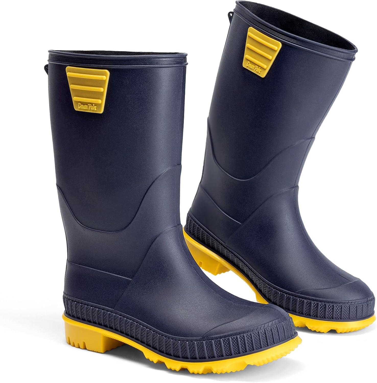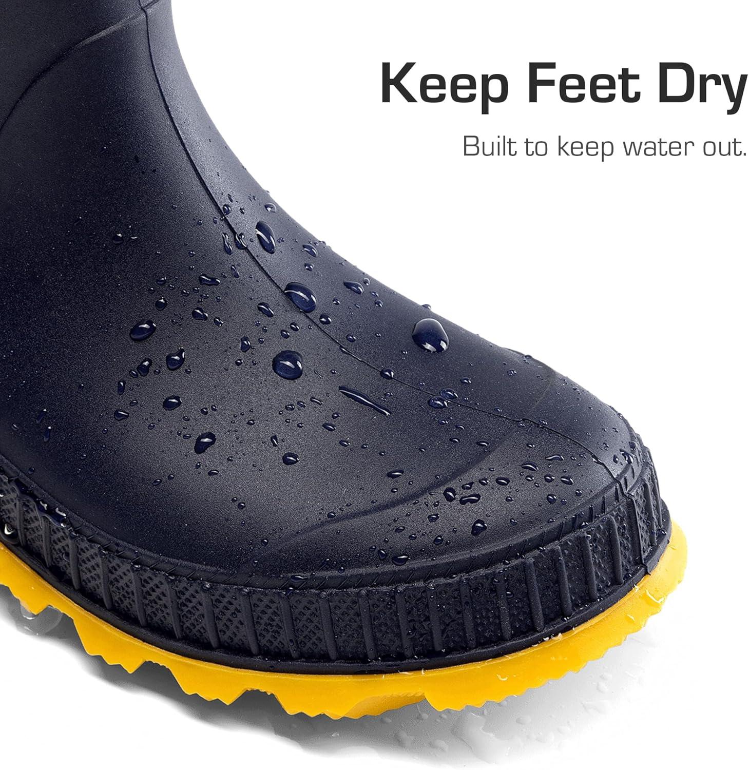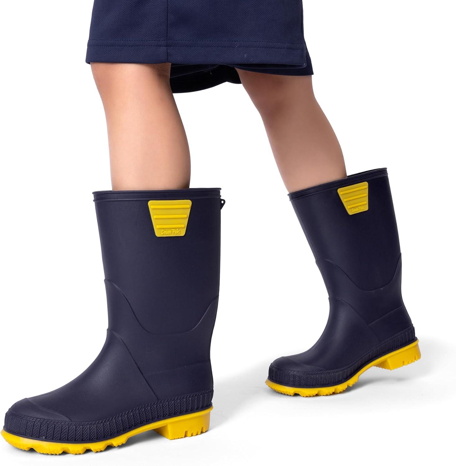 DREAM PAIRS Kids Rain Boots Easy-On Lightweight Non-Slip Outsole for Boys & Girls Outdoor Rainy Day Play(Navy/Yellow)
