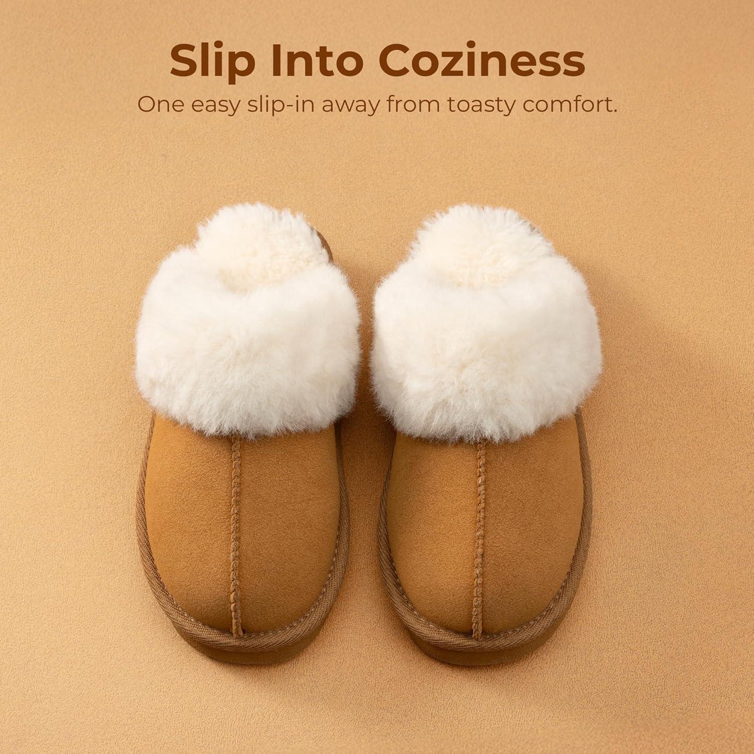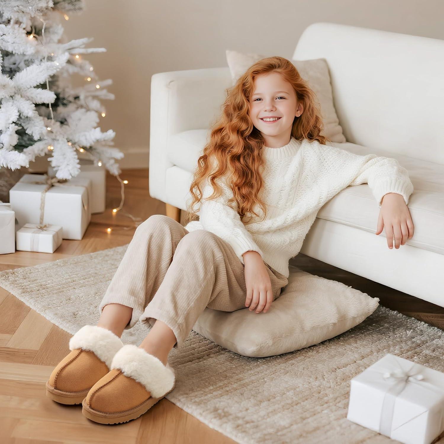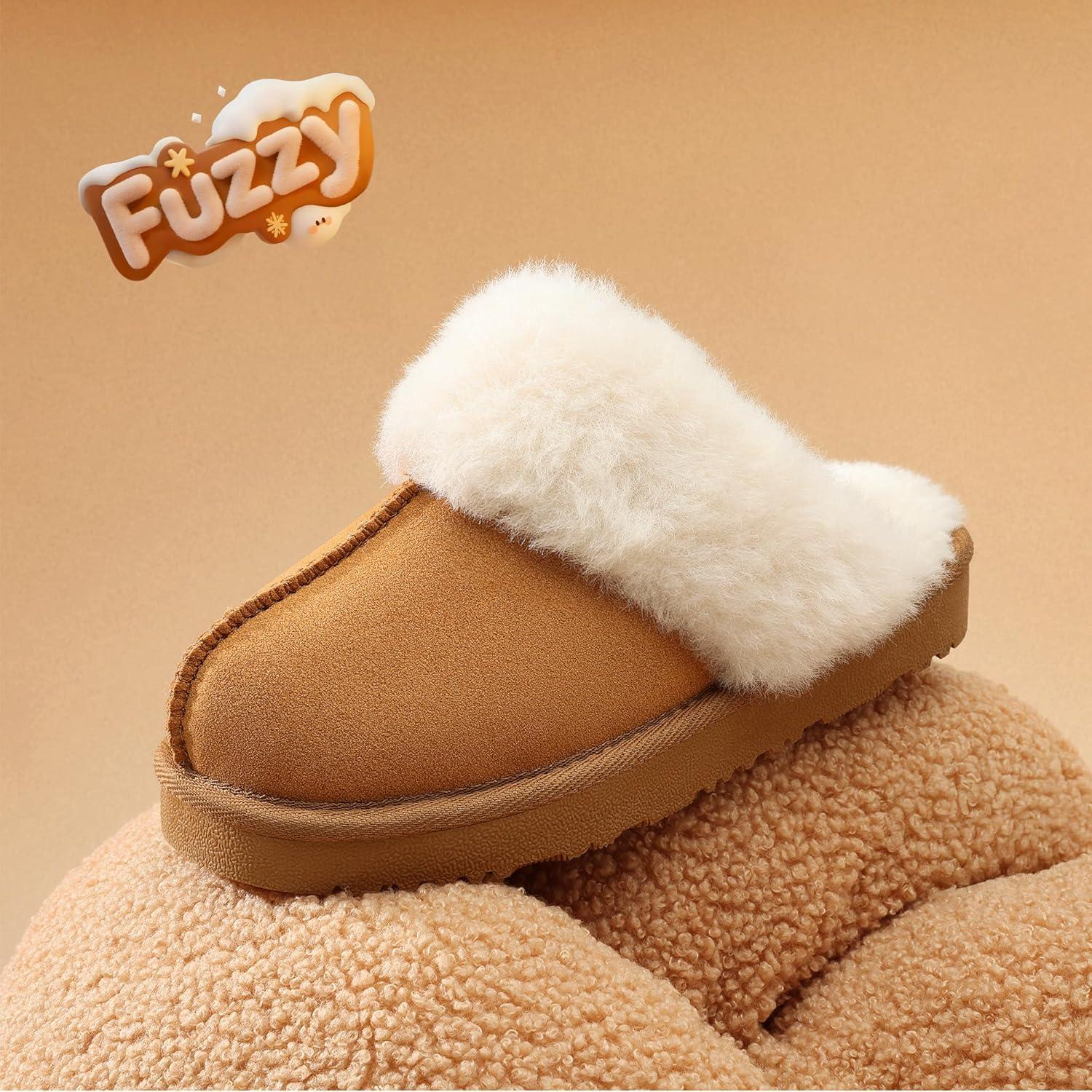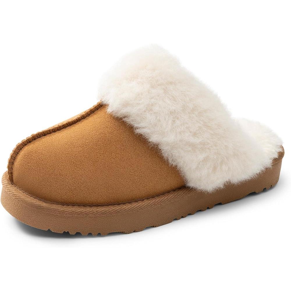 DREAM PAIRS Kids Slippers Girls Boys House Fuzzy Indoor Outdoor Warm Slip on Slipper for Little Kid Big Kid(Camel)