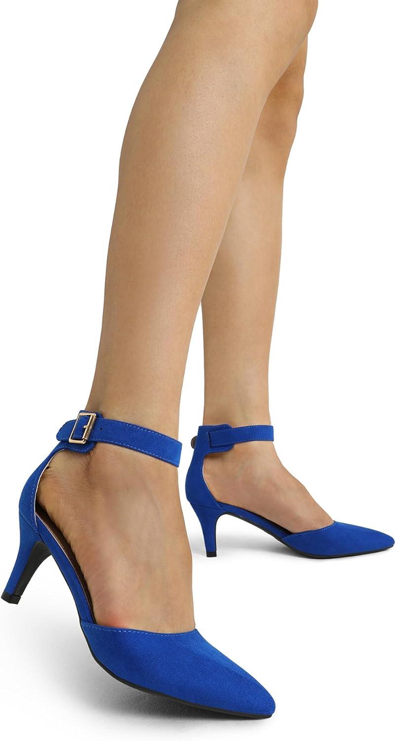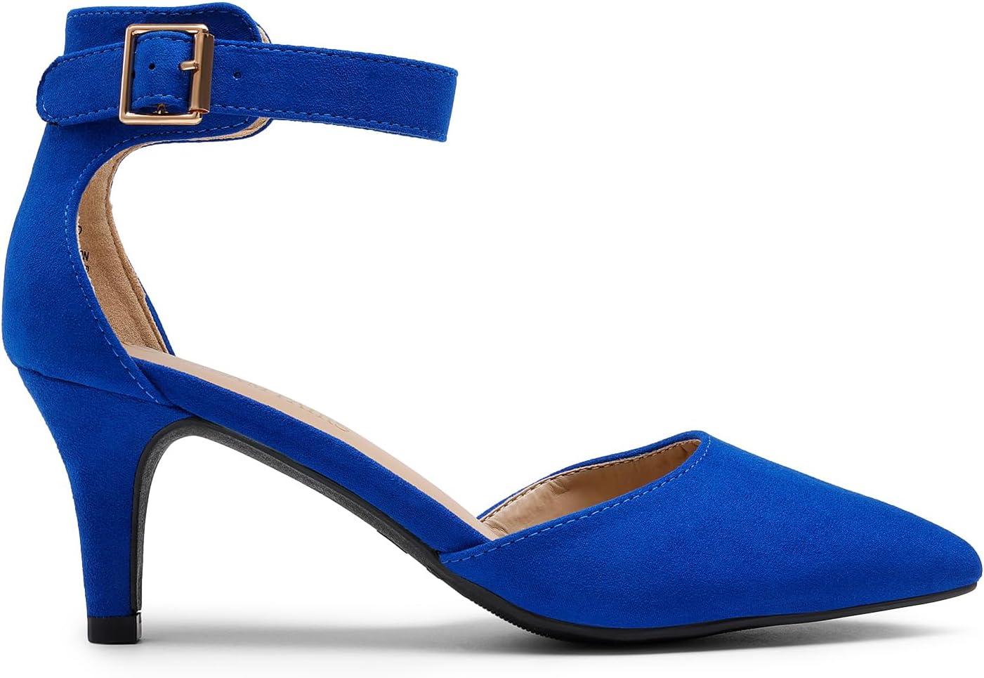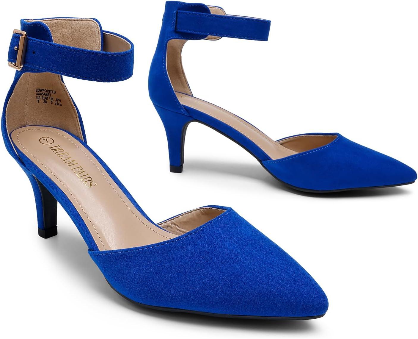 DREAM PAIRS Kitten Heel Low Heel for Women Closed Pointed Toe Pumps Wedding Party Sexy Dress Shoes Lowpointed(Royal/Blue)