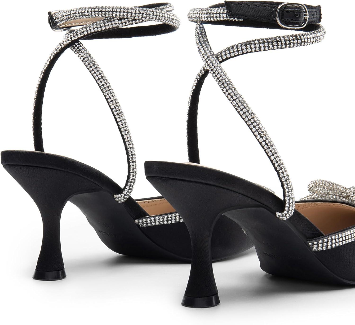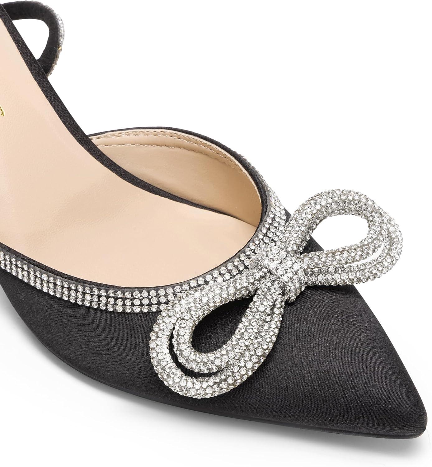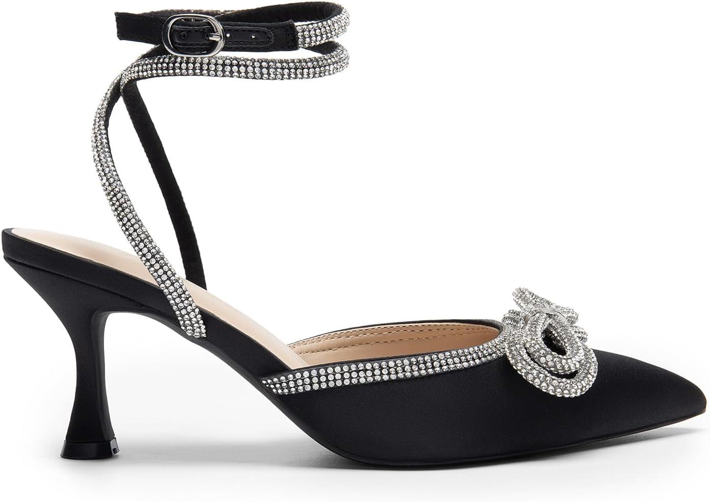 DREAM PAIRS Kitten Heels Rhinestone Bow Ankle Strap Stiletto Pointed Closed Toe Heels for Women Pumps Wedding Bridal Party Dress Shoes(Black)