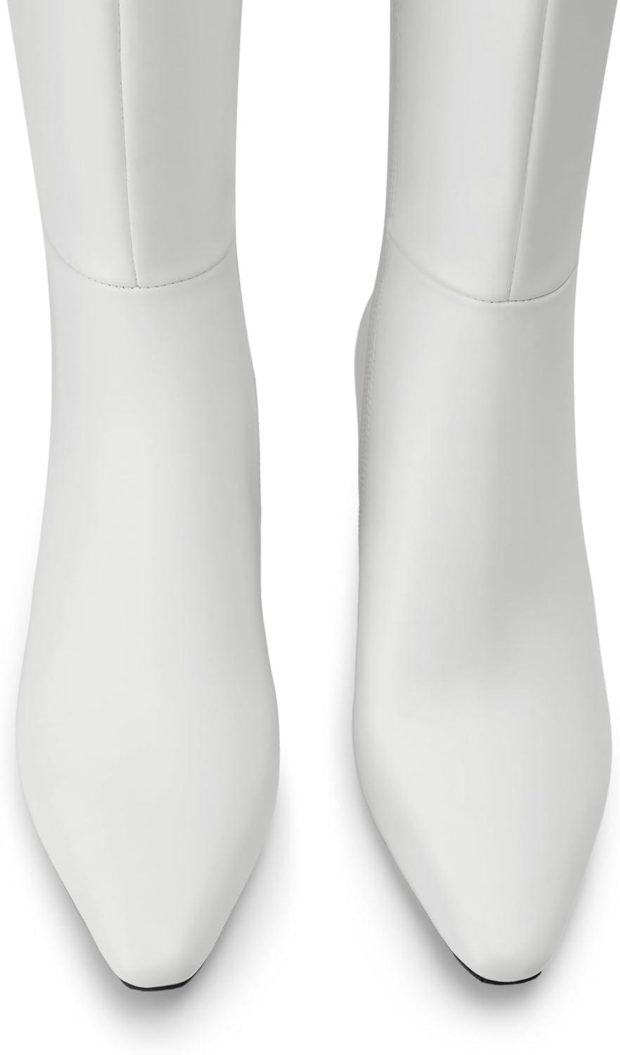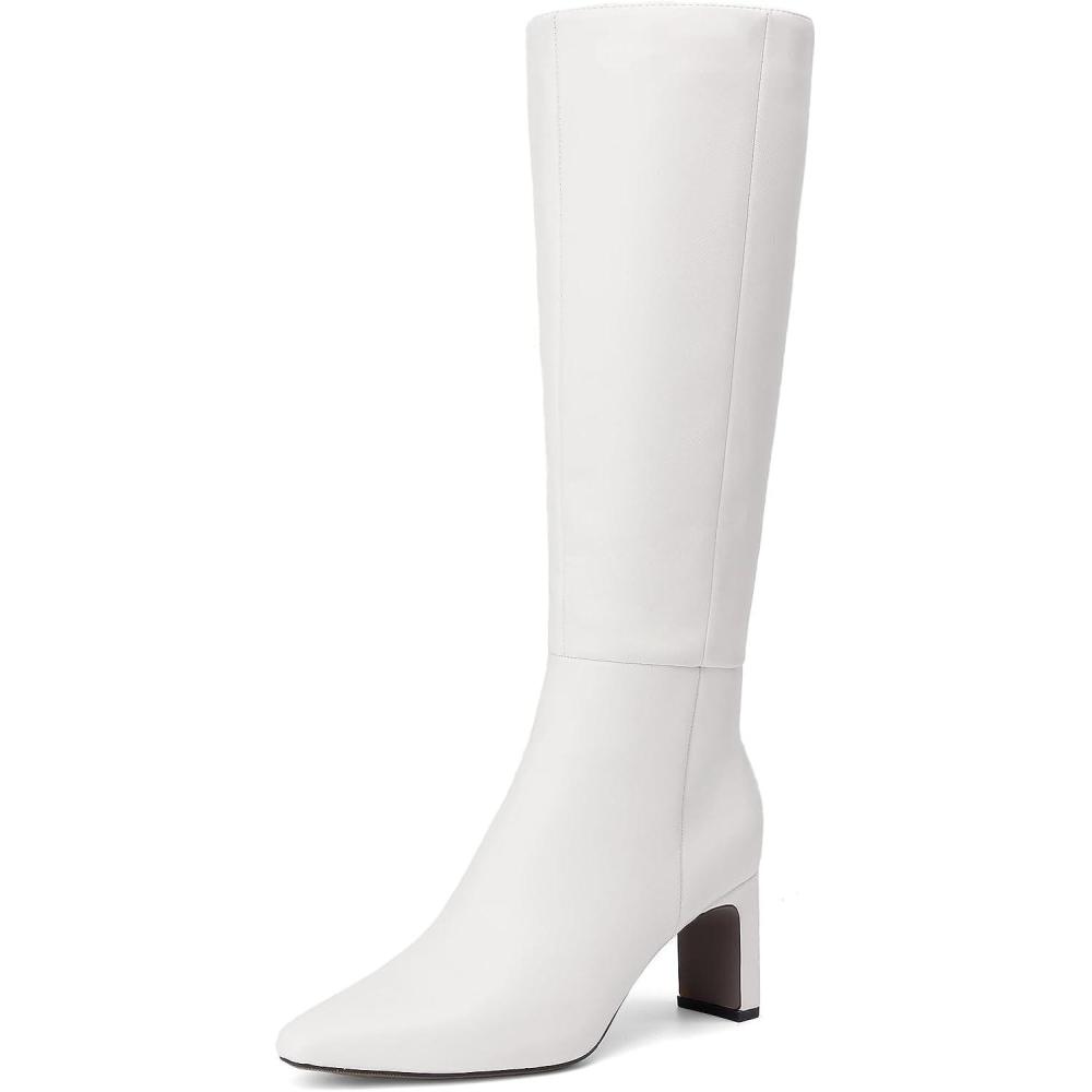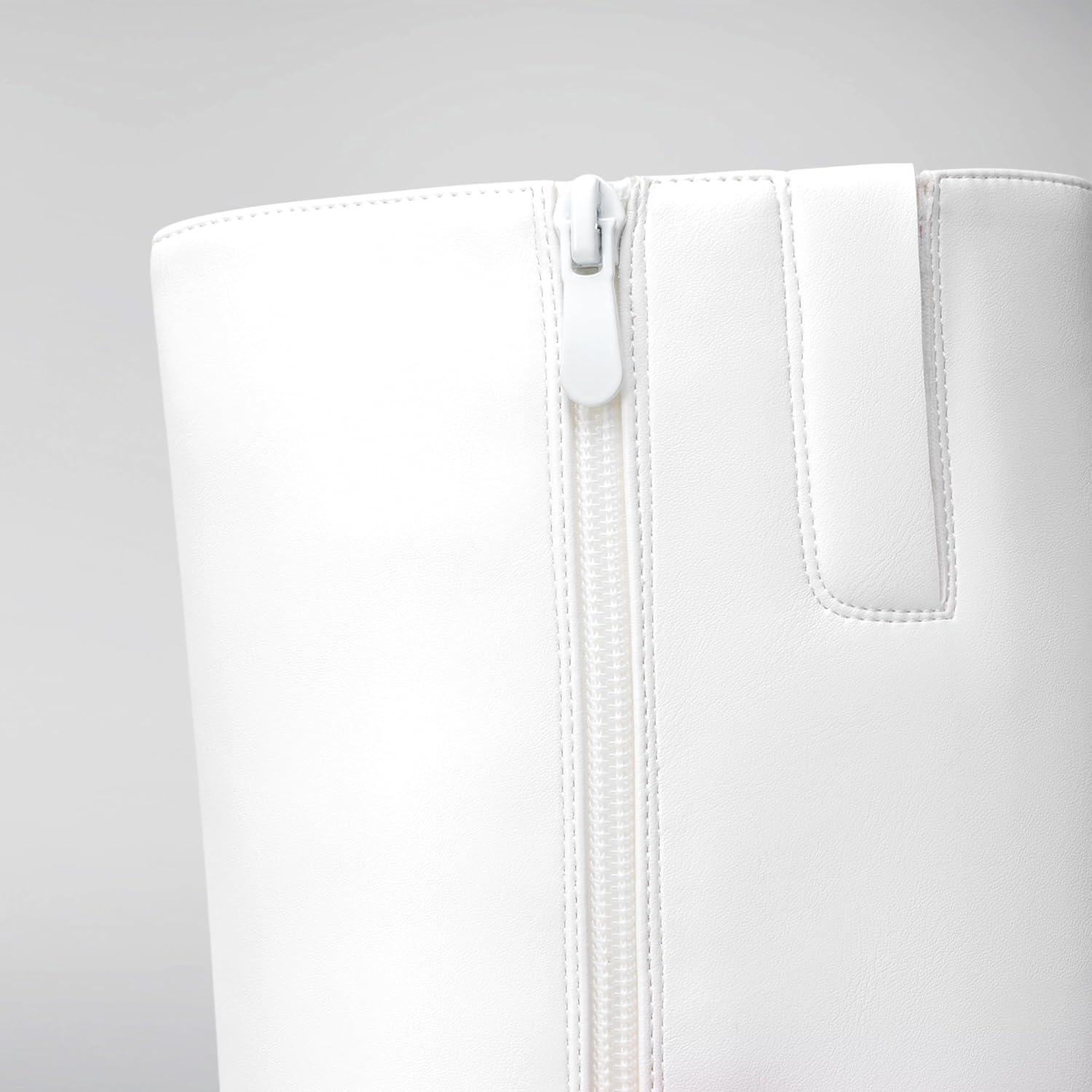 DREAM PAIRS Knee High Boots Women Chunky Block Heel Square Toe Side Zipper Tall Boots for Women(White)