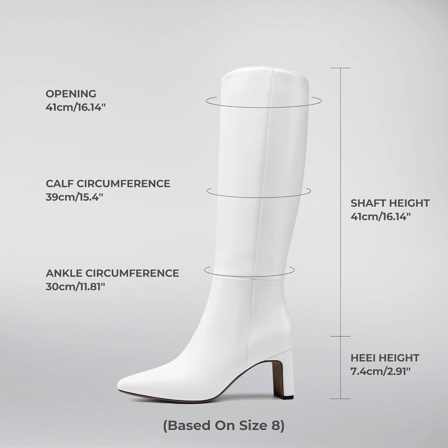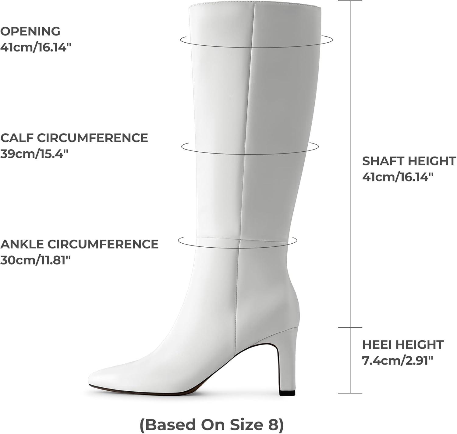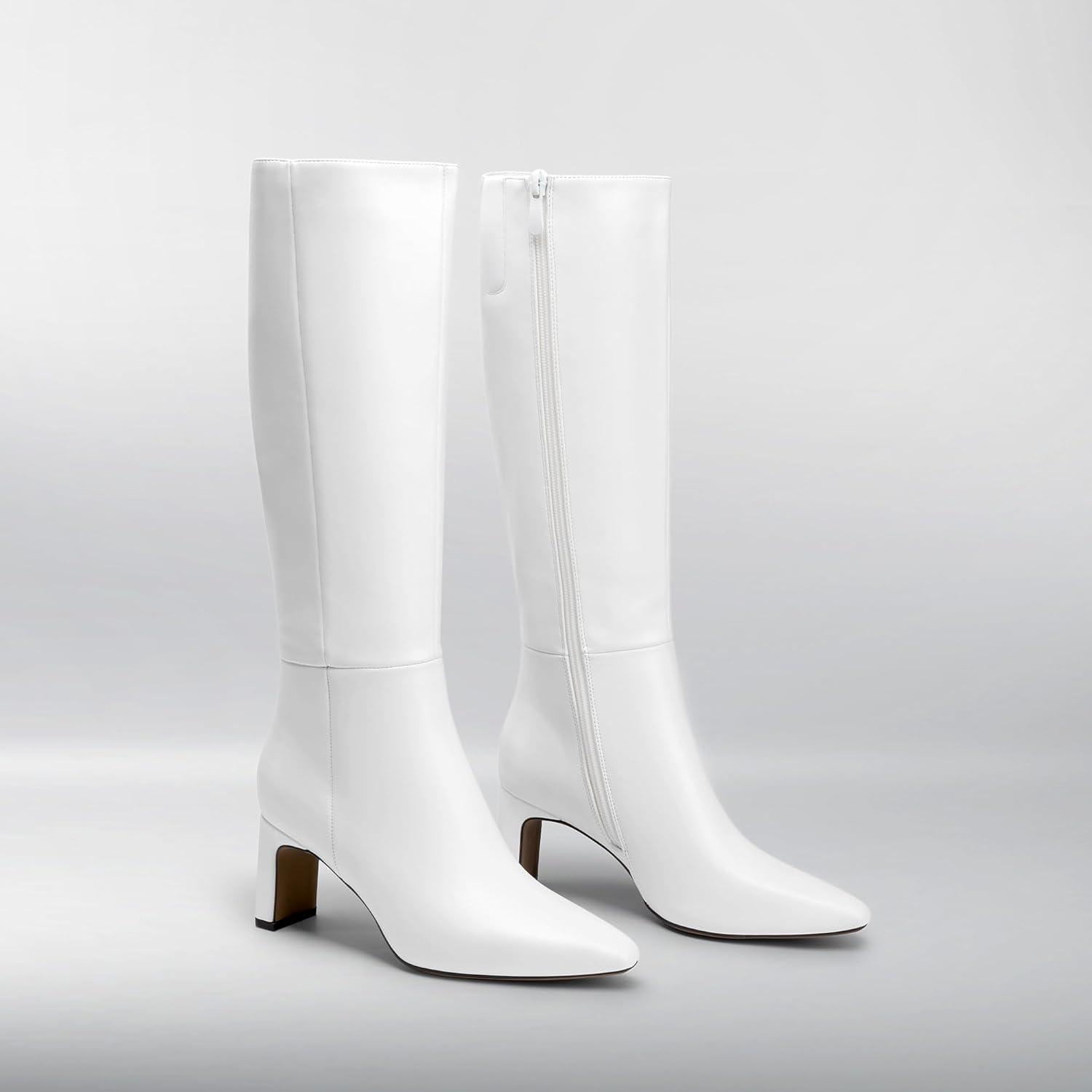 DREAM PAIRS Knee High Boots Women Chunky Block Heel Square Toe Side Zipper Tall Boots for Women(White)