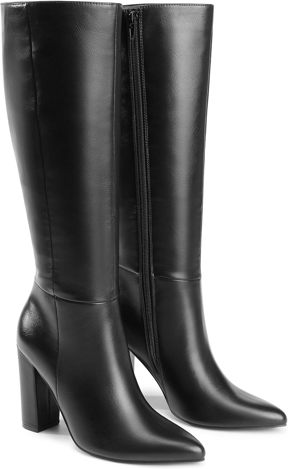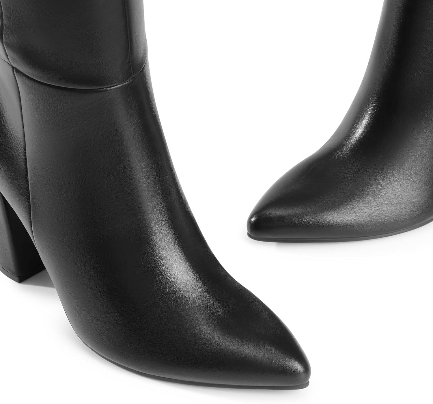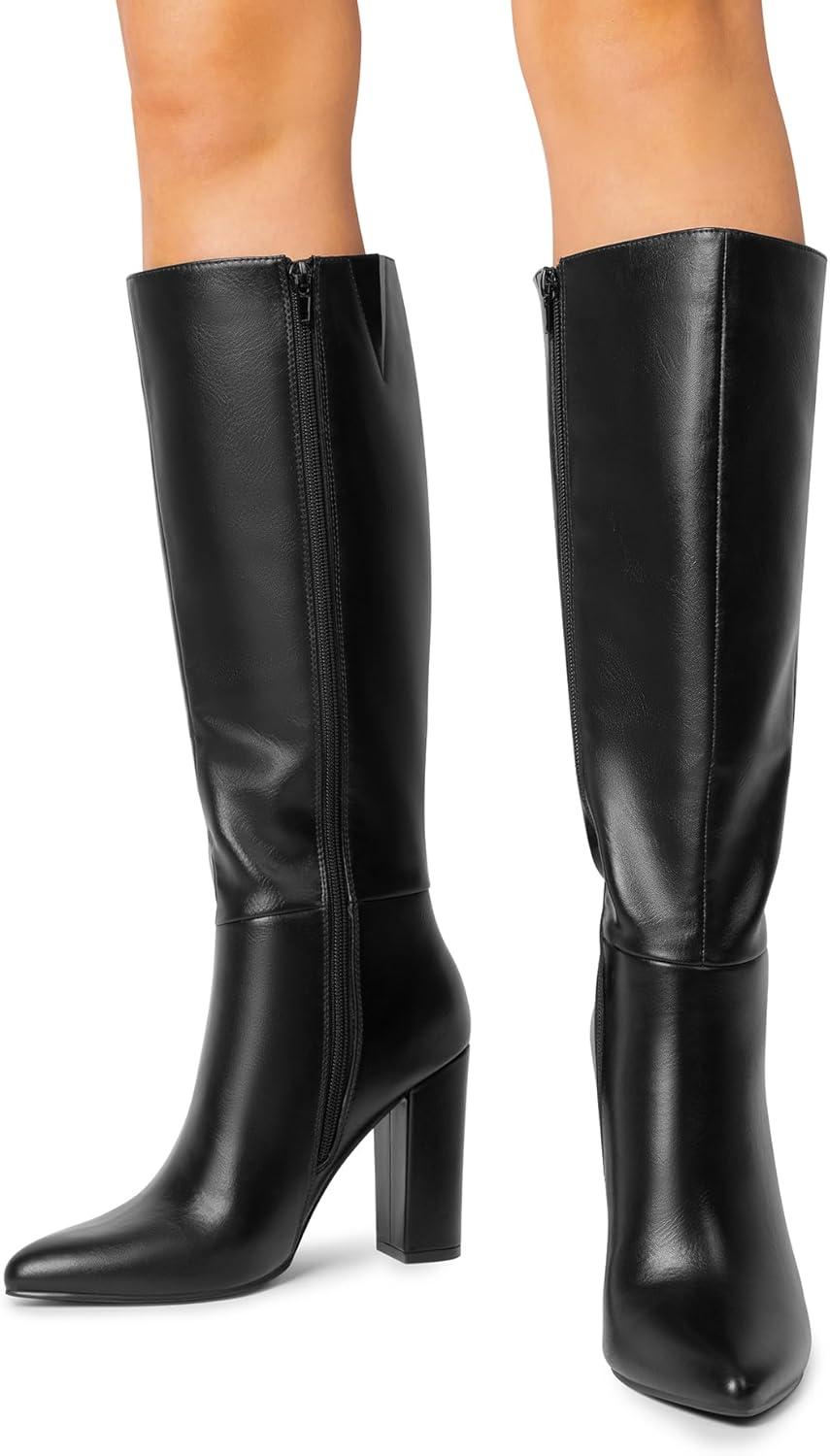 DREAM PAIRS Knee High Boots Women Chunky Heel Pointed Toe Tall Boots for Women Side Zipper Long Boots(Black-pu)