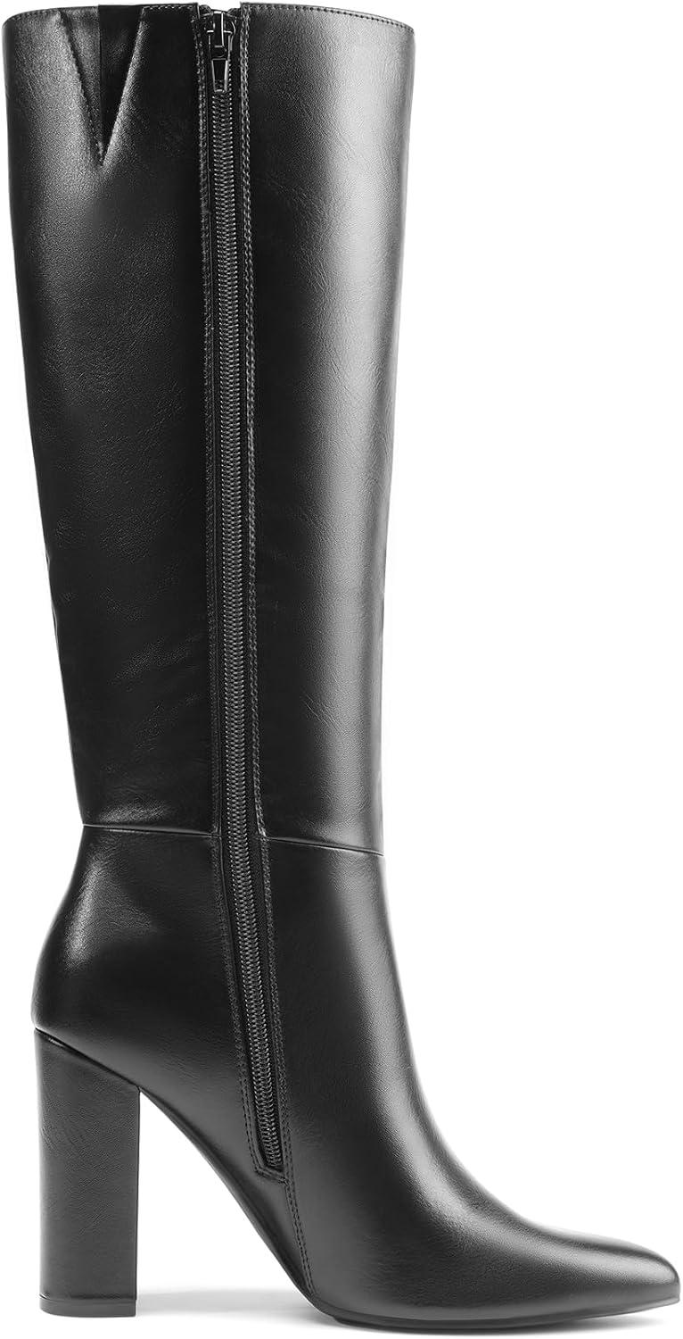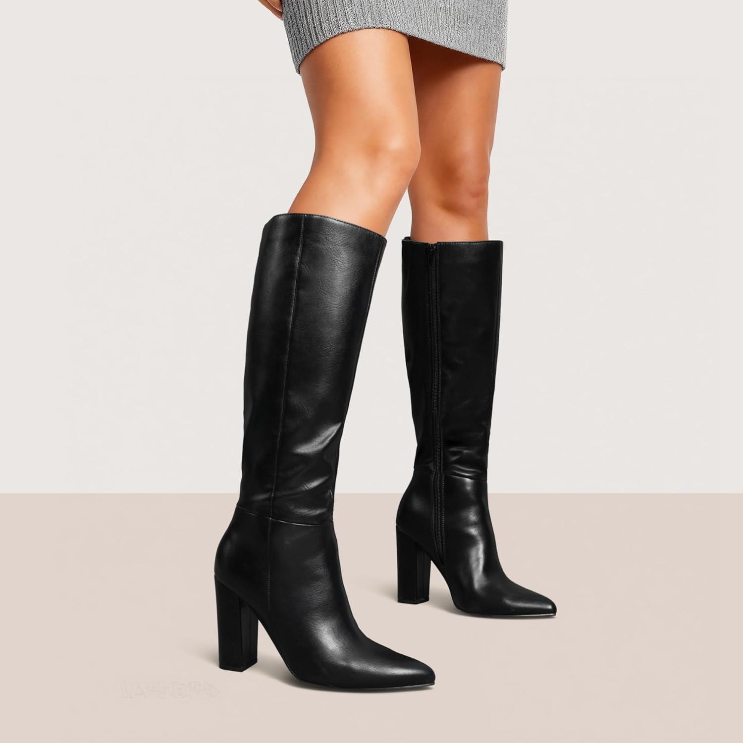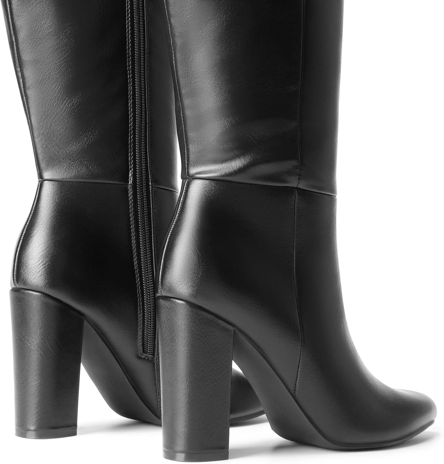 DREAM PAIRS Knee High Boots Women Chunky Heel Pointed Toe Tall Boots for Women Side Zipper Long Boots(Black-pu)
