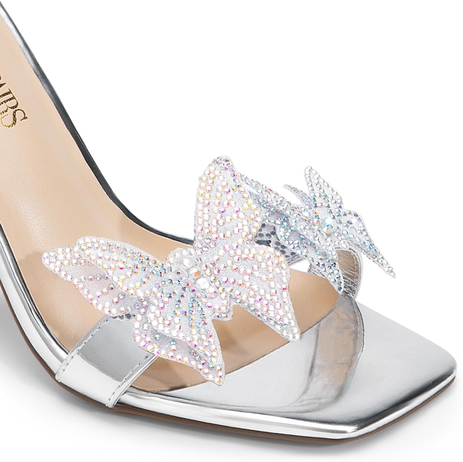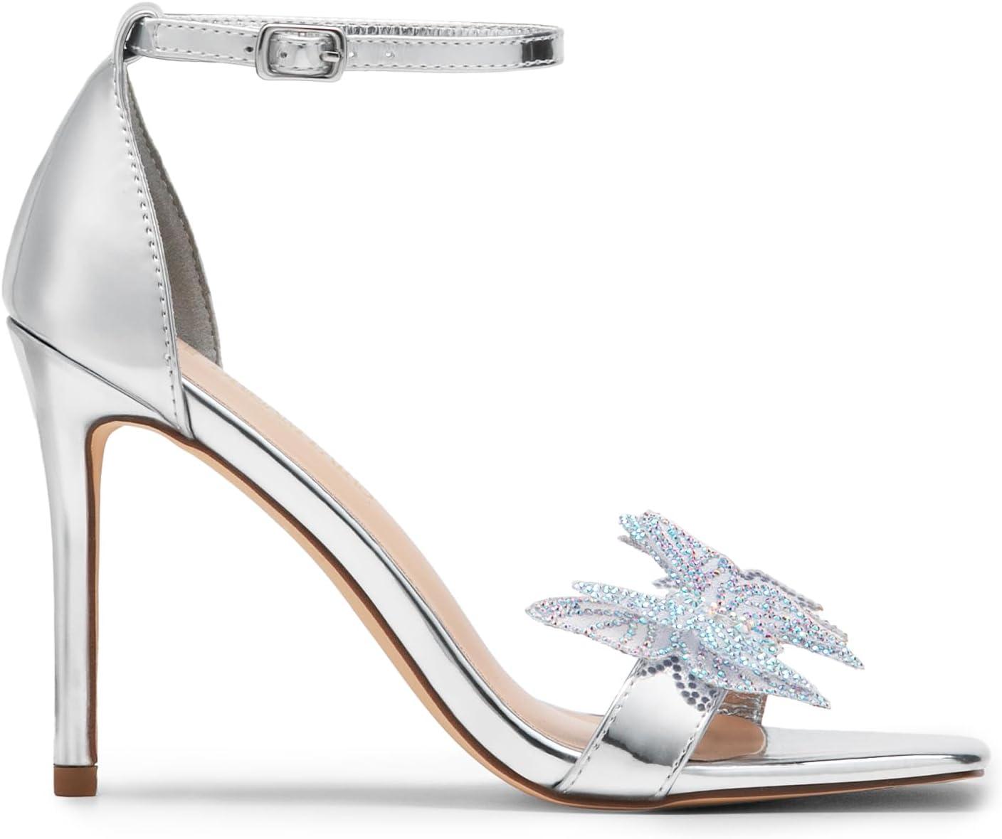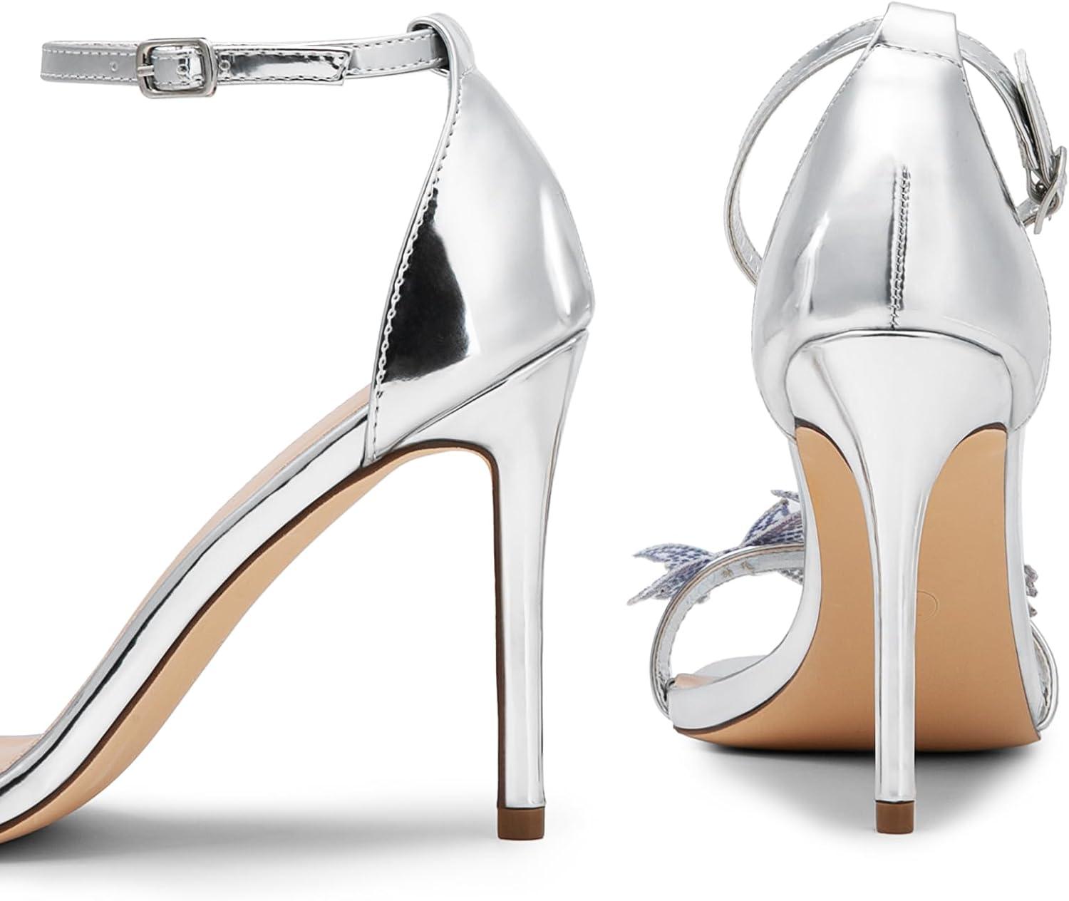 DREAM PAIRS Lace Up High Shoes Stilletos Sandals for Women Strappy Gladiator Open Square Toe Fashion Dressy Sandals Wedding Bridal Pumps Sandals Shoes(All Silver-pat)