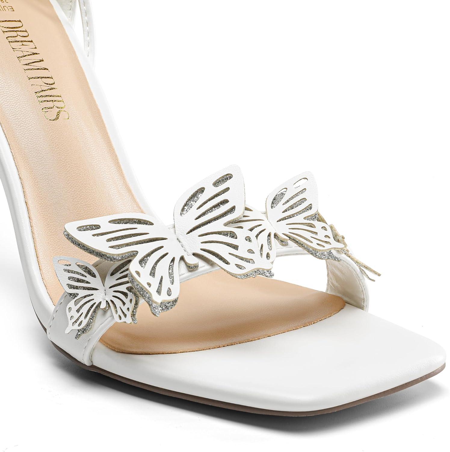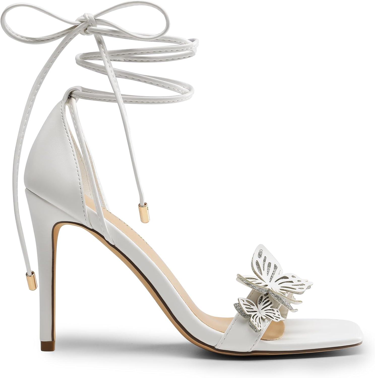 DREAM PAIRS Lace Up High Shoes Stilletos Sandals for Women Strappy Gladiator Open Square Toe Fashion Dressy Sandals Wedding Bridal Pumps Sandals Shoes(White-pu)