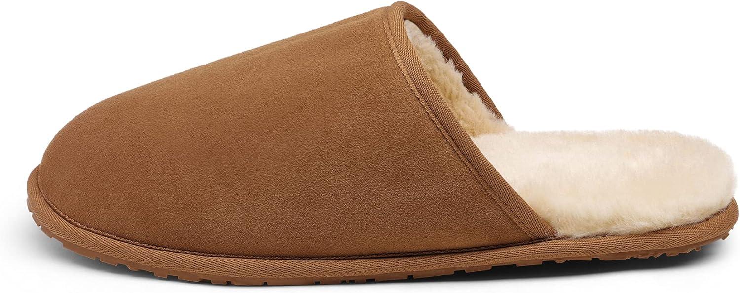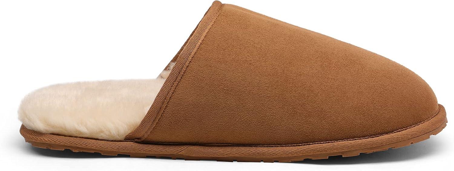 DREAM PAIRS Mens Avalon Scuff Slip on Fuzzy Faux Wool Lining Warm Indoor Outdoor House Slippers Tan?Size 11