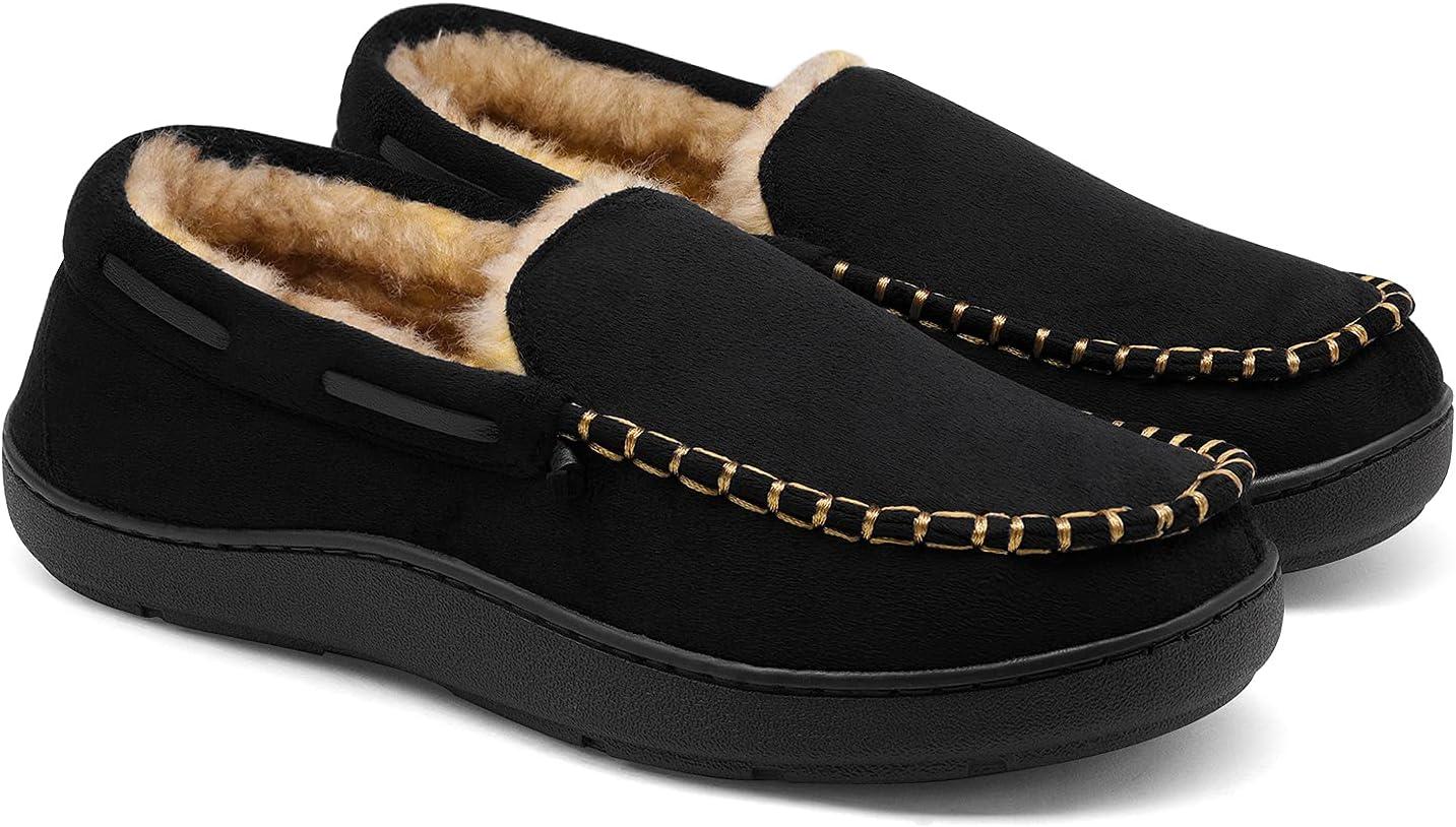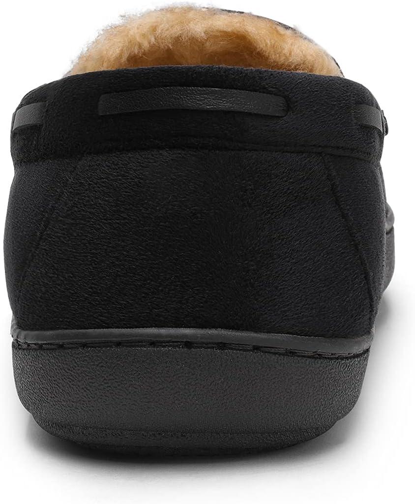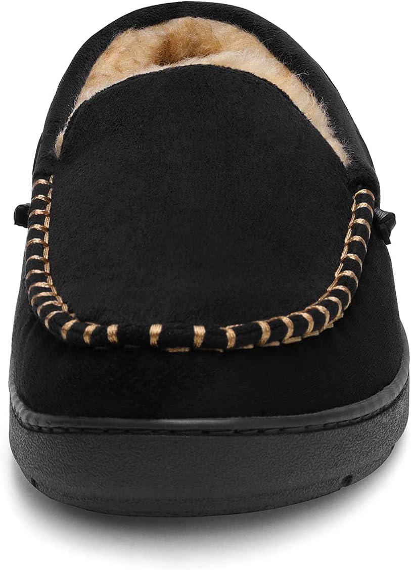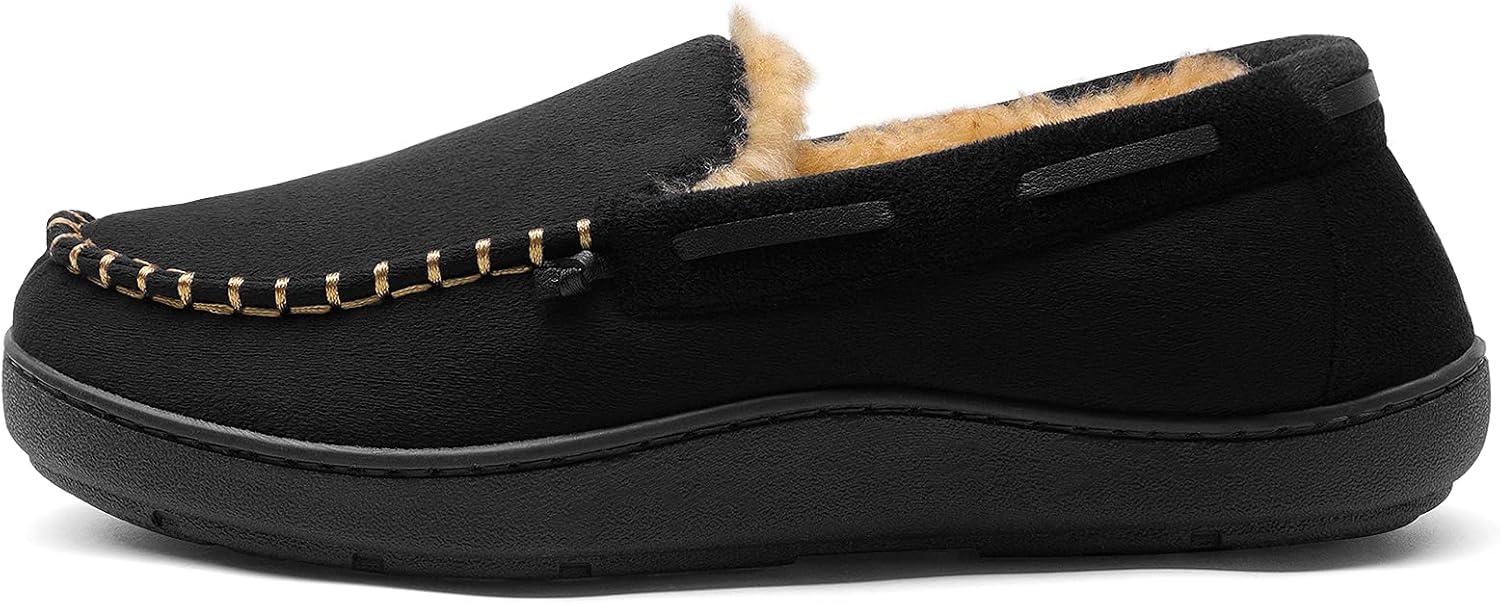 DREAM PAIRS Men’s Dsl2110m Fuzzy Microsuede Moccasin Slippers with Plush Lining House Shoes, Black, Size 11