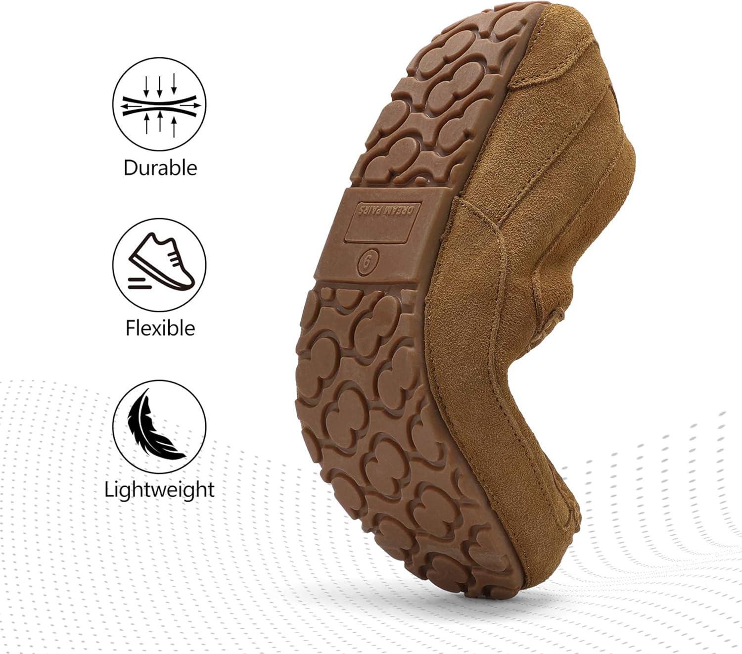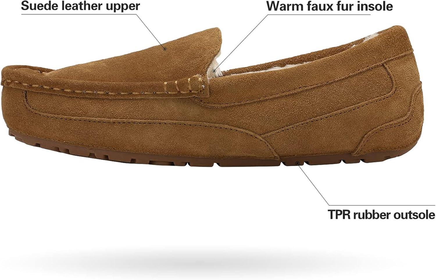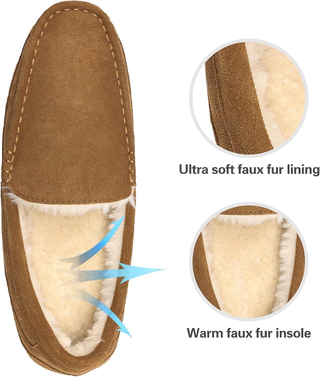 DREAM PAIRS Men’s House Slippers Moccasin Indoor Outdoor Fuzzy Furry Loafers Suede Leather Warm Comfortable Shoes(Tan)