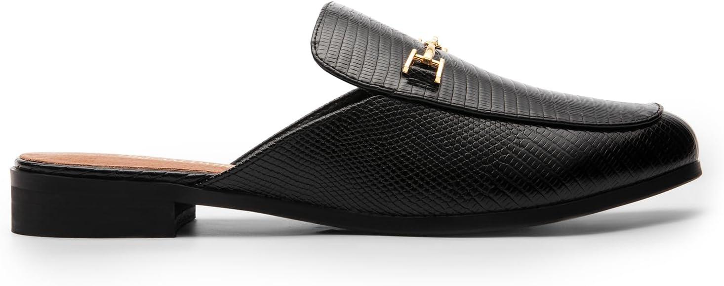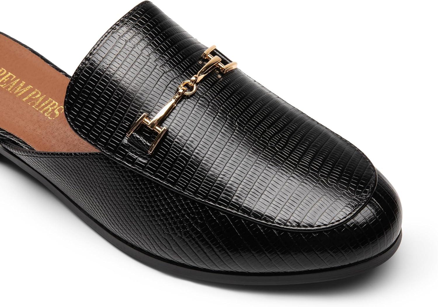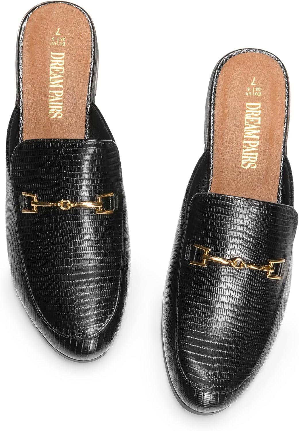 DREAM PAIRS Mules for Women Flats Comfortable Buckle Mules Slip on Slides Backless Loafers Shoes(Black-snake)