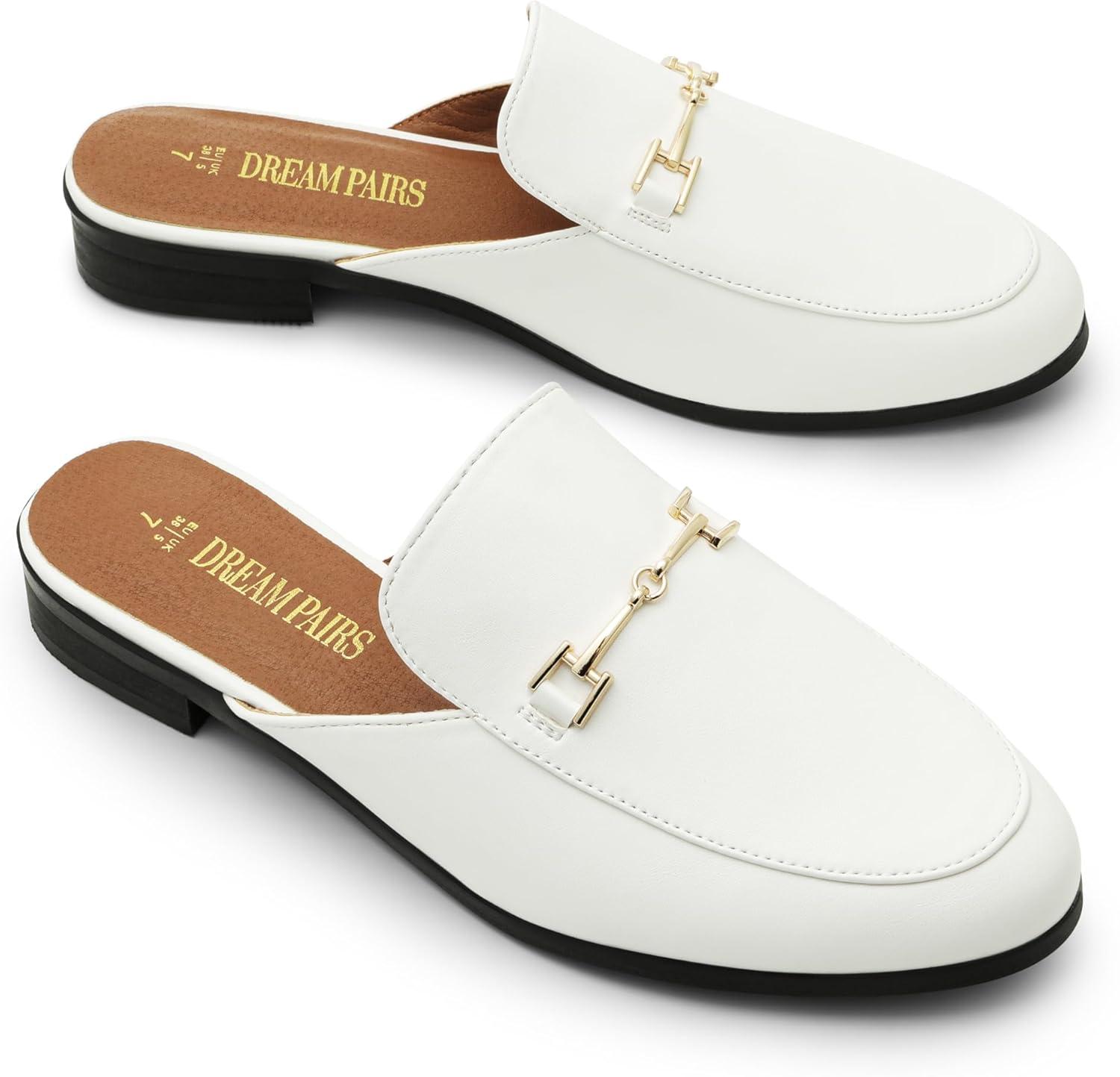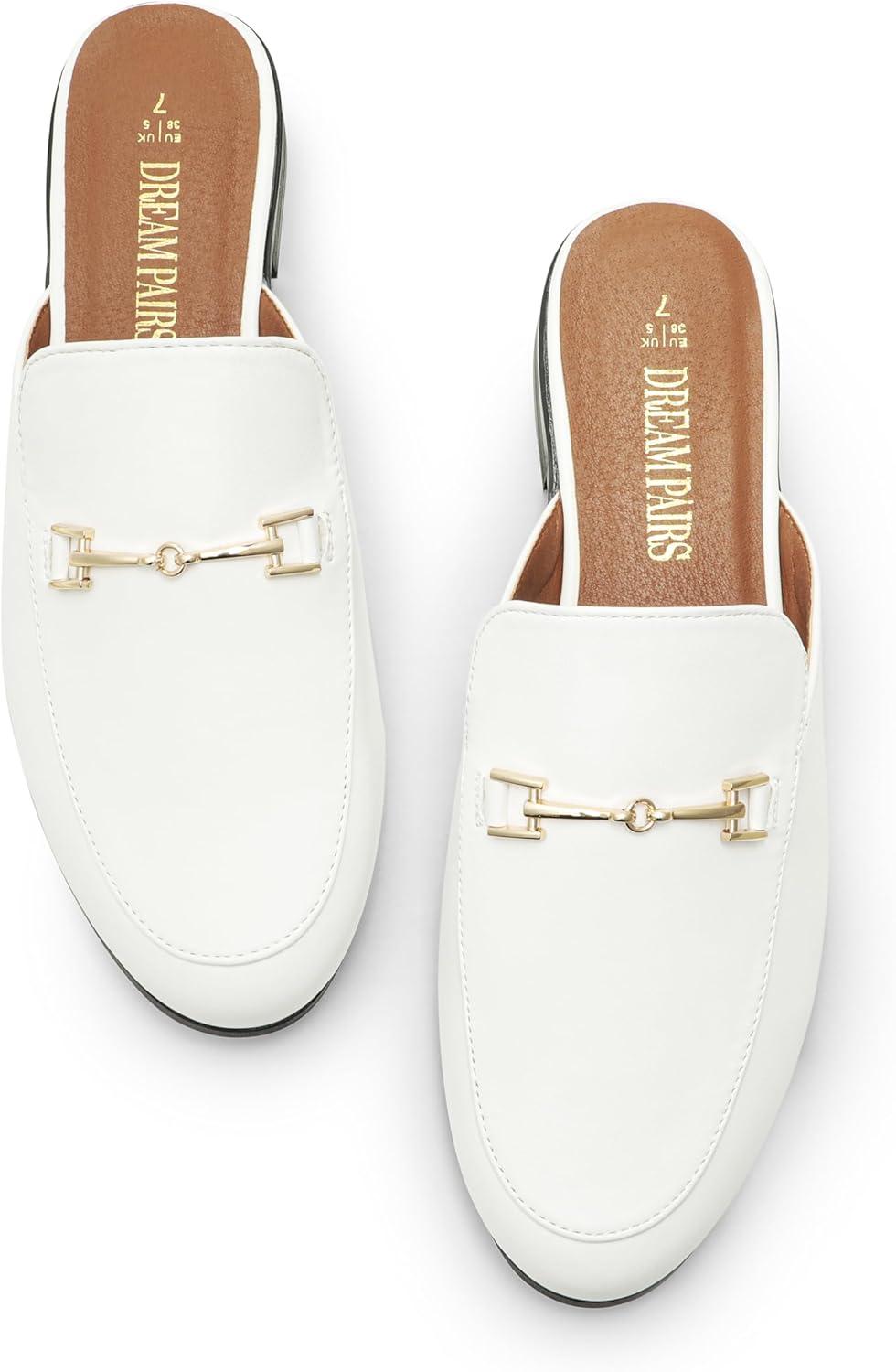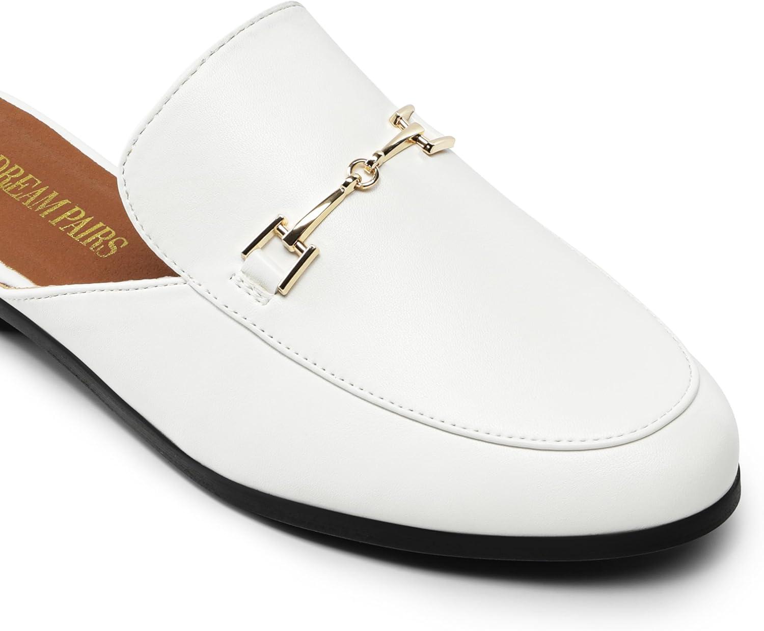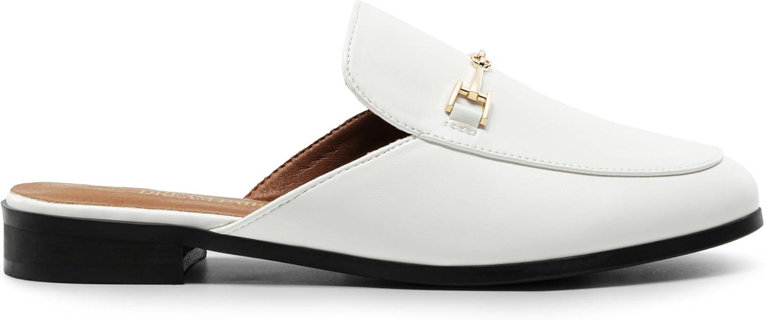 DREAM PAIRS Mules for Women Flats Comfortable Buckle Mules Slip on Slides Backless Loafers Shoes(White-pu)