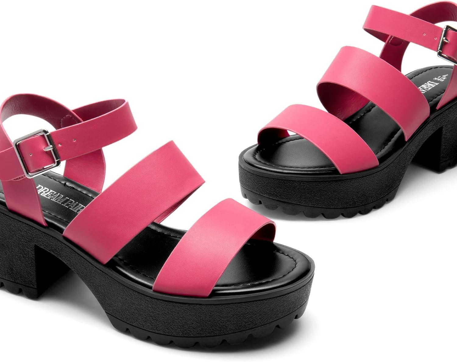 DREAM PAIRS Platform Heels for Women Lightweight Chunky Open Toe Stylish Comfortable Fisherman Sandals with Adjustable Ankle Strap(Hot Pink)