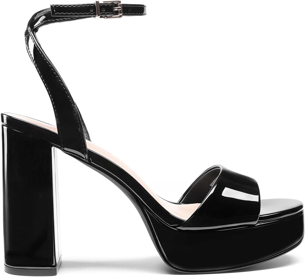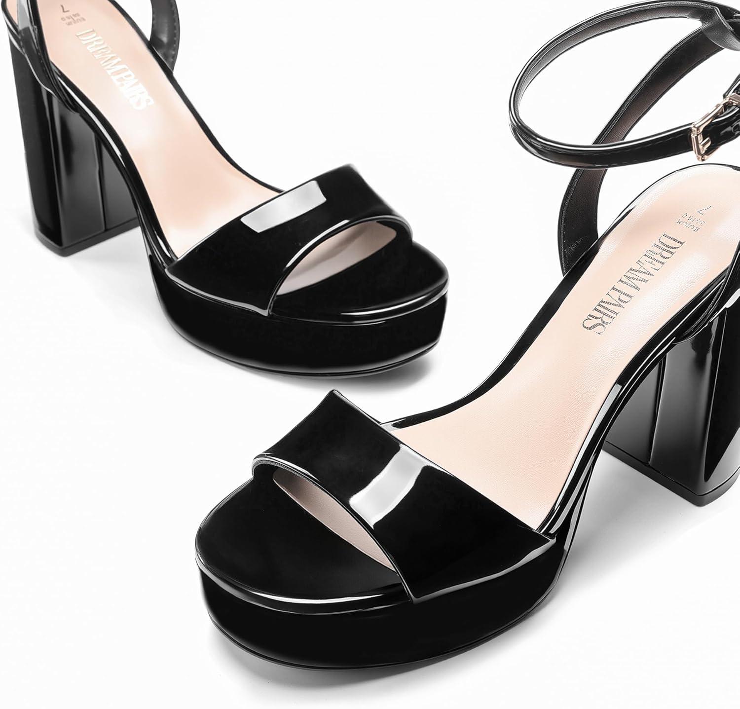 DREAM PAIRS Platform High Heels for Women Chunky Round Open Toe Ankle Strap Stylish Heeled Sandals for Party Prom Wedding(Black)
