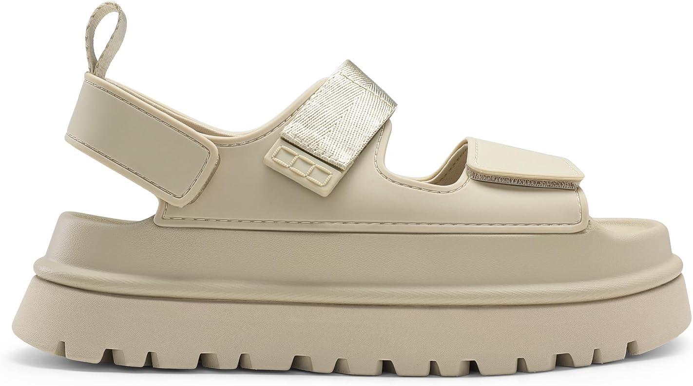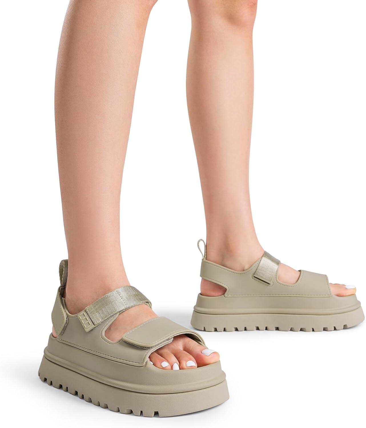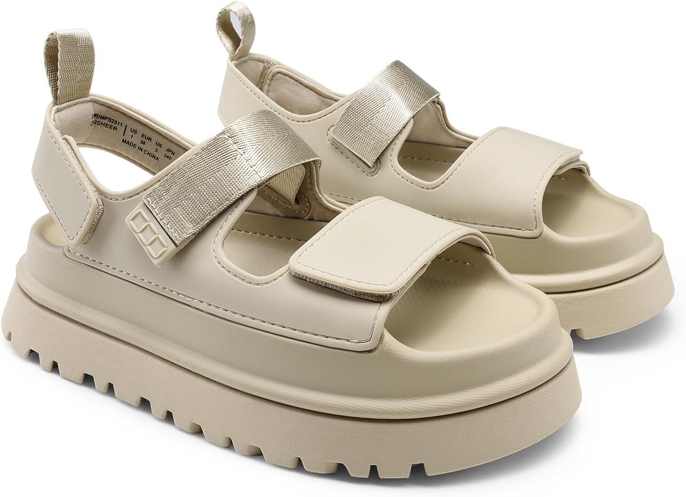 DREAM PAIRS Platform Sandals for Women Chunky Open Toe Dress Walking Comfortable Flat Sandals for Summer(Beige)