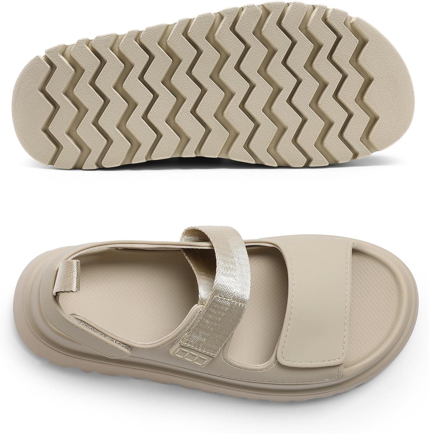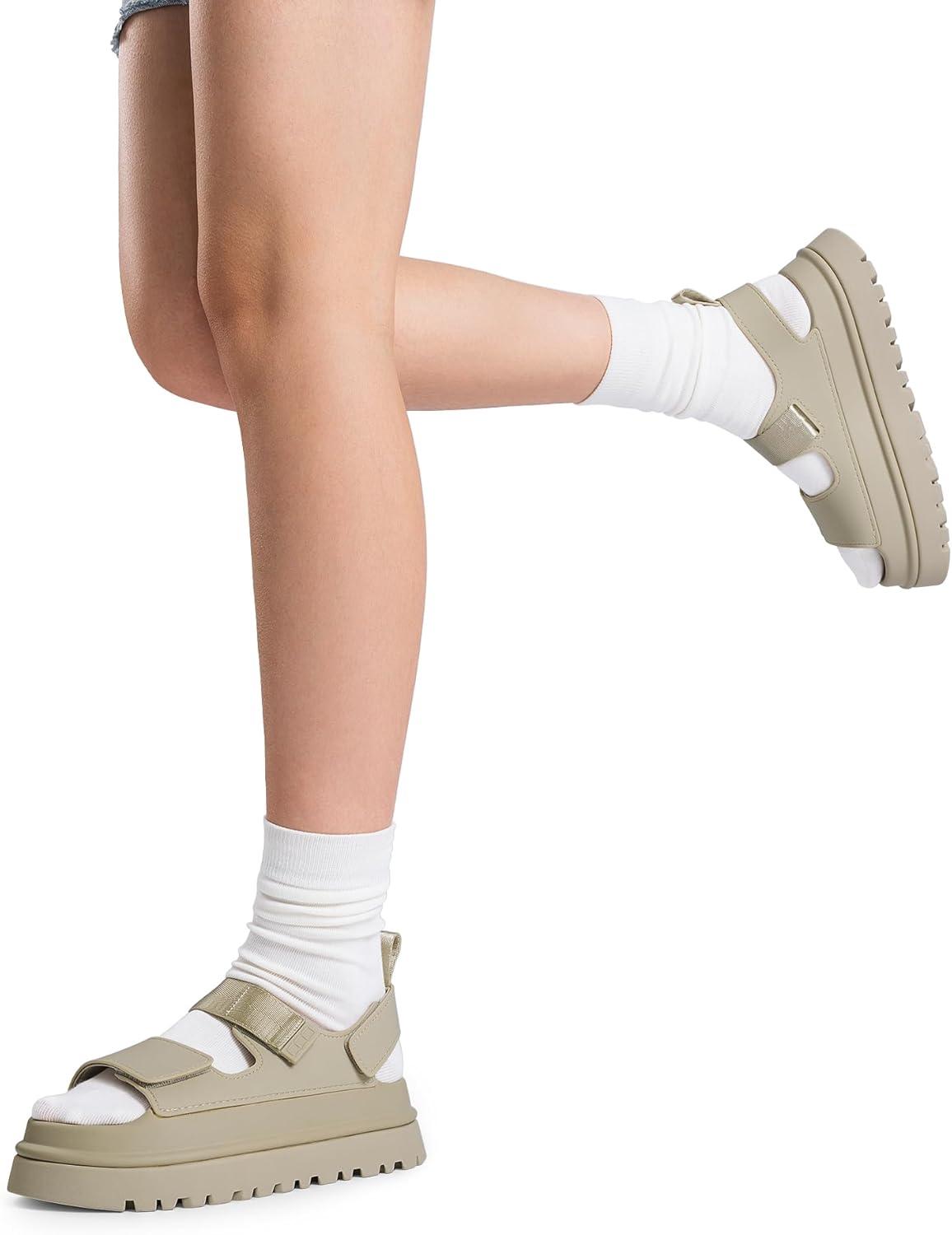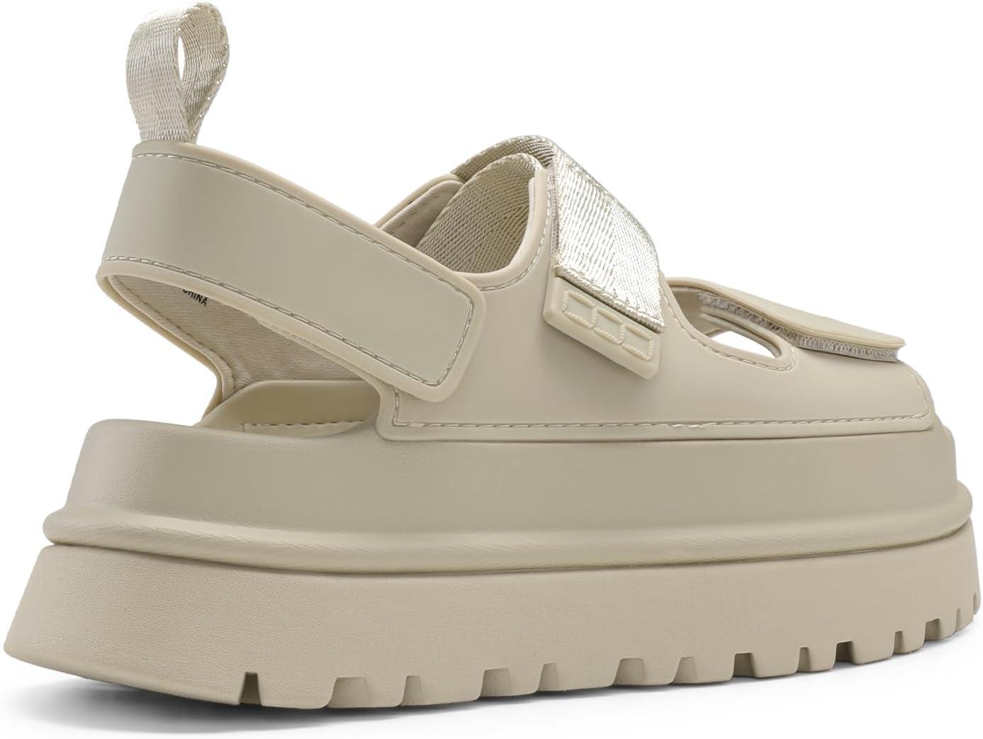 DREAM PAIRS Platform Sandals for Women Chunky Open Toe Dress Walking Comfortable Flat Sandals for Summer(Beige)