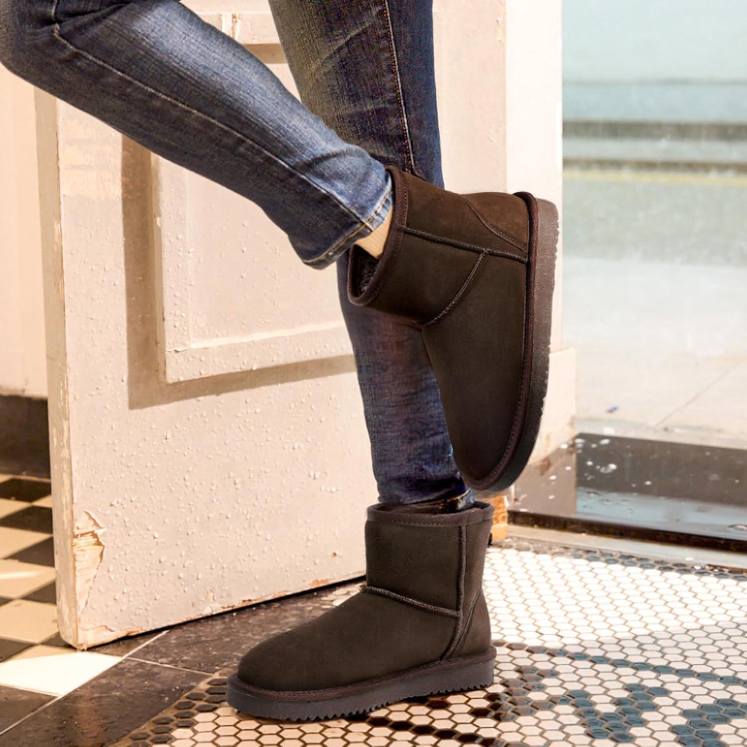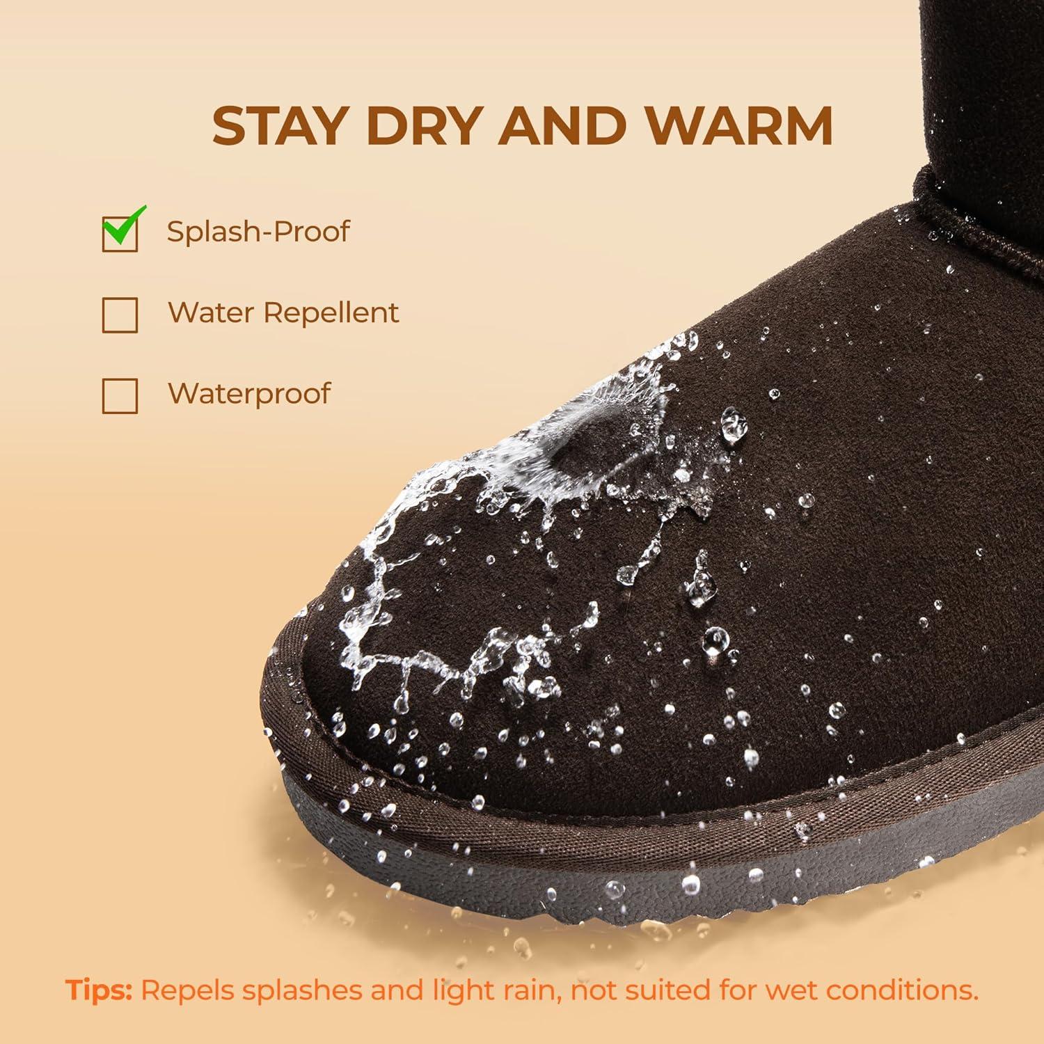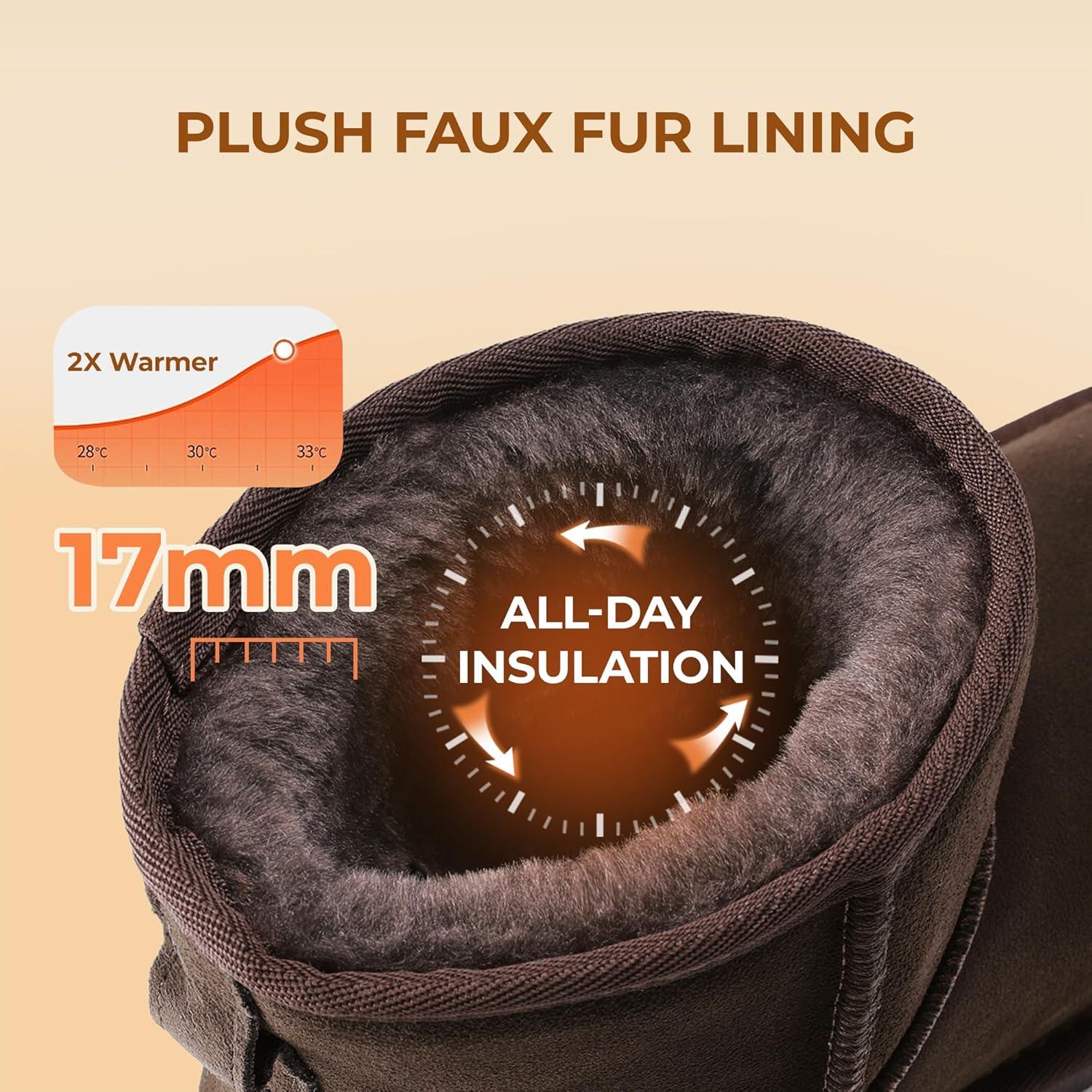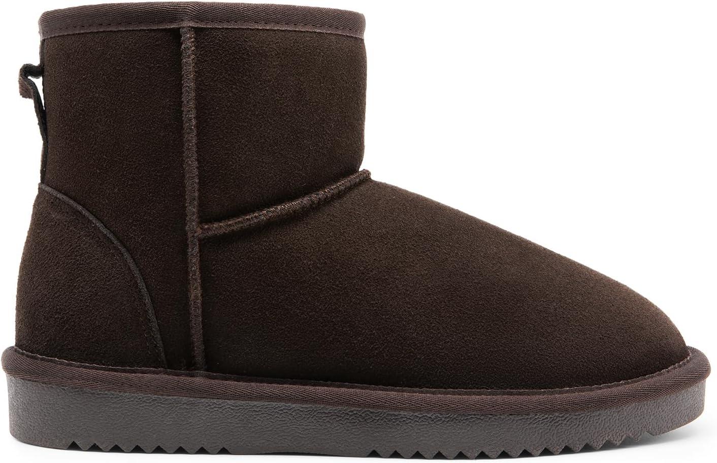 DREAM PAIRS Snow Boots for Women Genuine Suede Faux Fur Lining Anti-Slip Warm Winter Booties Slip On Memory Foam Ankle Boots FuzzyClassicⅡ Low Boots(Brown)