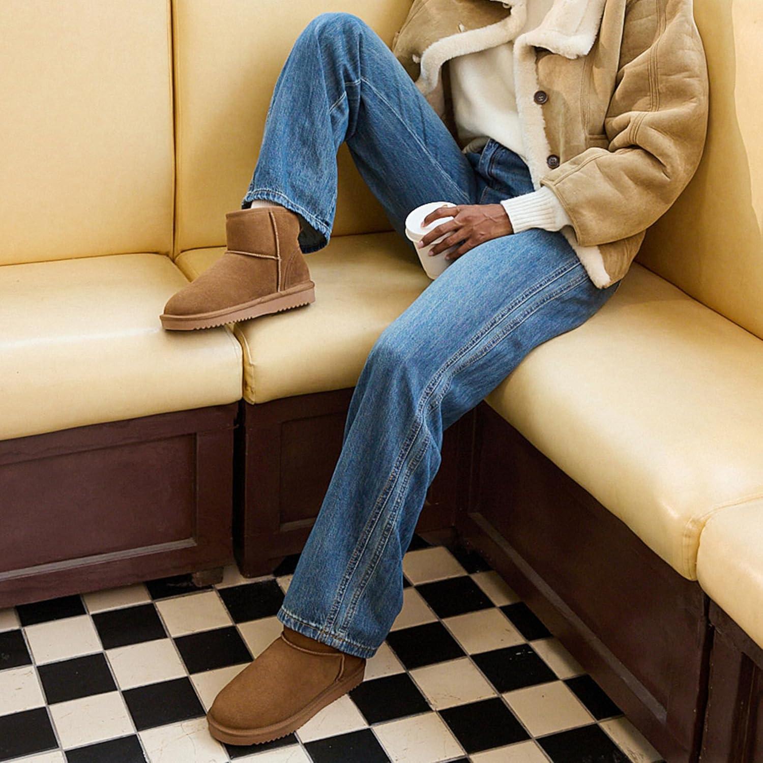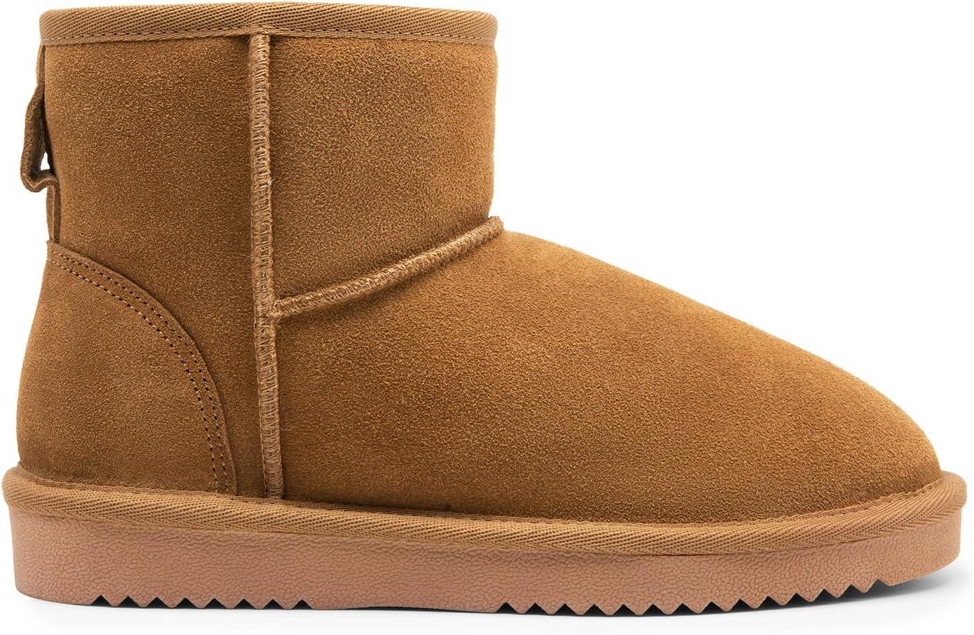 DREAM PAIRS Snow Boots for Women Genuine Suede Faux Fur Lining Anti-Slip Warm Winter Booties Slip On Memory Foam Ankle Boots FuzzyClassicⅡ Low Boots(Chestnut)