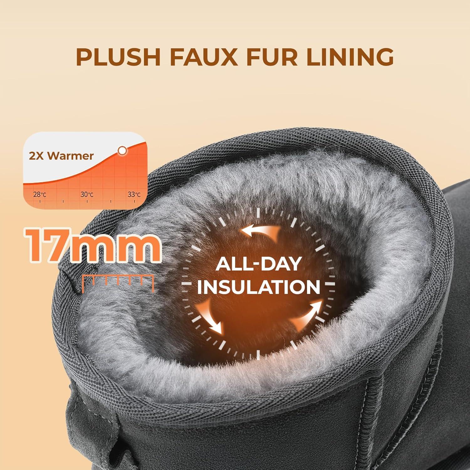 DREAM PAIRS Snow Boots for Women Genuine Suede Faux Fur Lining Anti-Slip Warm Winter Booties Slip On Memory Foam Ankle Boots FuzzyClassicⅡ Low Boots(Grey)
