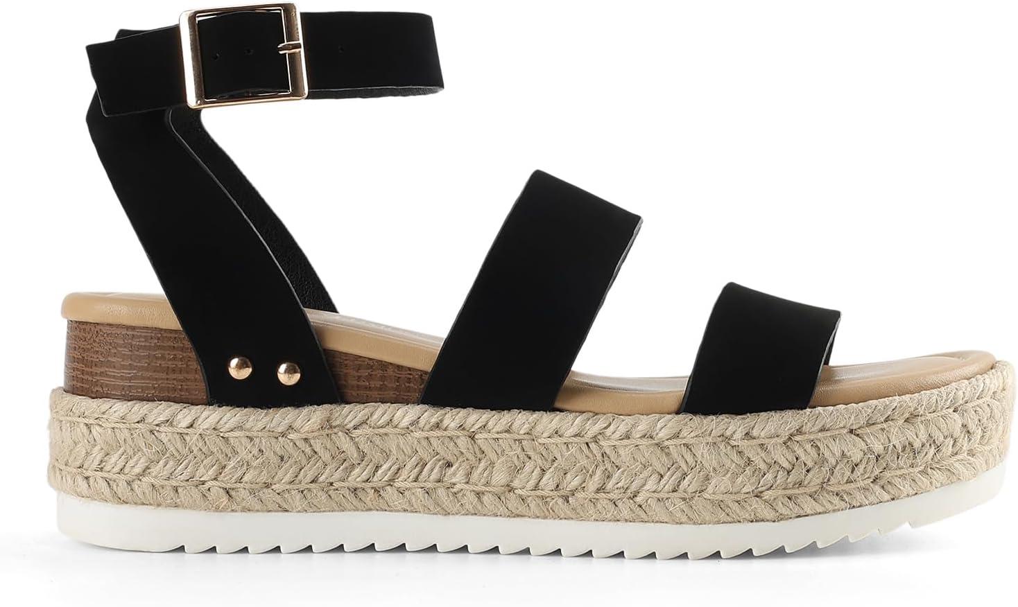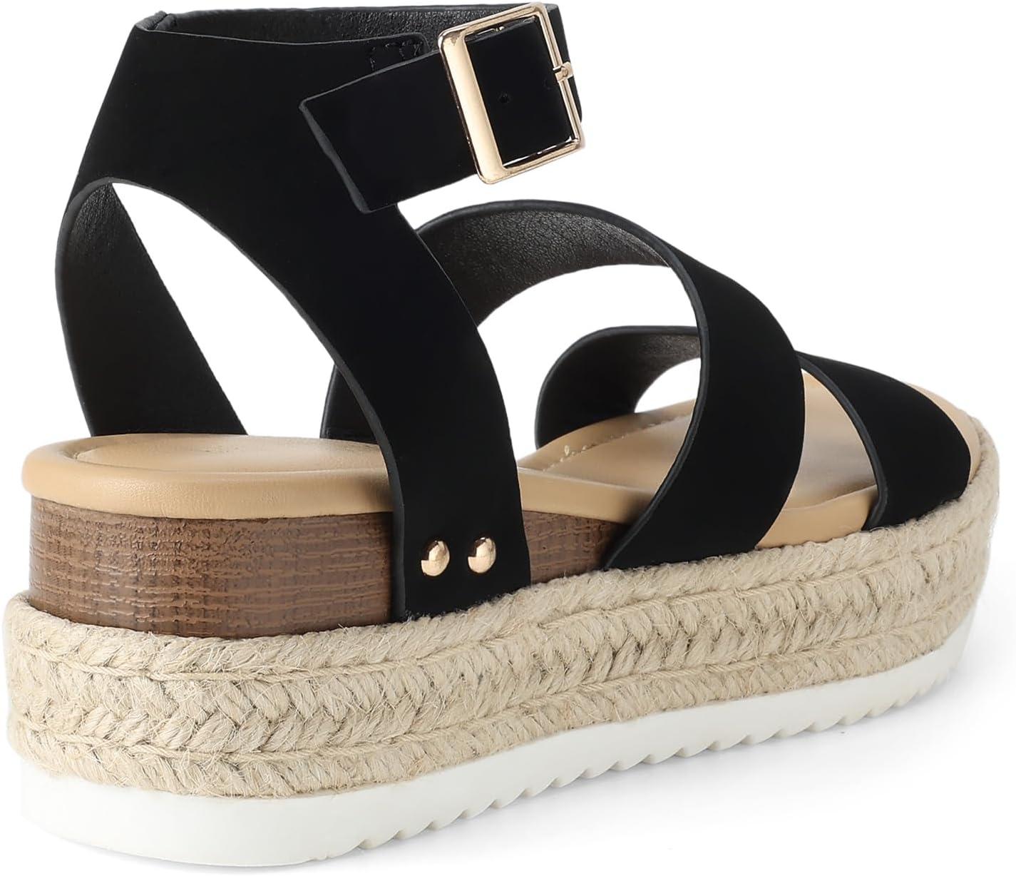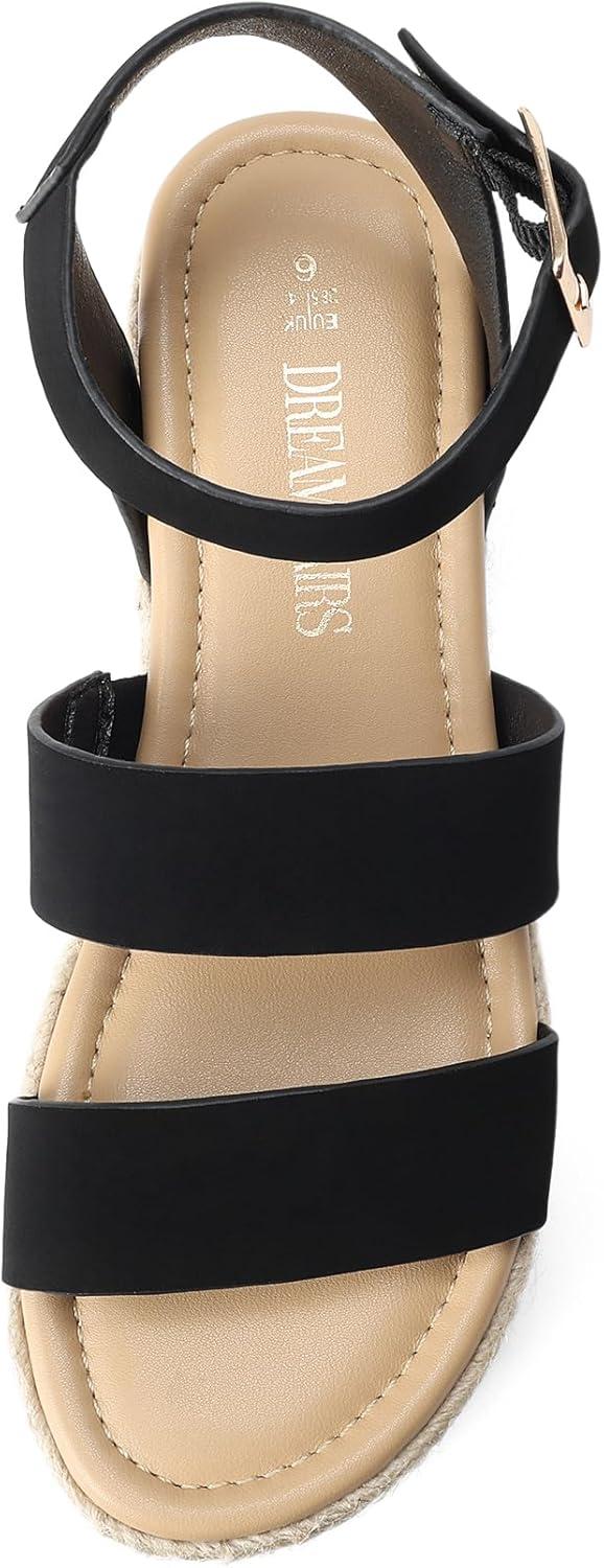 DREAM PAIRS Strappy Espadrille Platform Wedge Sandals for Women Dressy Summer, Comfortable Open Toe Sandals with Cushioned Insole and Ankle Strap Buckle(Black Nubuck)