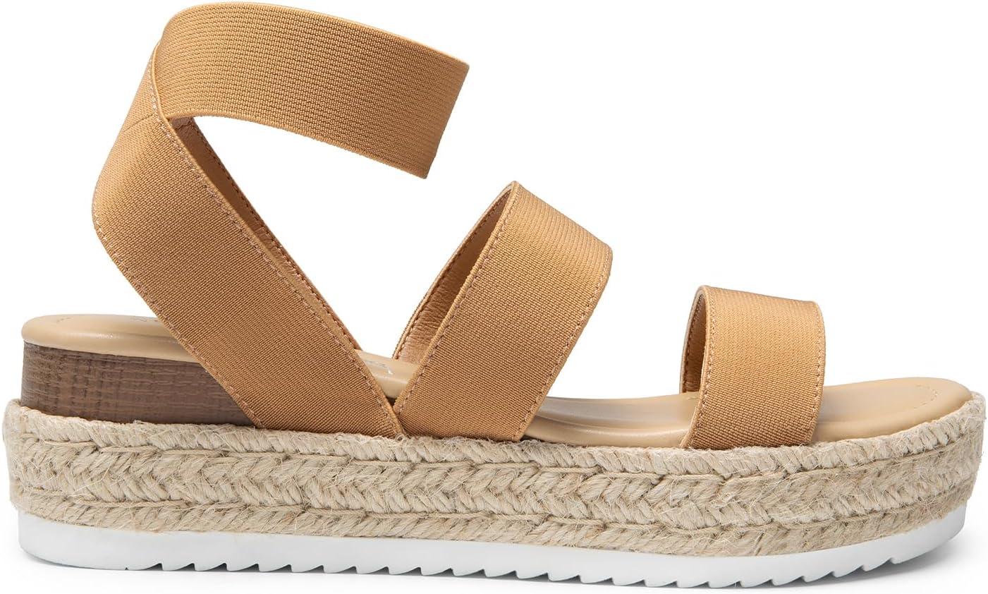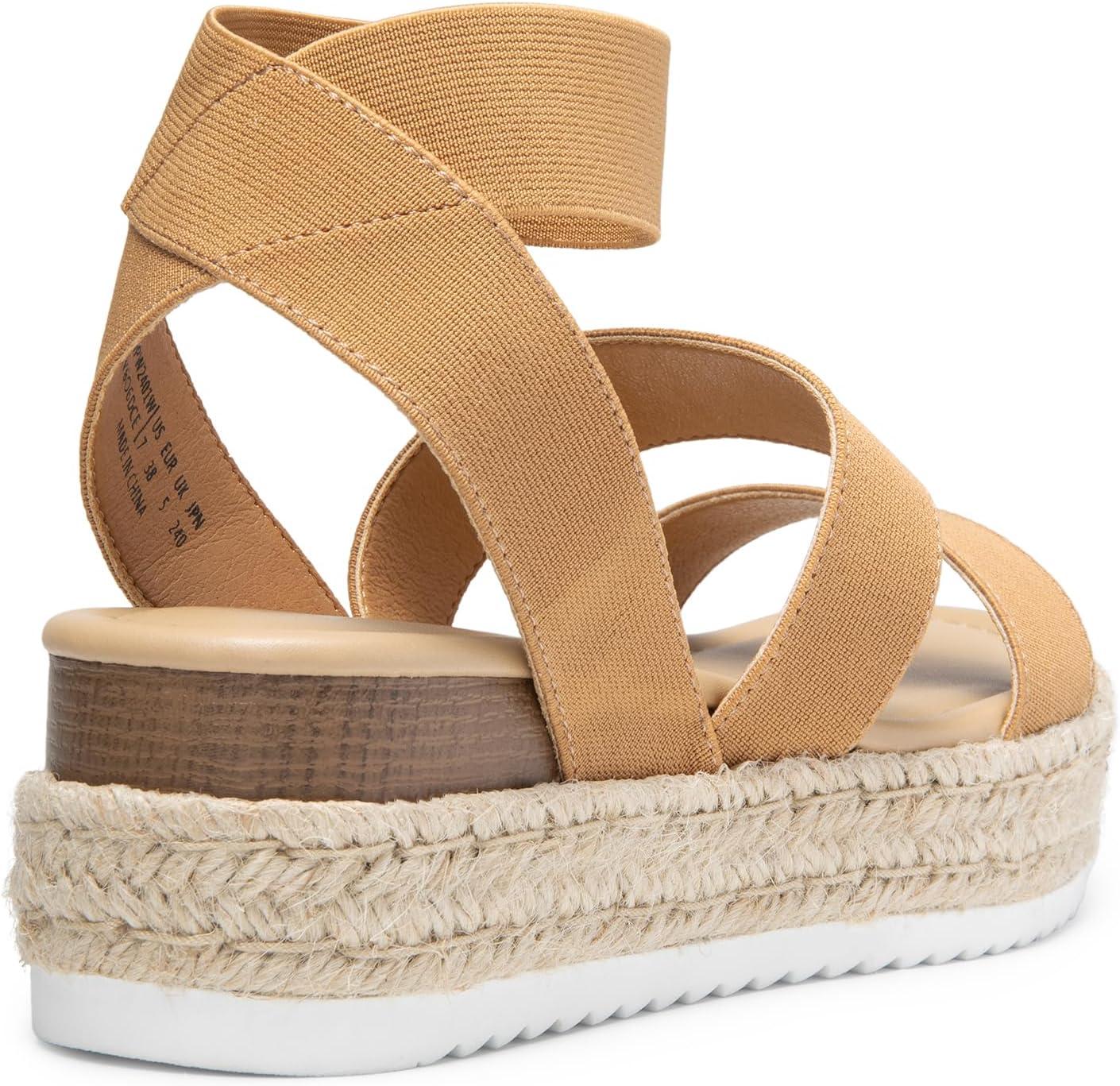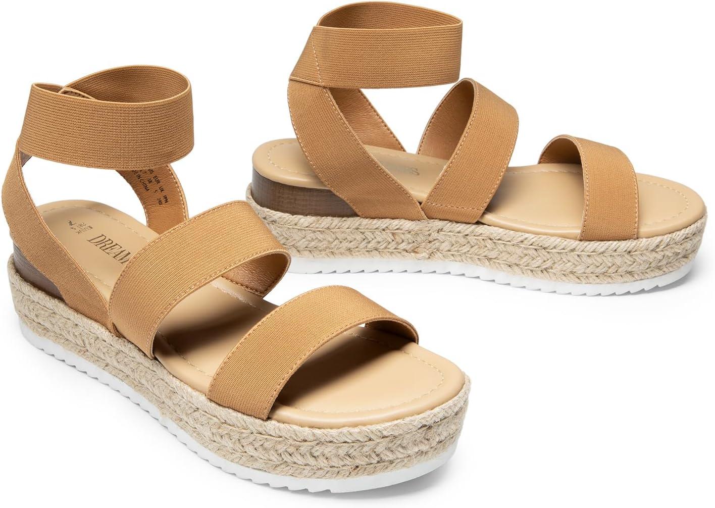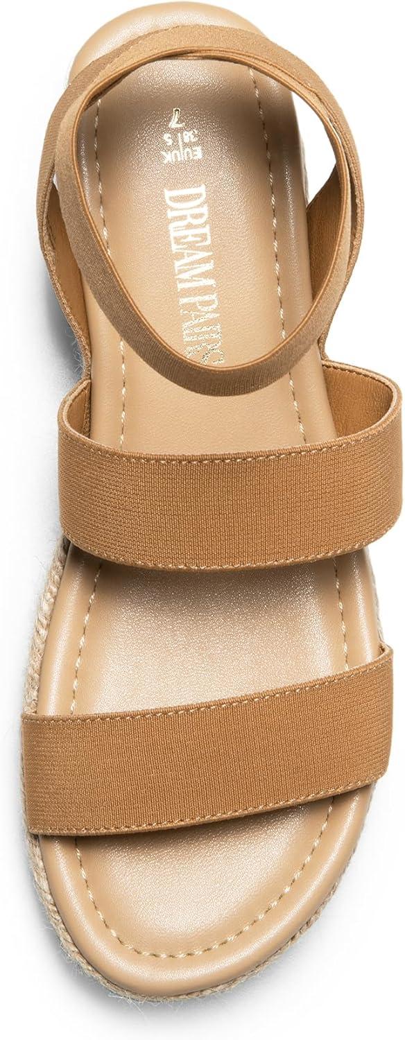 DREAM PAIRS Strappy Espadrille Platform Wedge Sandals for Women Dressy Summer, Comfortable Open Toe Sandals with Cushioned Insole and Ankle Strap Buckle(Camel)