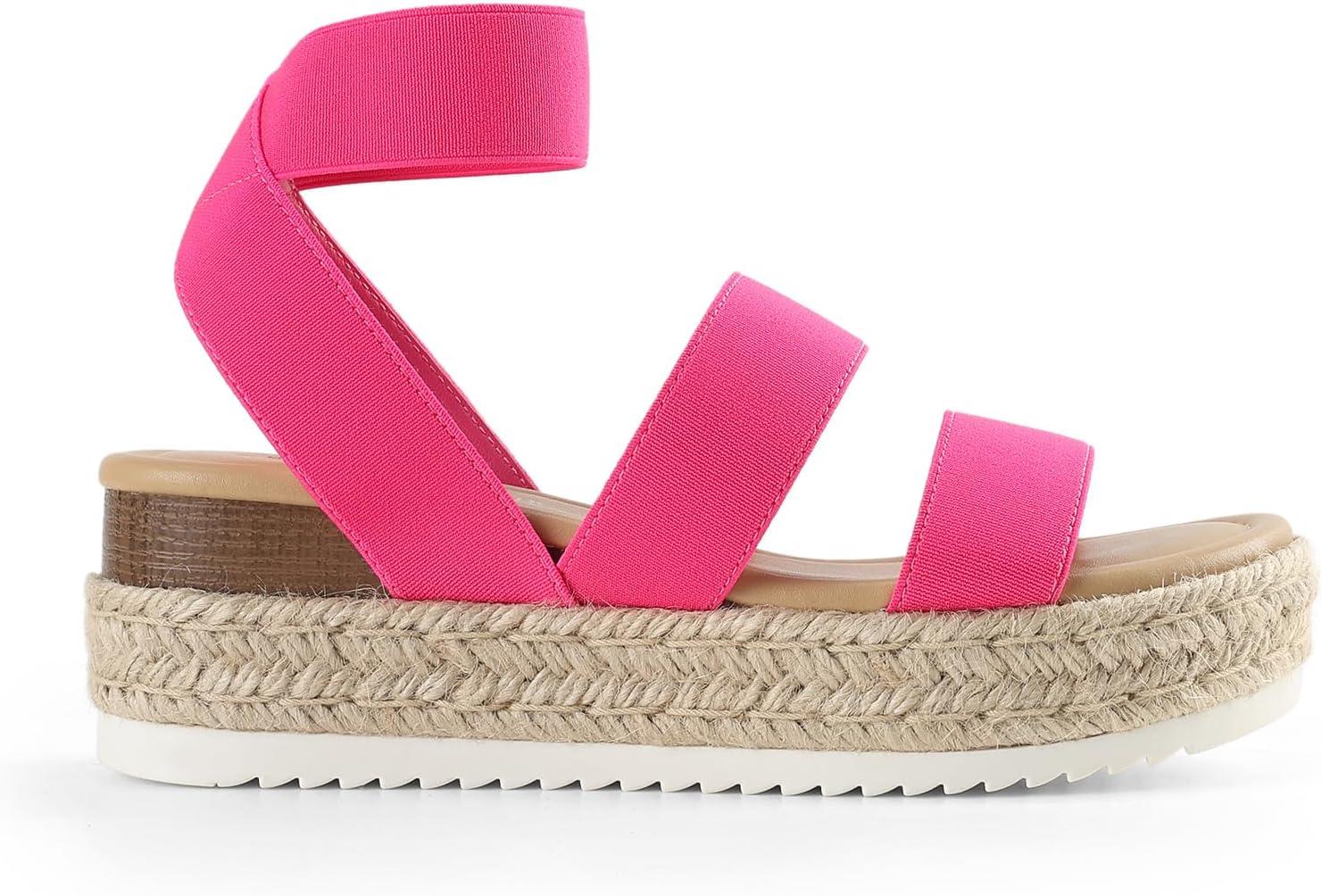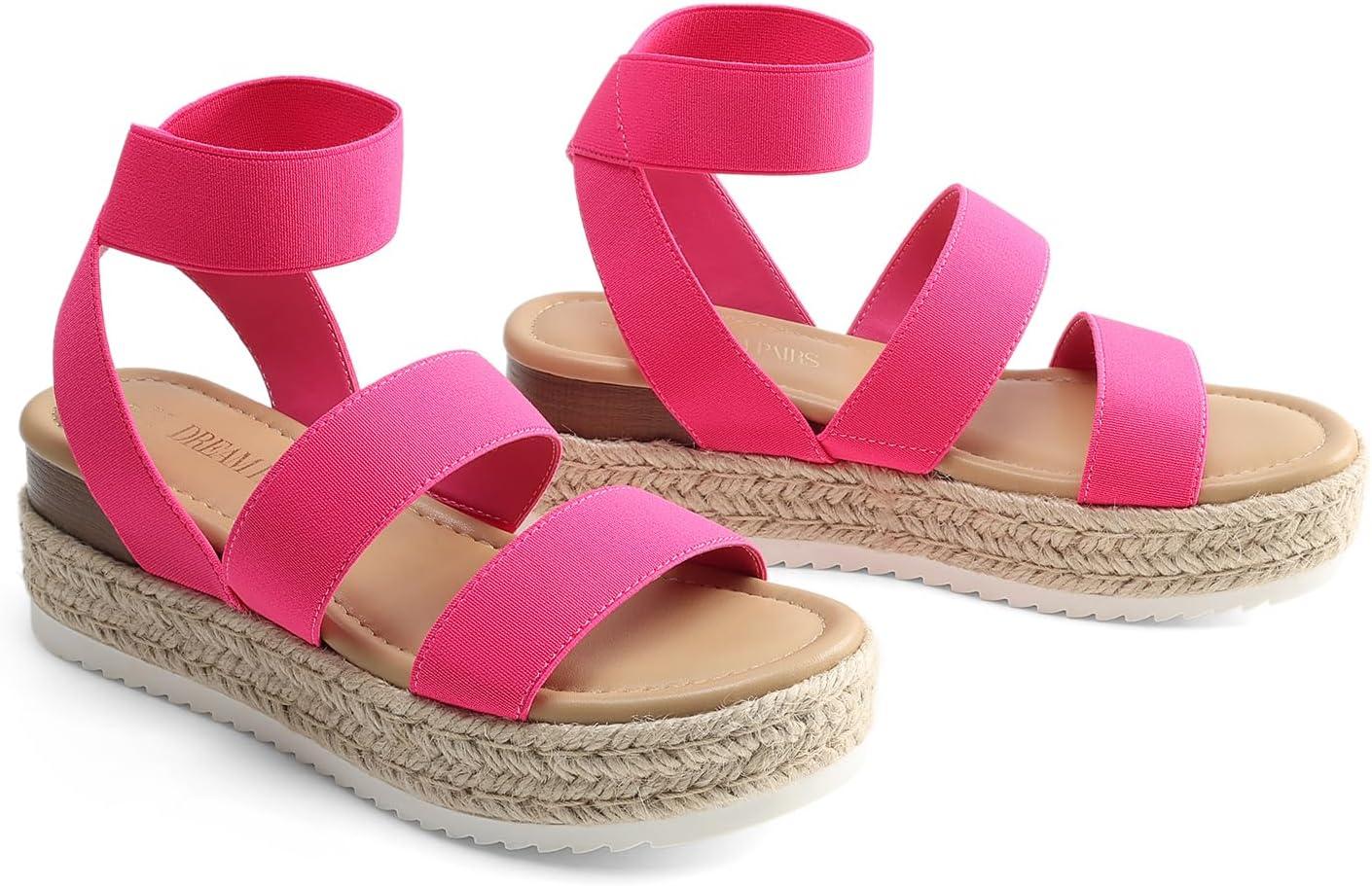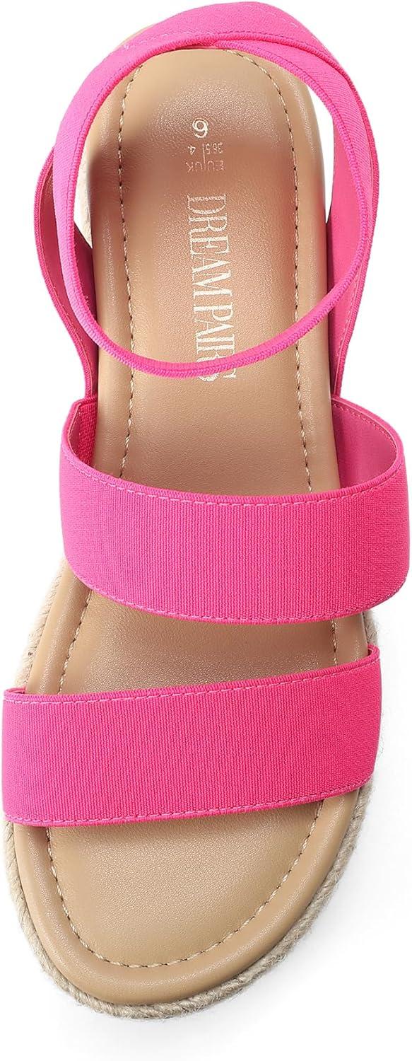 DREAM PAIRS Strappy Espadrille Platform Wedge Sandals for Women Dressy Summer, Comfortable Open Toe Sandals with Cushioned Insole and Ankle Strap Buckle(Hot Pink Elastic)