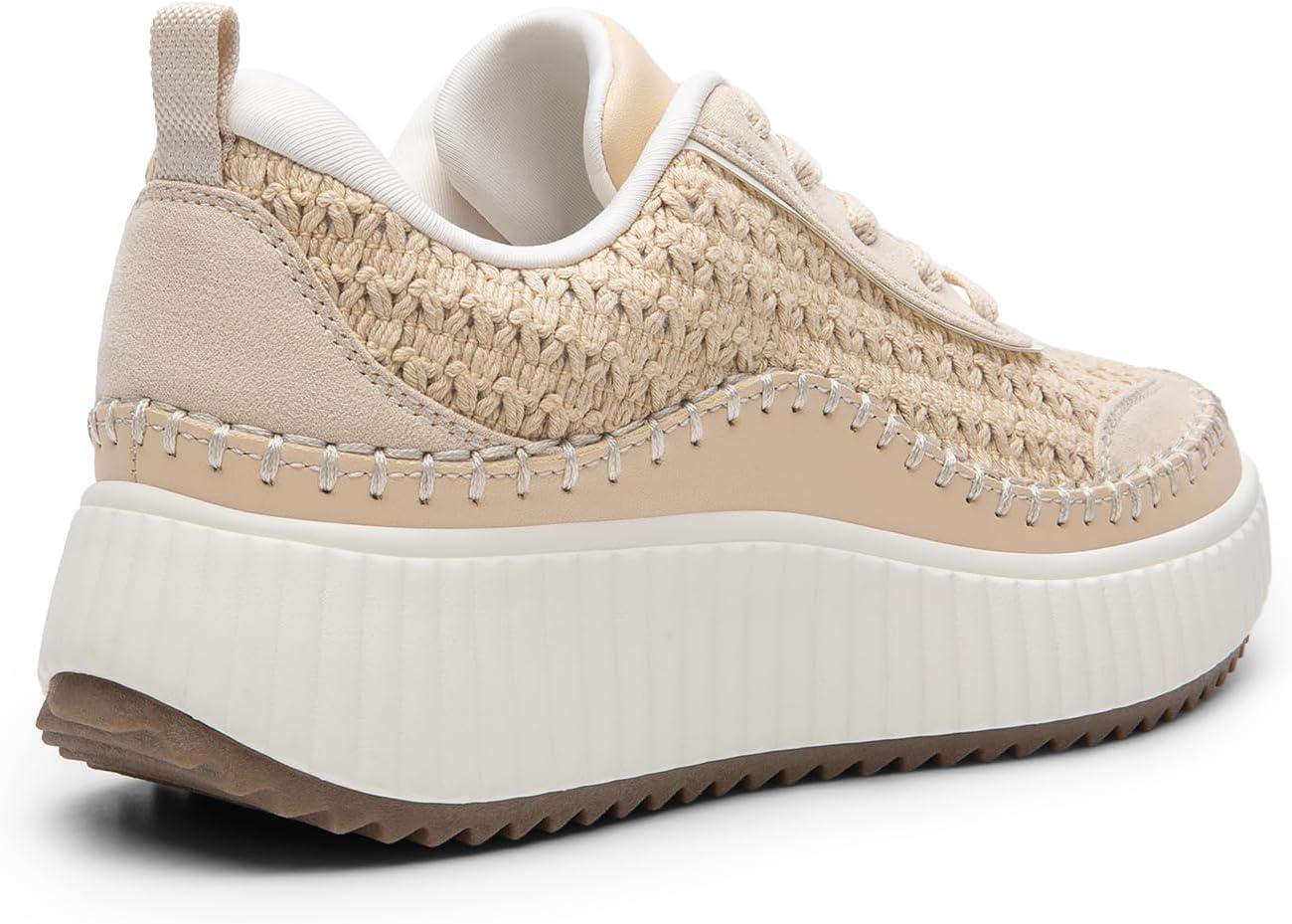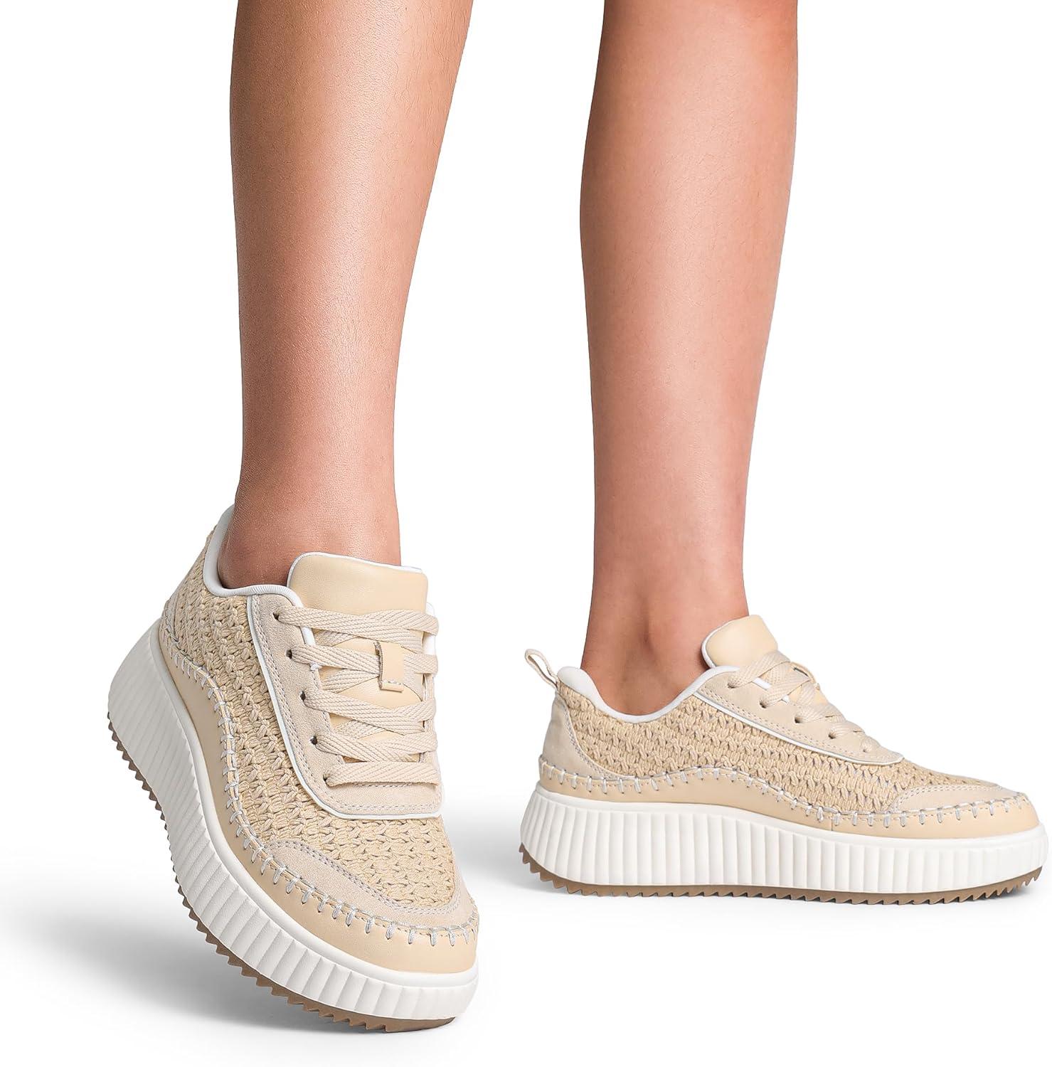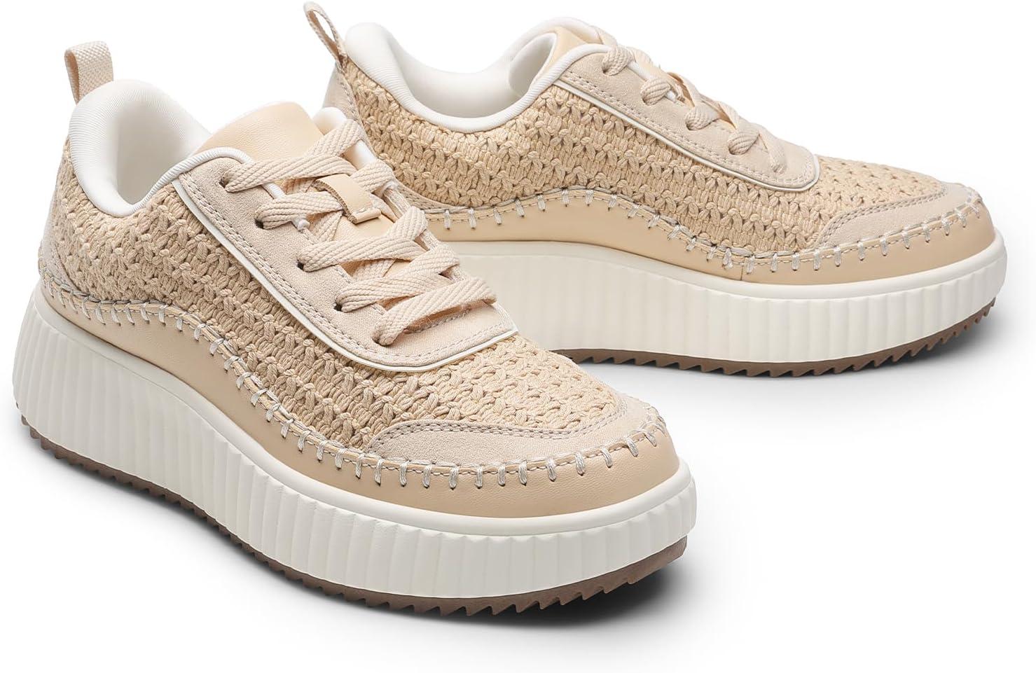 DREAM PAIRS Women Chunky City Tweed Comfortable Casual Platform Fashion Sneaker(Apricot-knit)