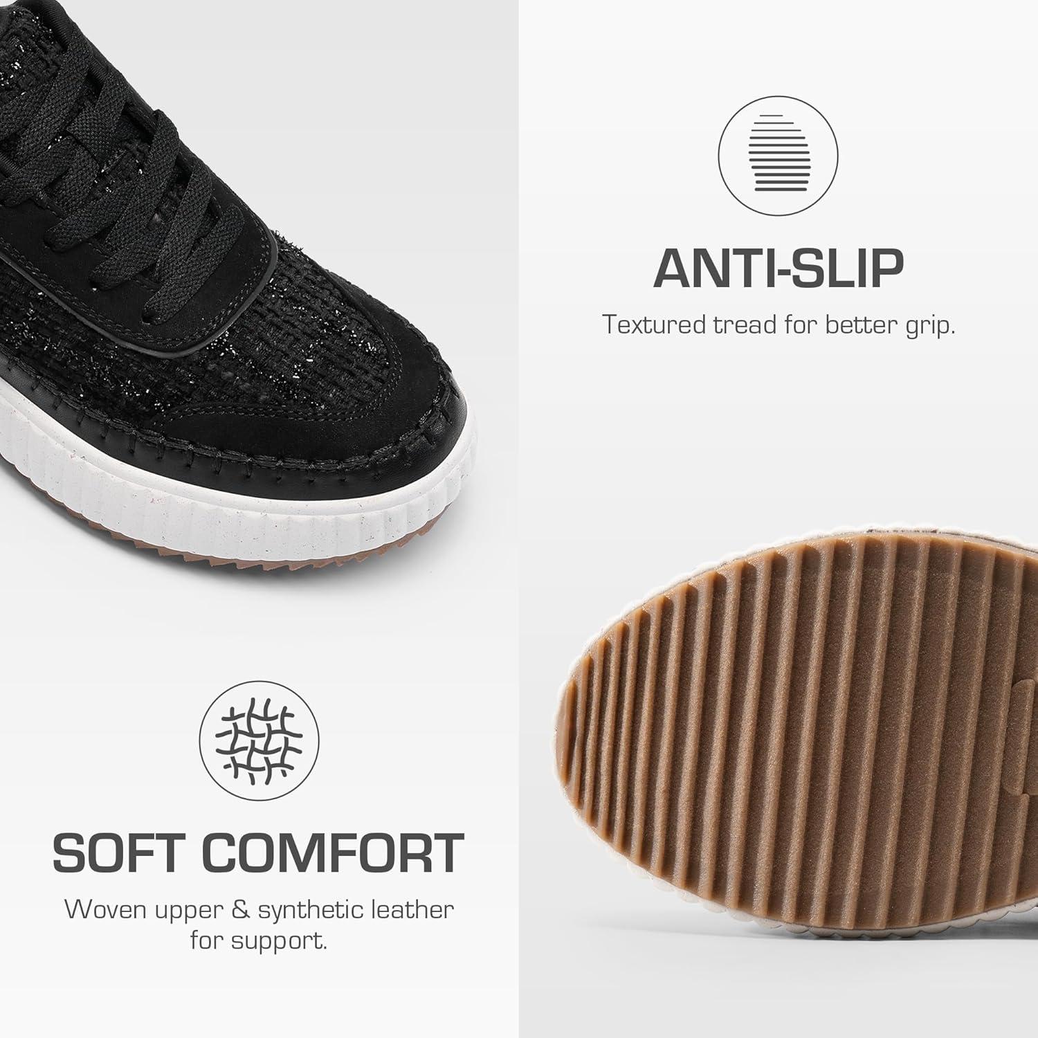 DREAM PAIRS Women Chunky City Tweed Comfortable Casual Platform Fashion Sneaker(Black-arch)