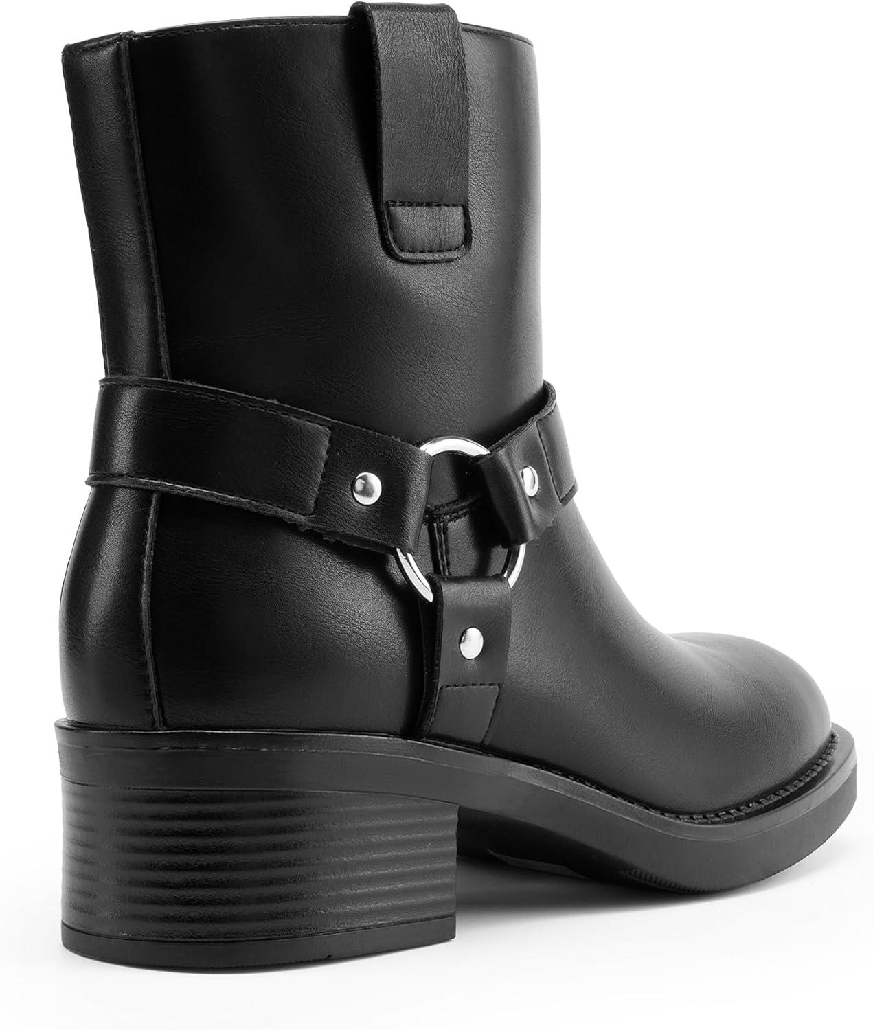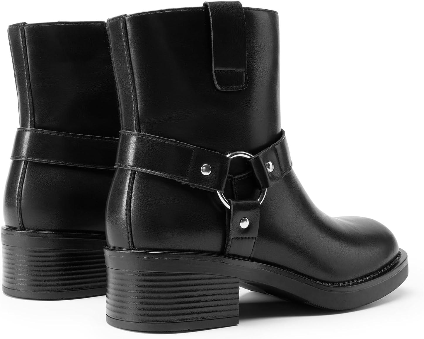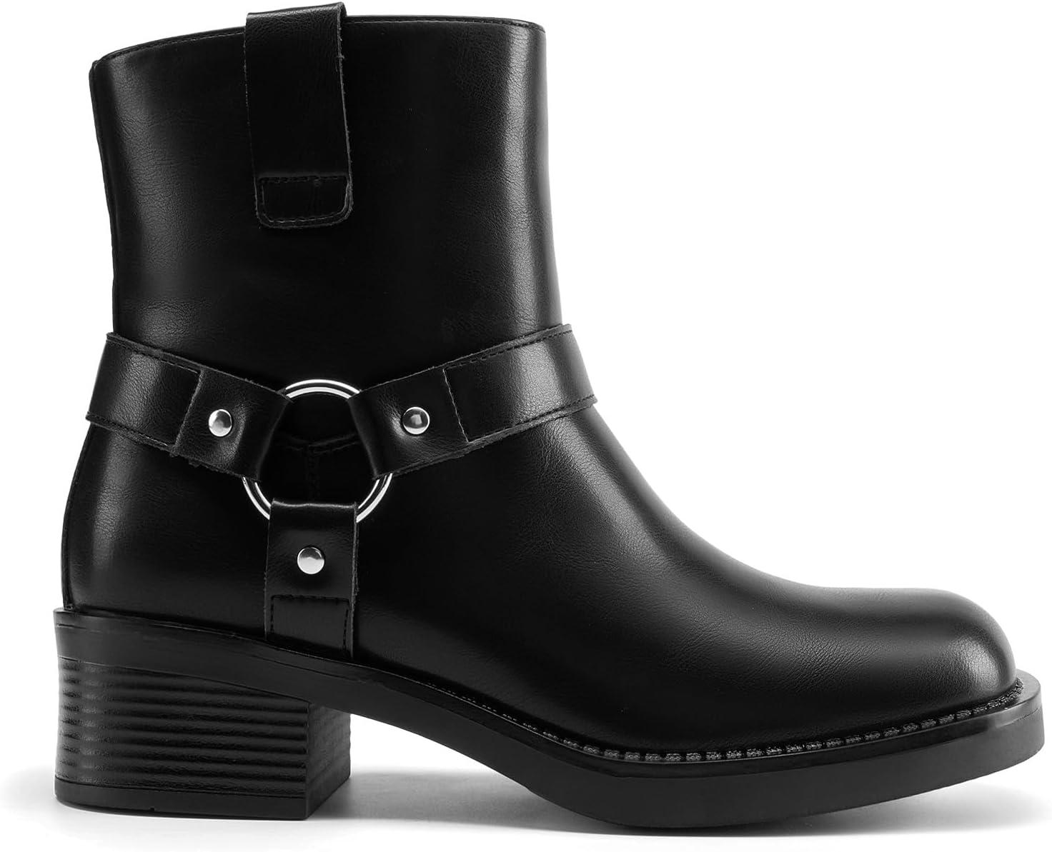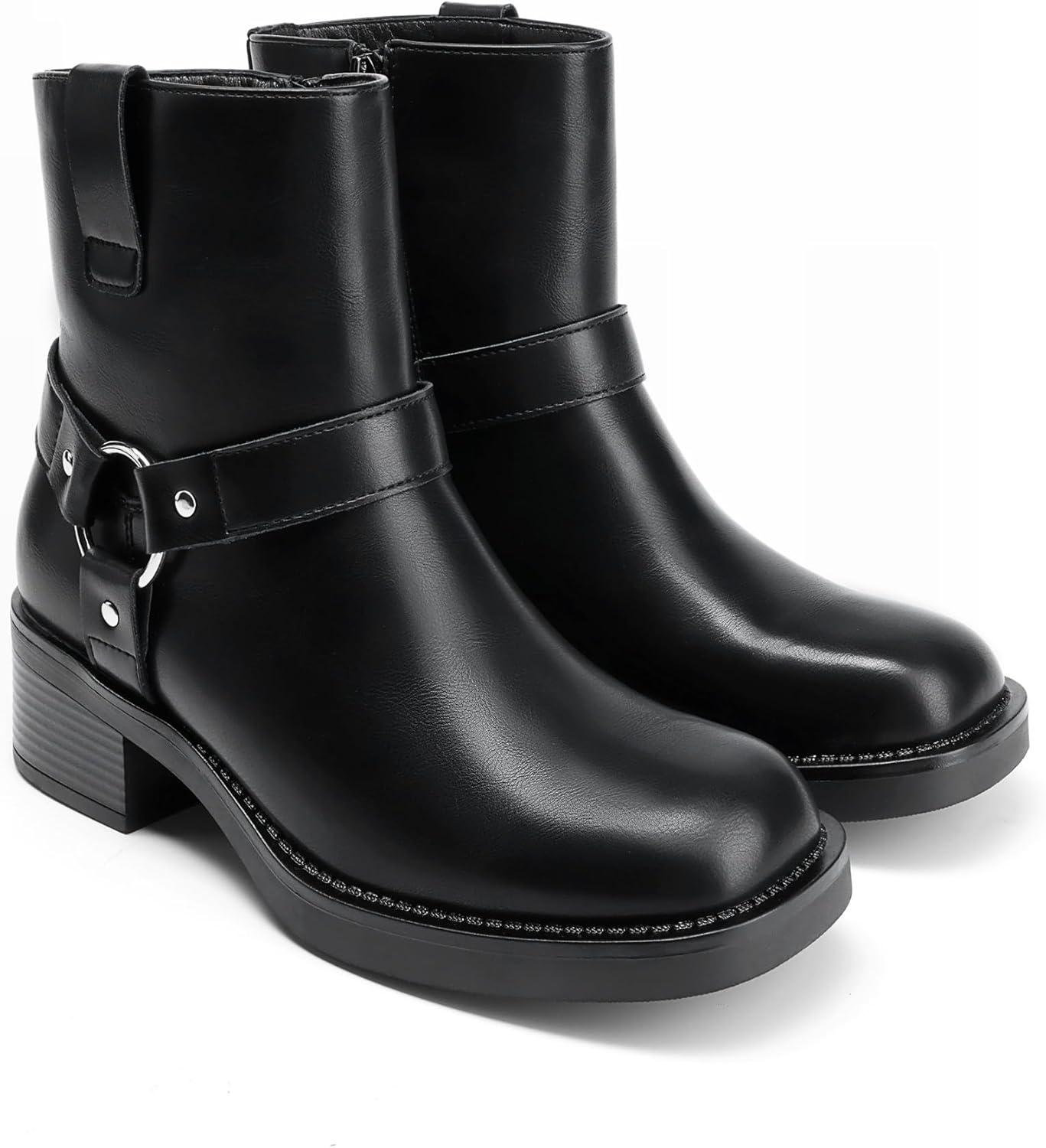 DREAM PAIRS Women’s Ankle Booties Side Zipper Motorcycle Boots Square Toe Chunky Low Heel Fashion Buckles Biker Riding Boots(Black)