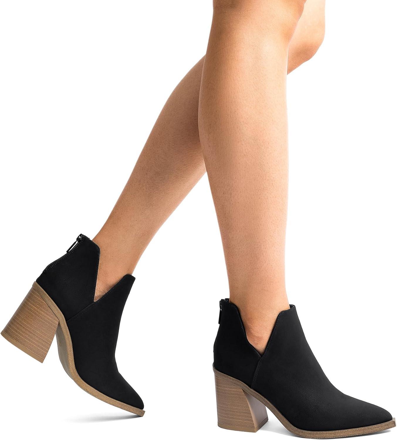 DREAM PAIRS Women’s Ankle Boots Chunky Heel Pointed Toe Short Booties Shoes(Black-nubuck)