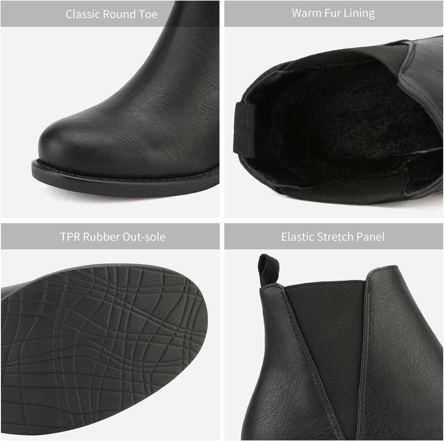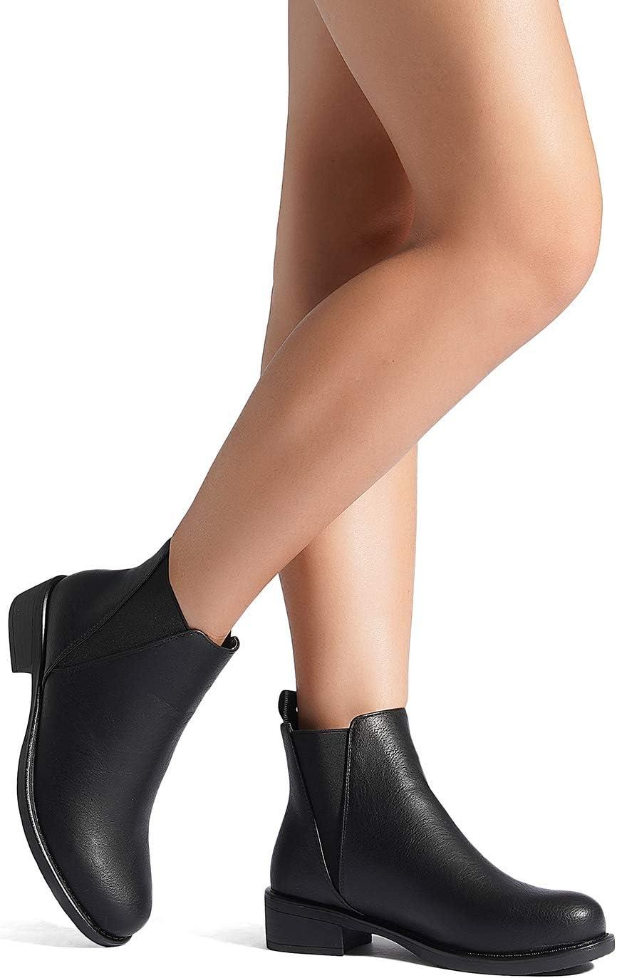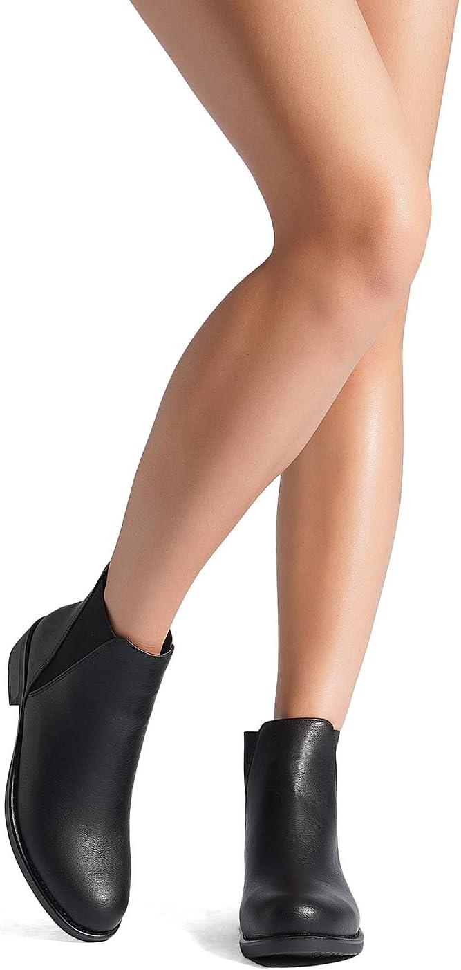 DREAM PAIRS Women’s Ankle Boots Chunky Low Heel Chelsea Booties Slip On Elastic Fall Short Boots(Black/Pu)