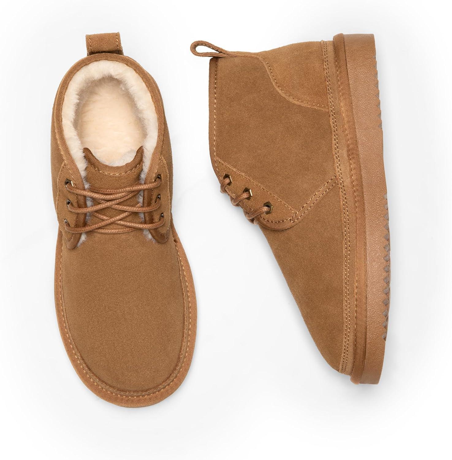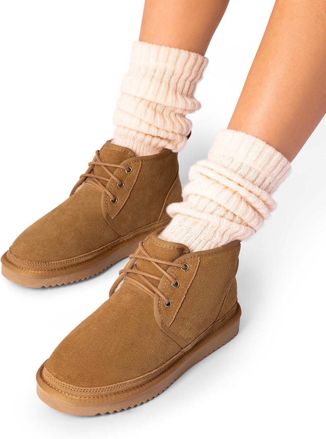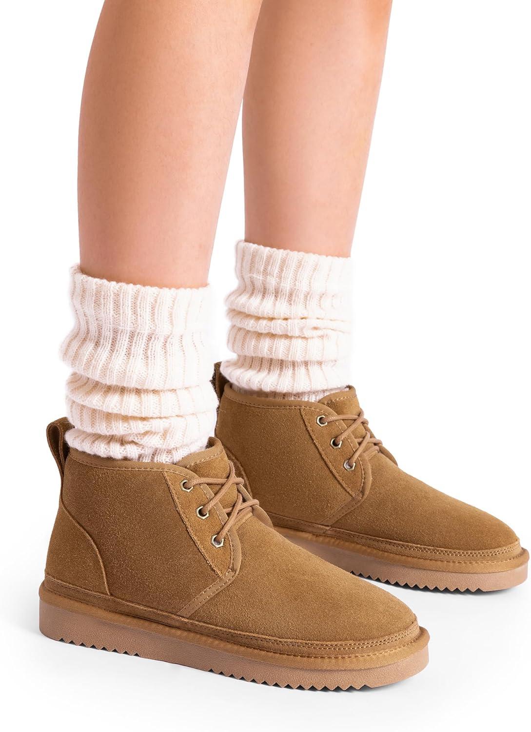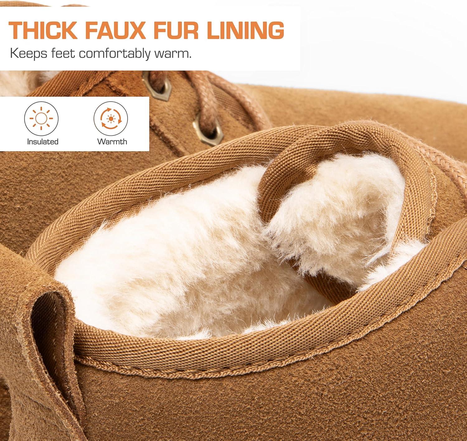 DREAM PAIRS Women’s Ankle Winter Boots Genuine Suede Leather Faux Fur Lace Up Snow Warm Comfort Cozy Short Booties FuzzyGo Women’s Cozy(Chestnut)